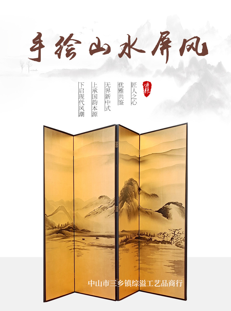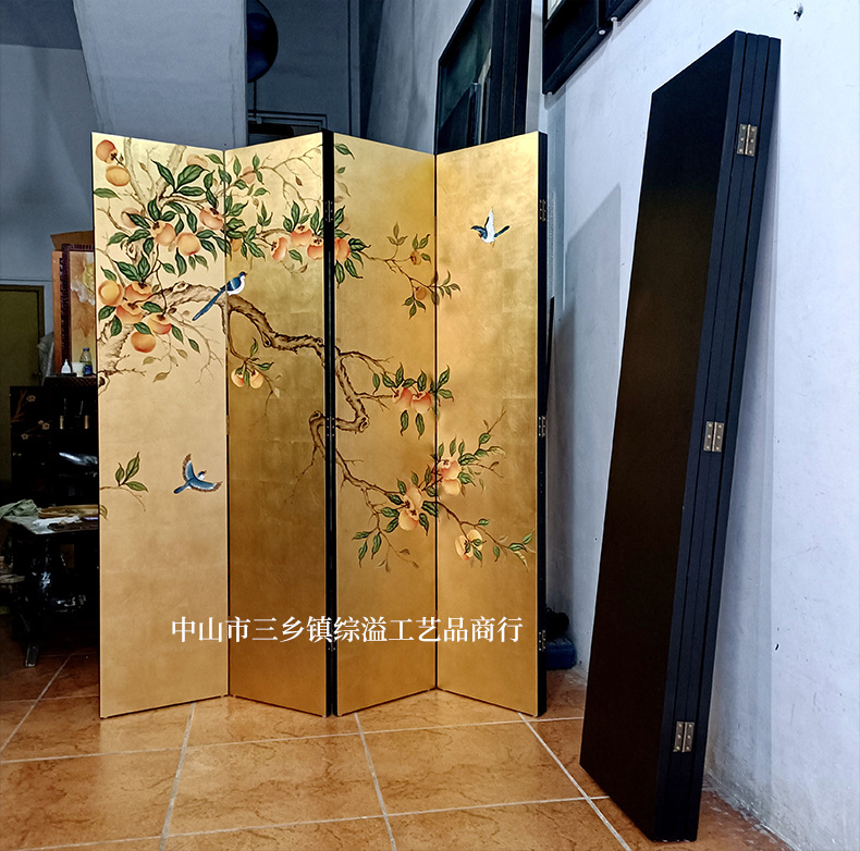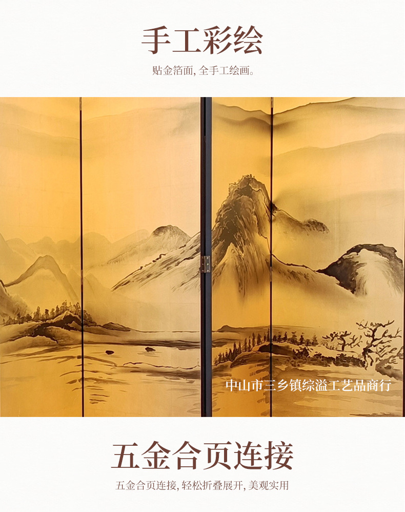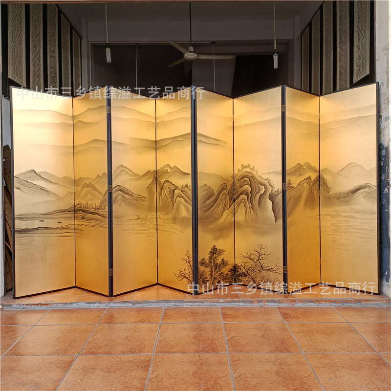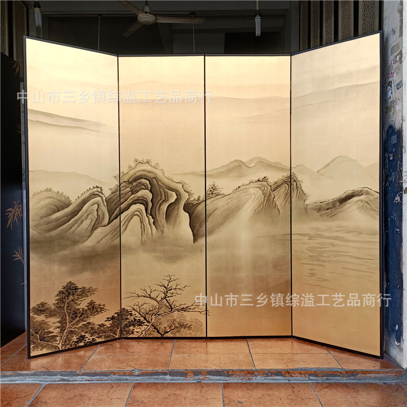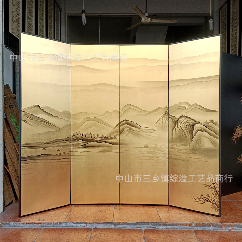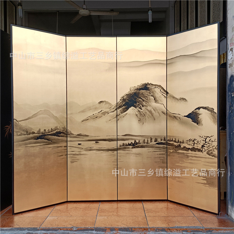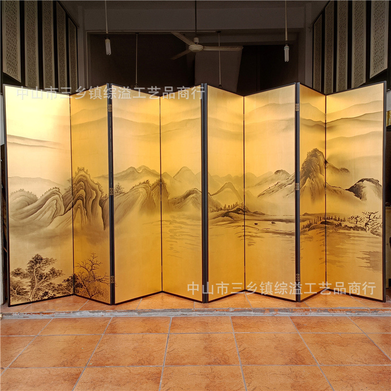 손으로 그린 Jiangshan Duo Jiao 중국 빛 럭셔리 골드 호일 스크린 호텔 로비 회의실 배경 벽 장식 대형 접이식 화면스토어 가기
