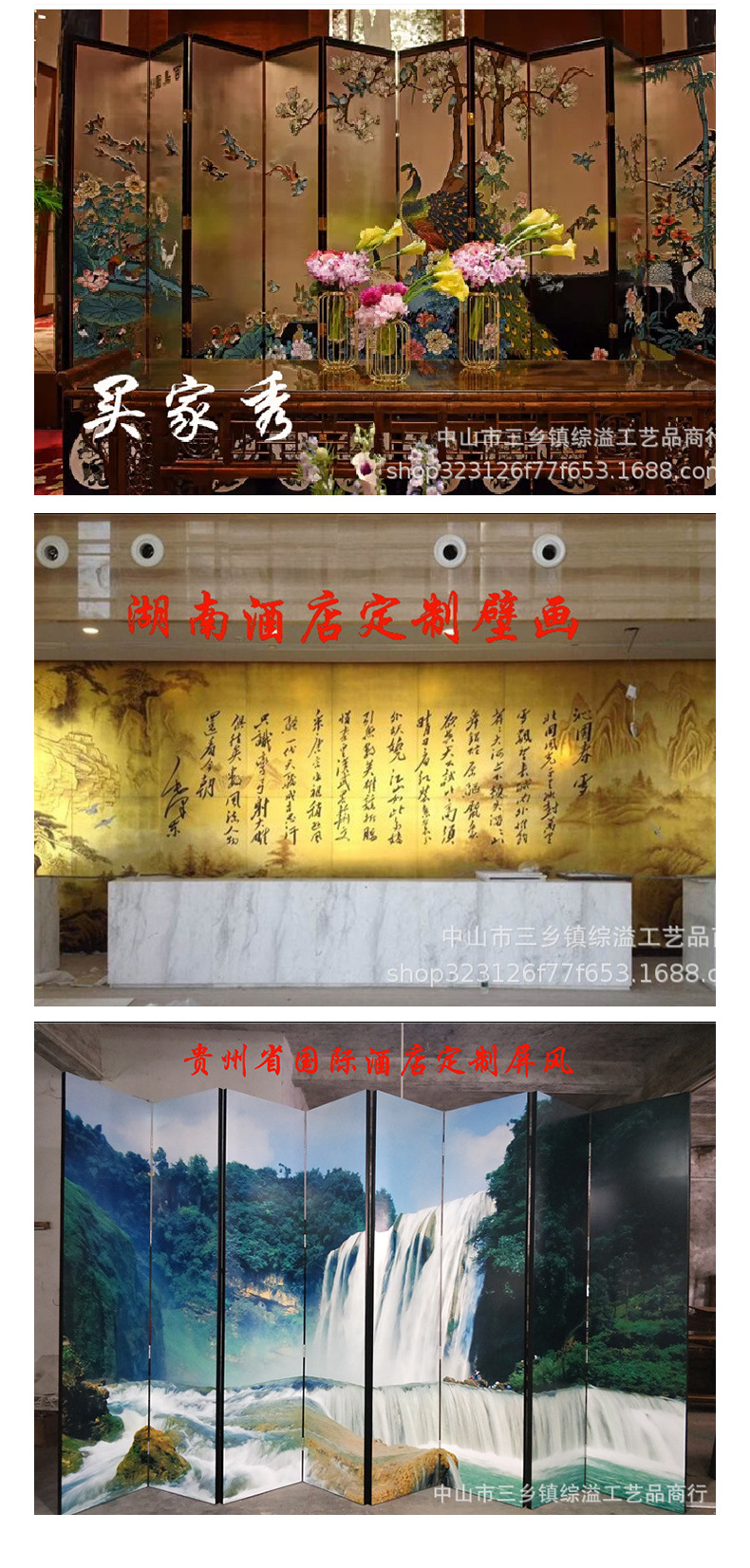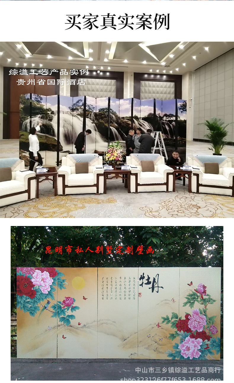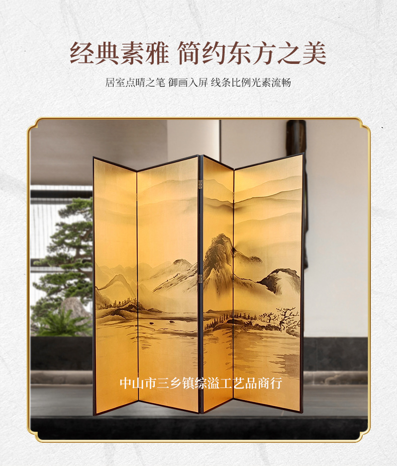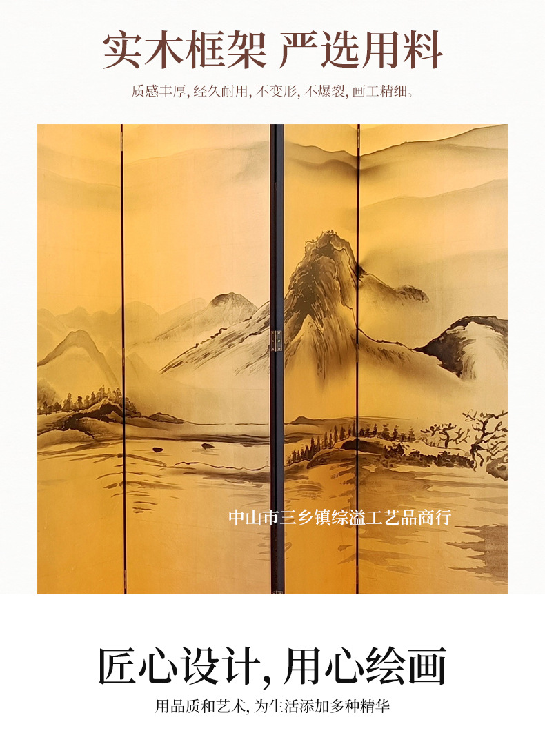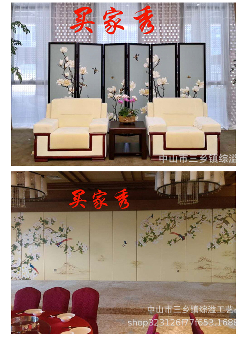 손으로 그린 Jiangshan Duo Jiao 중국 빛 럭셔리 골드 호일 스크린 호텔 로비 회의실 배경 벽 장식 대형 접이식 화면스토어 가기