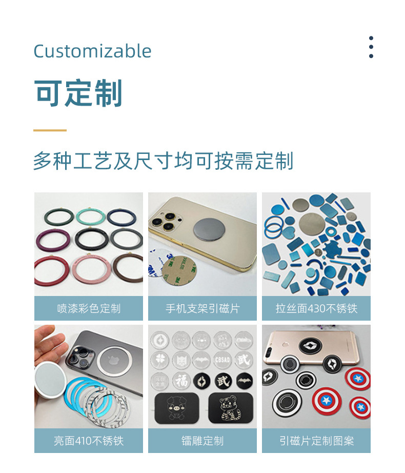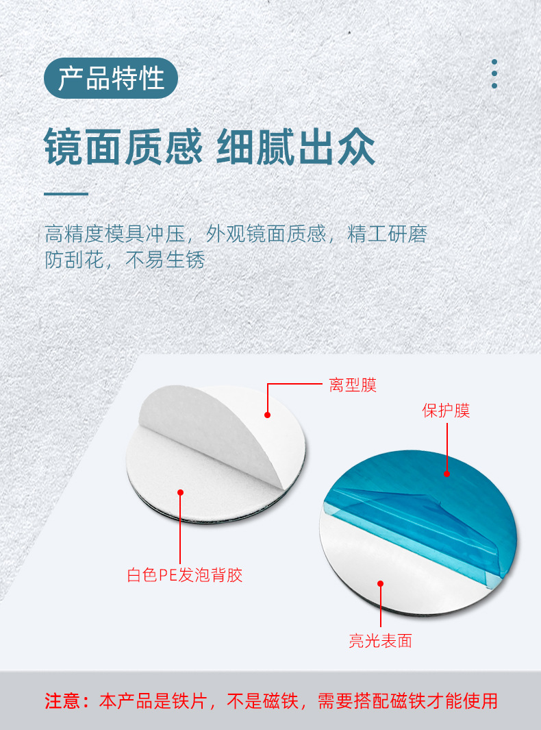 本产品是铁片并非磁铁,410不锈铁材质,本身没有磁性, 需要搭配磁铁使用。