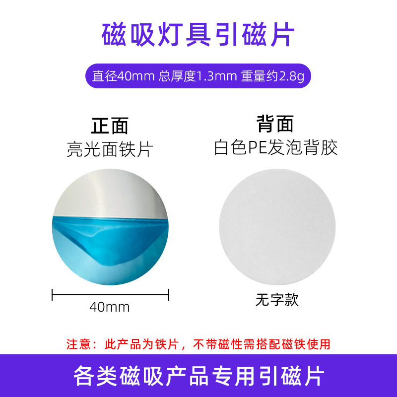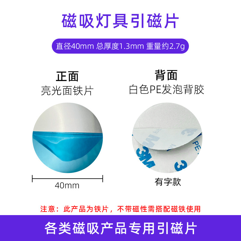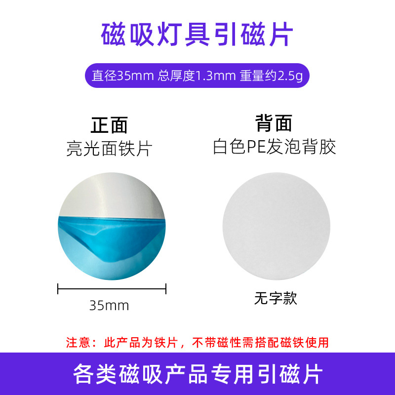 我司是源头工厂,多台贴片机器自动化背胶设备,平均日产能高达10万个以上,高效发货,我司专注各类磁吸智能家居灯具等引磁片,多种市场热门模具供您挑选(无需开模降低成本),背胶材质、厚度、工艺及引磁片厚度、颜色均可按需定制,定制可咨询客服为您提供更完善的引磁片定制及背胶方案,常规热门尺寸常年现货,能拍的都有少量现货,如需批量定制可联系客服!
