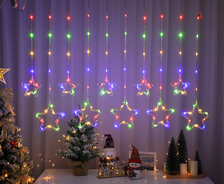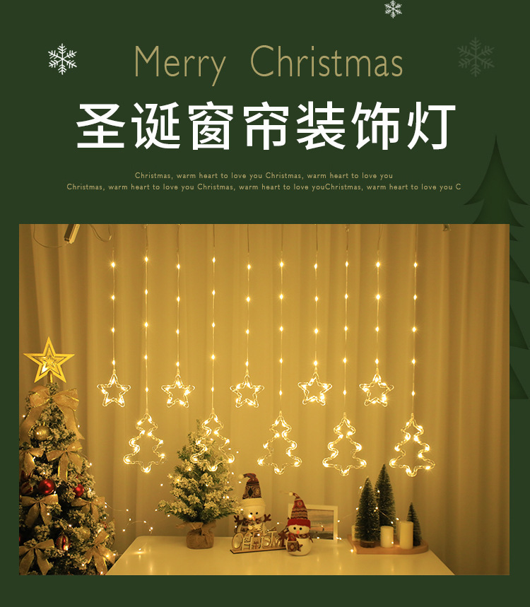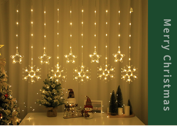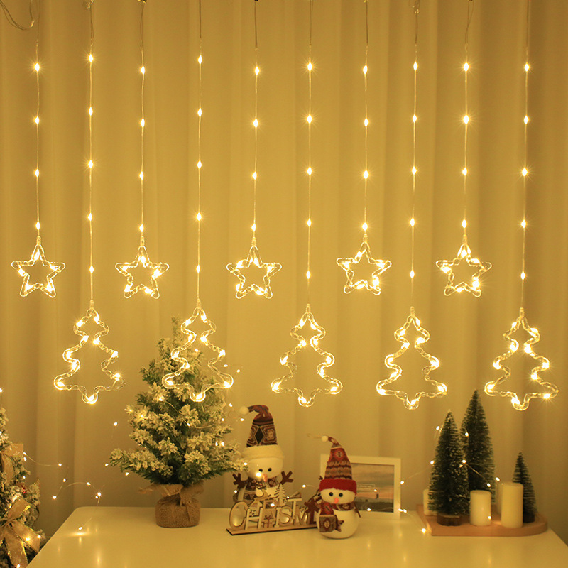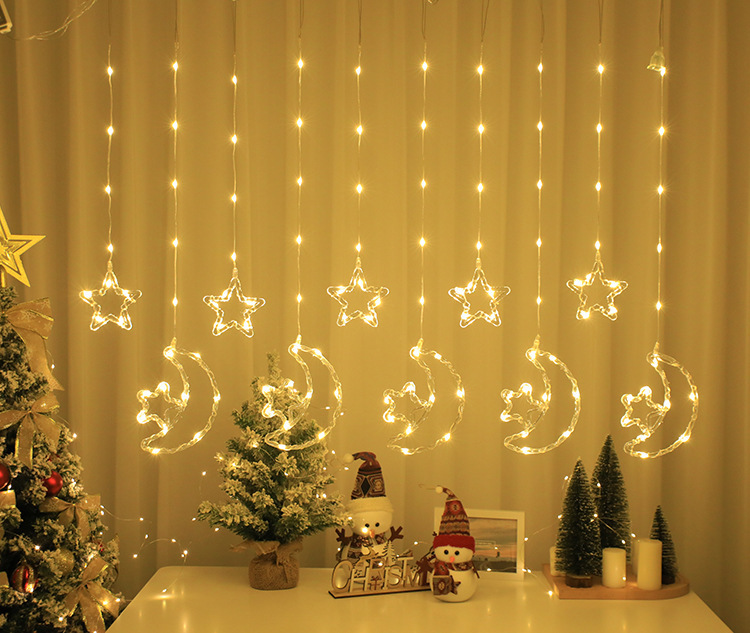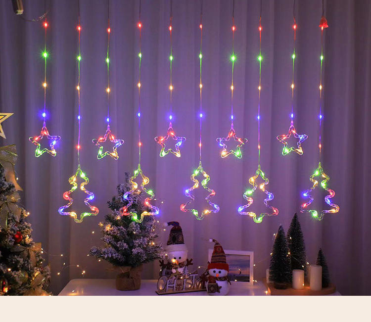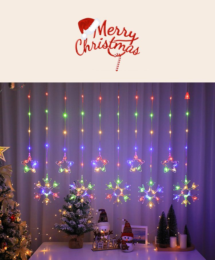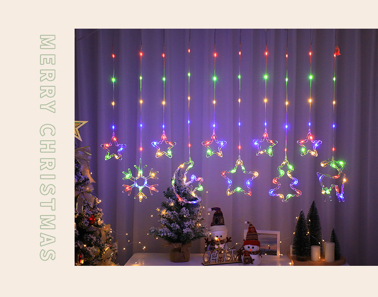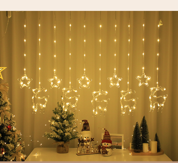 크리스마스 LED 커튼 조명 별 달 엘크 가죽 종 라인 조명 창문 침실 휴일 크리스마스 트리 장식 조명 스트링