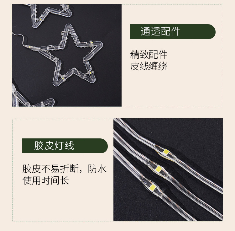 • 따뜻한 흰색 크고 작은 별은 연결되어 직렬로 연결할 수 있습니다.
