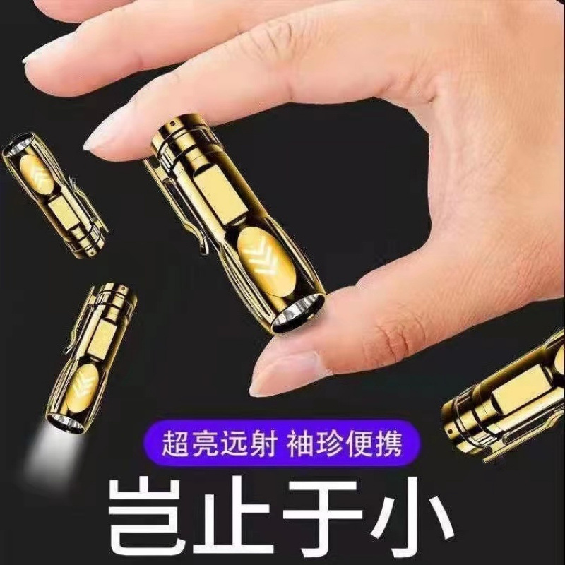 야외 미니 led 손전등 충전식 슈퍼 밝은 휴대용 가정용 조명 장거리 강한 빛 3 눈 작은 강철 대포