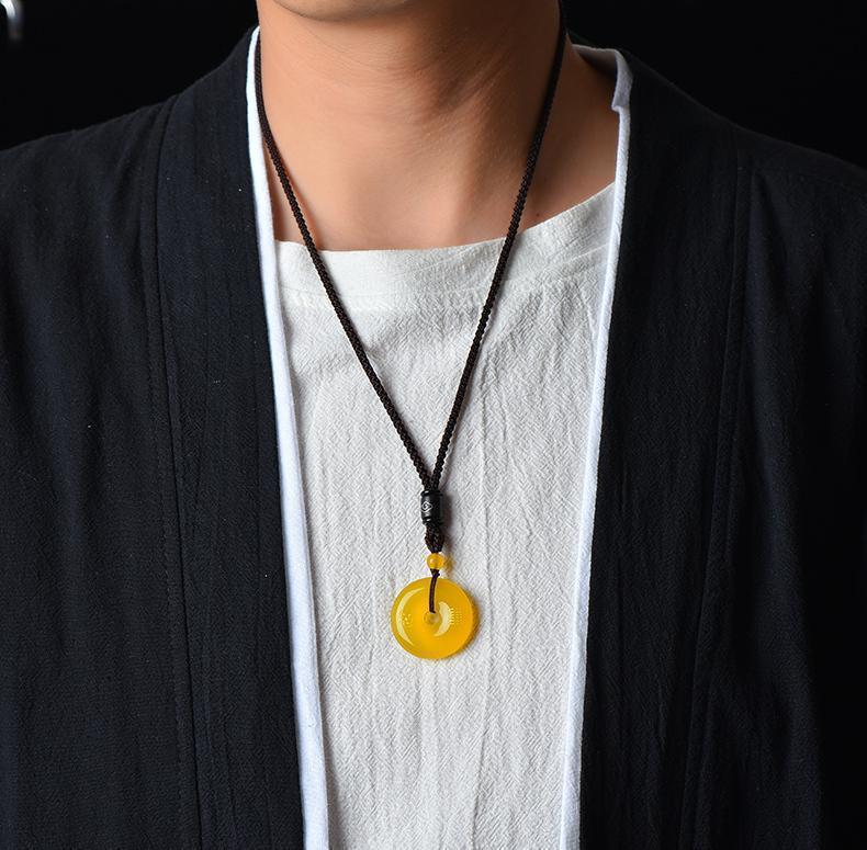 5 가지 요소는 토양과 토양의 부족에 속합니다. 천연 노란색 마노 안전 버클 펜던트 커린 키 체인 펜던트 자동차 매달려 도매