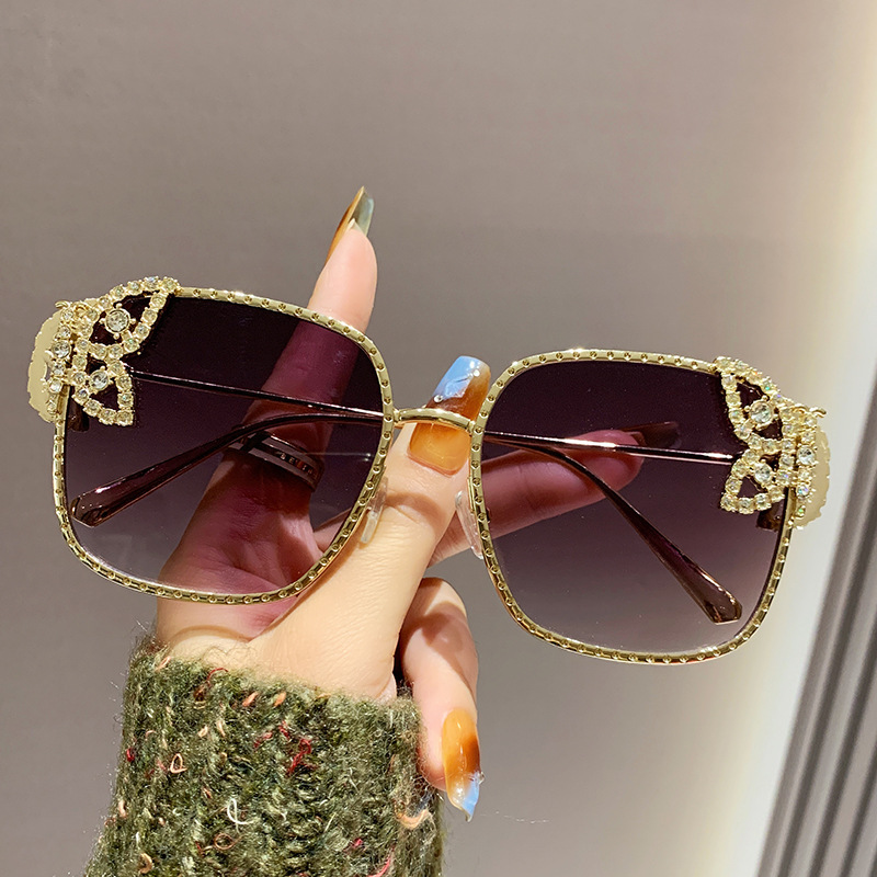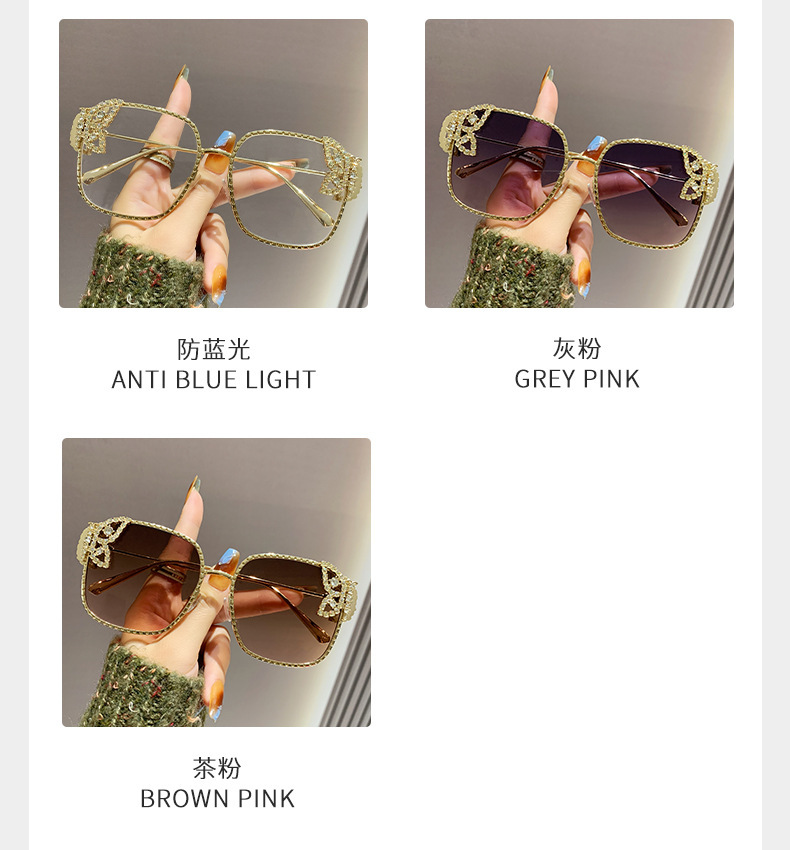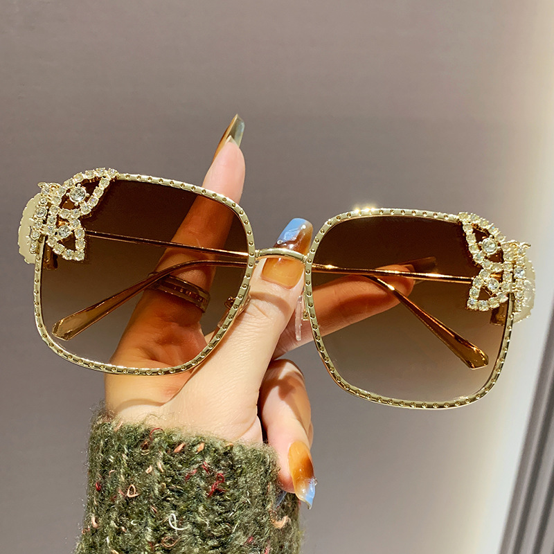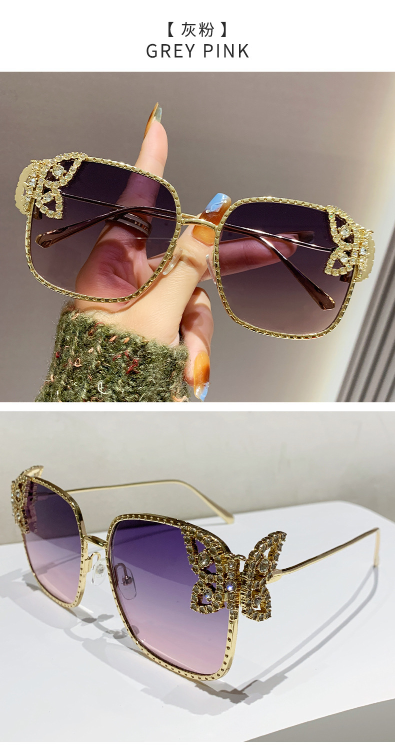 국경 상자 다이아몬드가 박힌 선글라스 나비 금속 프레임 고급 선글라스 여성 하이 엔드 패션 안경 플랫 안경