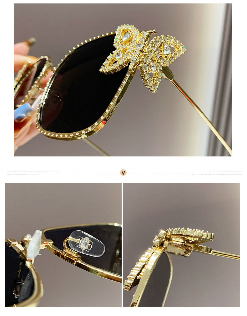 국경 상자 다이아몬드가 박힌 선글라스 나비 금속 프레임 고급 선글라스 여성 하이 엔드 패션 안경 플랫 안경스토어 가기
