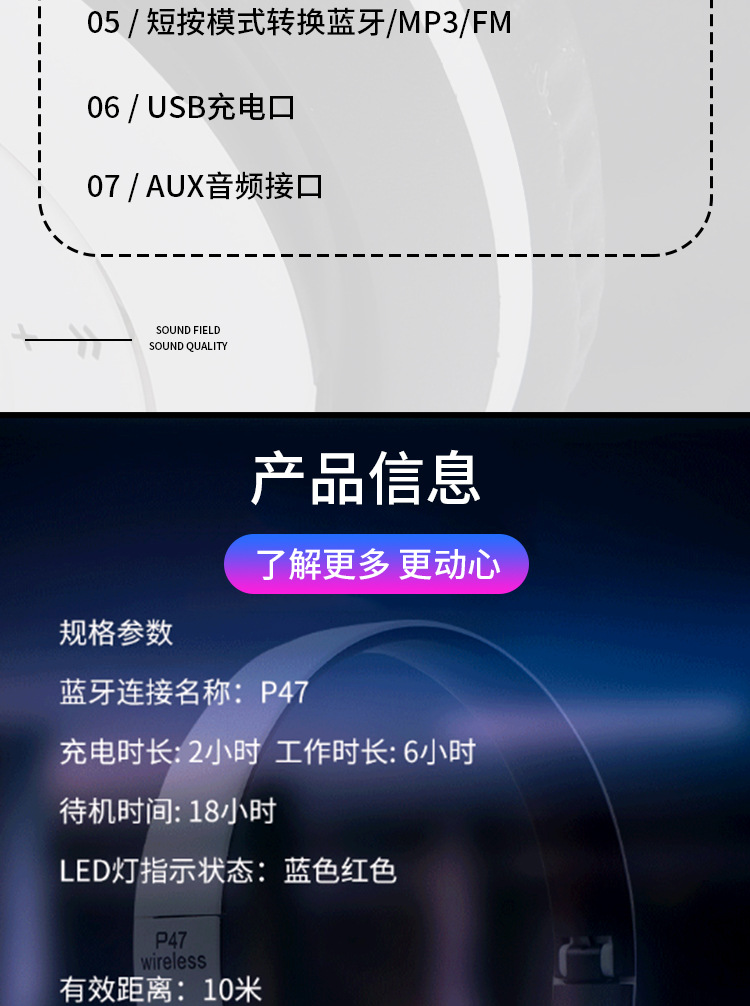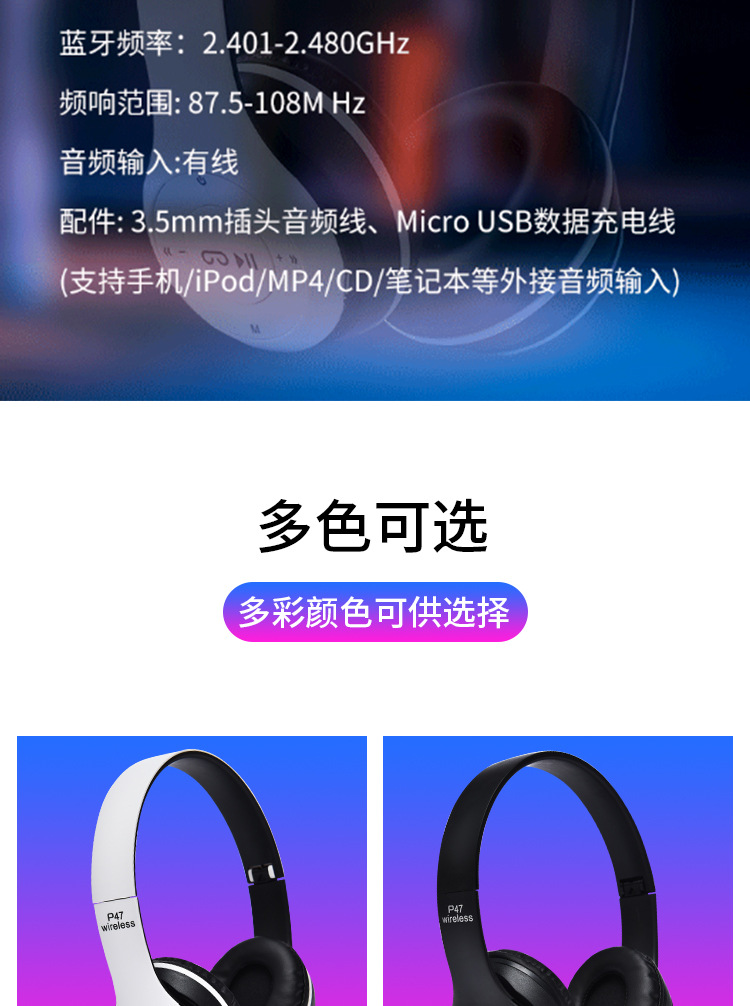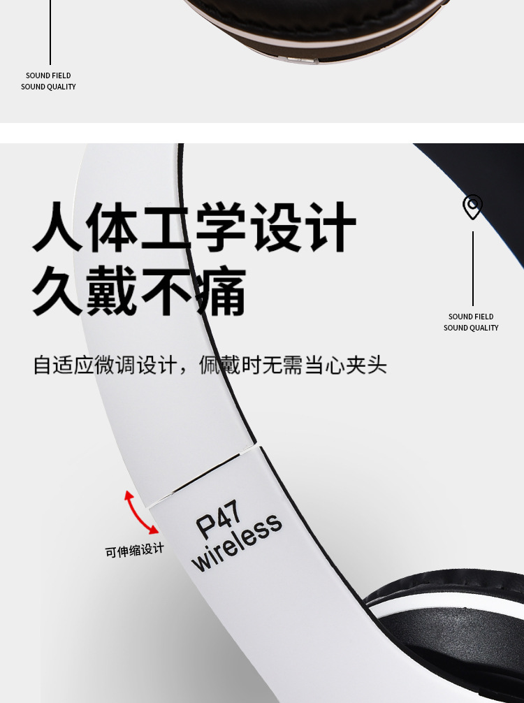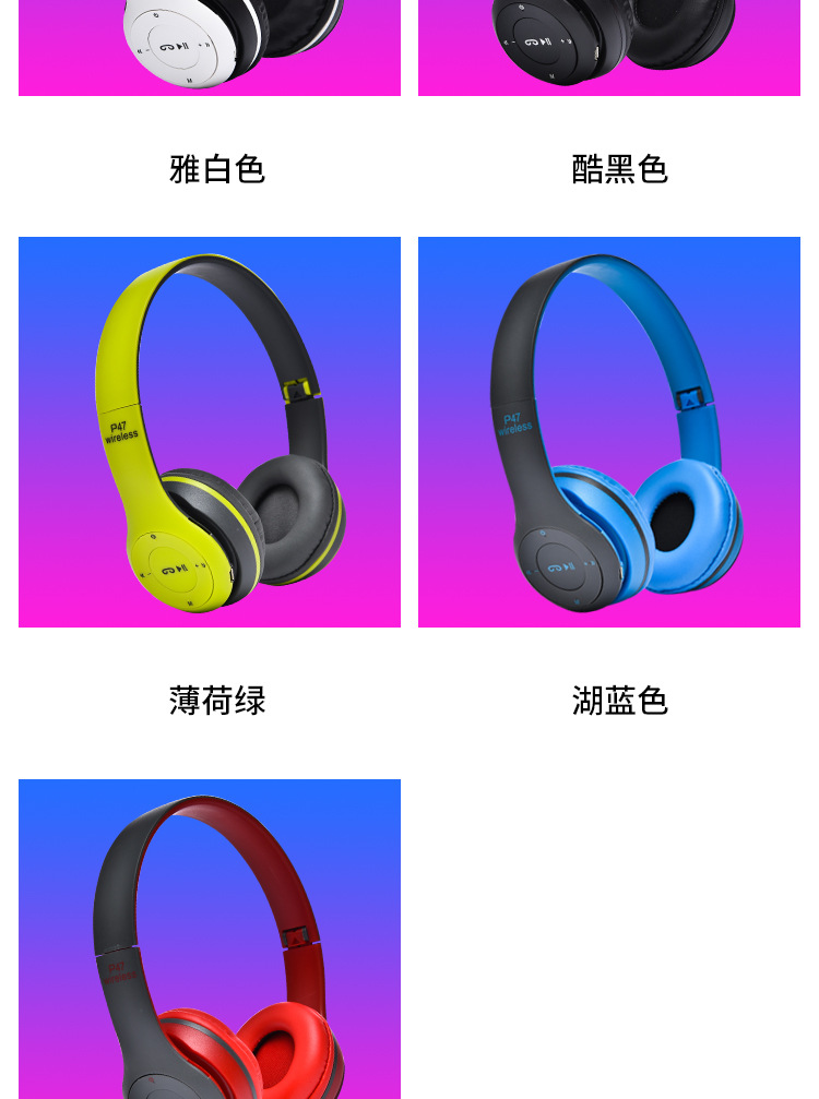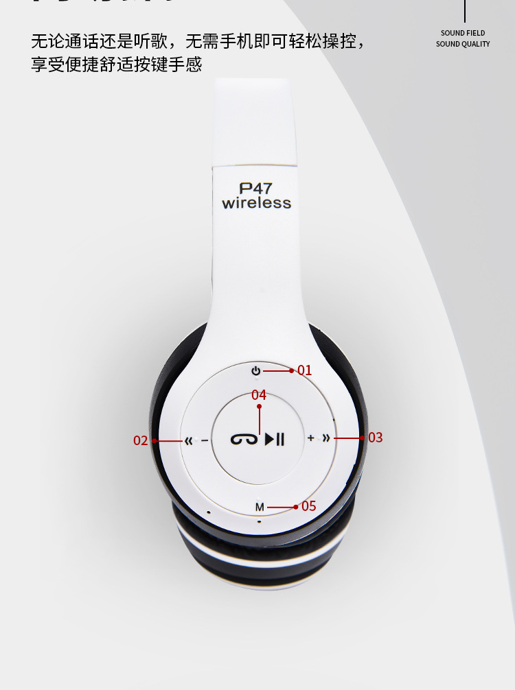 공장 도매 헤드셋 P47 블루투스 헤드셋 헤드셋 접이식 저음 해외 무역 선물 무선 스포츠스토어 가기