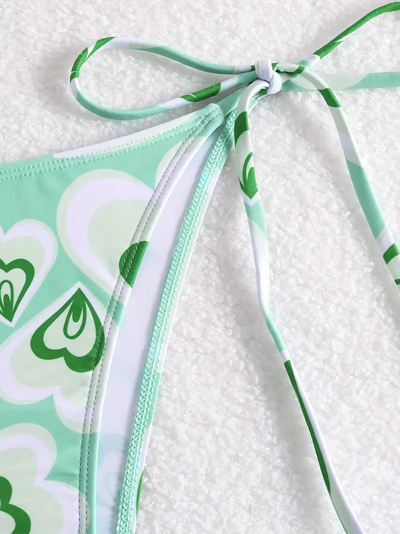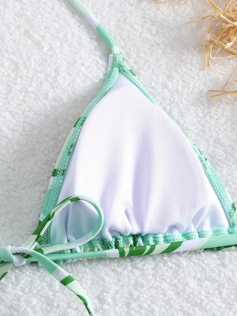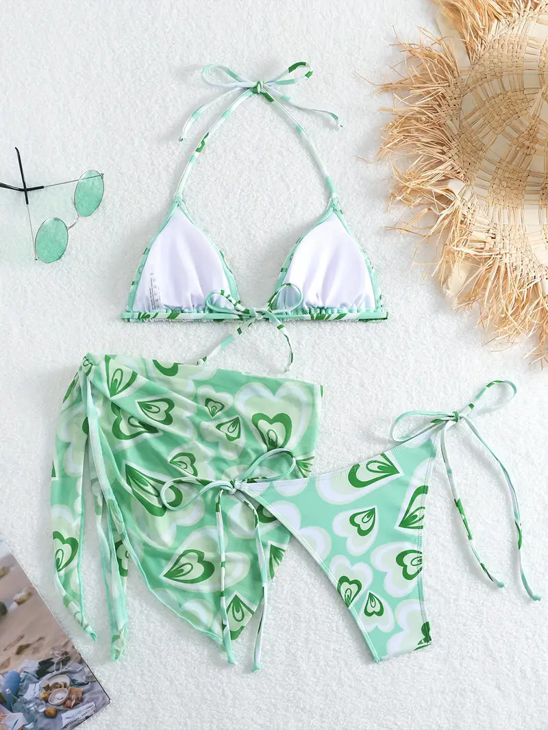 유럽과 미국의 국경 간 플로랄 타이트 수영복 3 피스 스플릿 비키니 하이 엔드 온천 백리스 수영복 재고