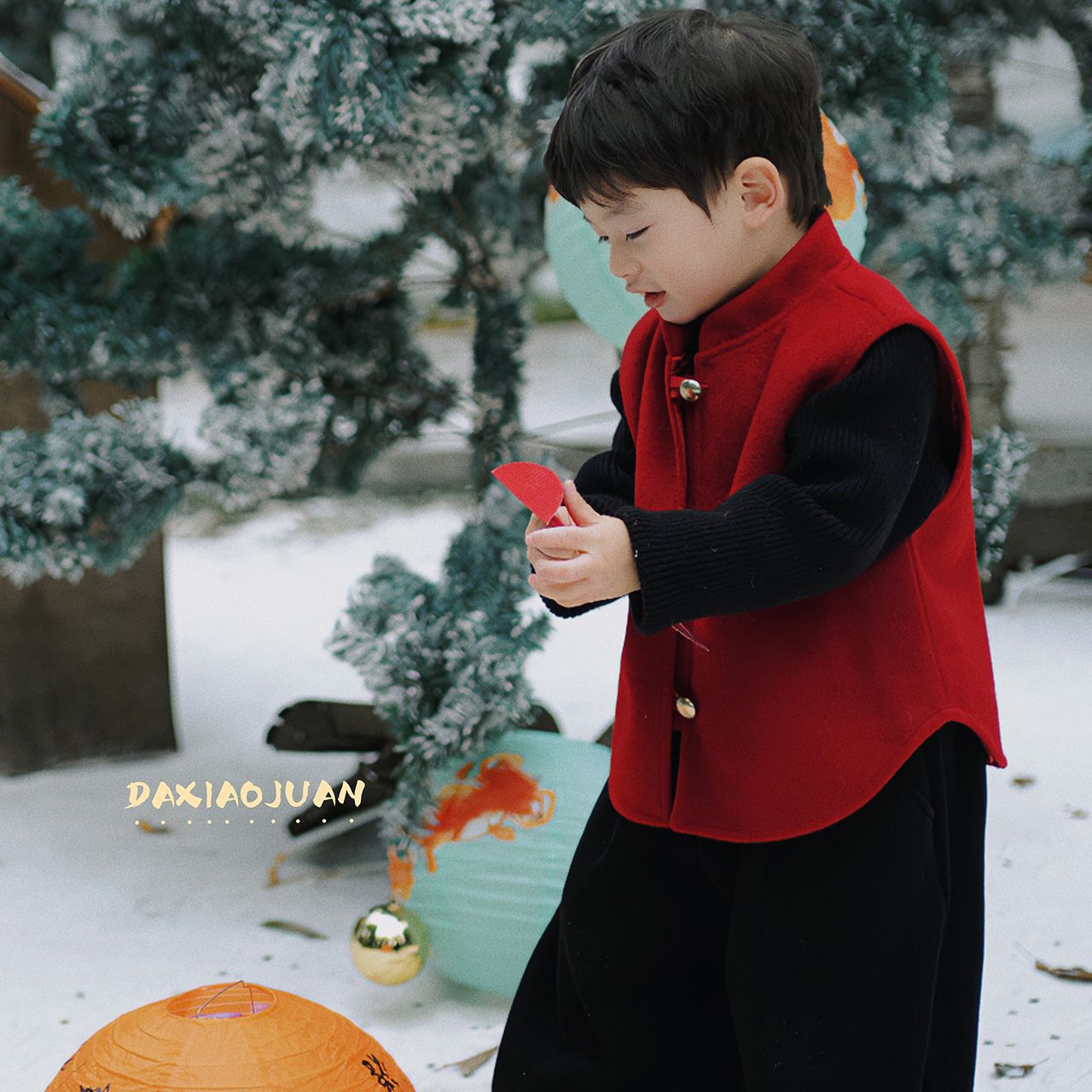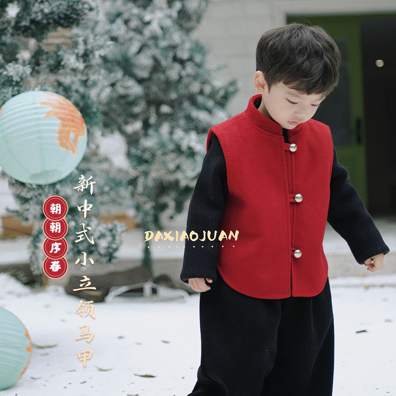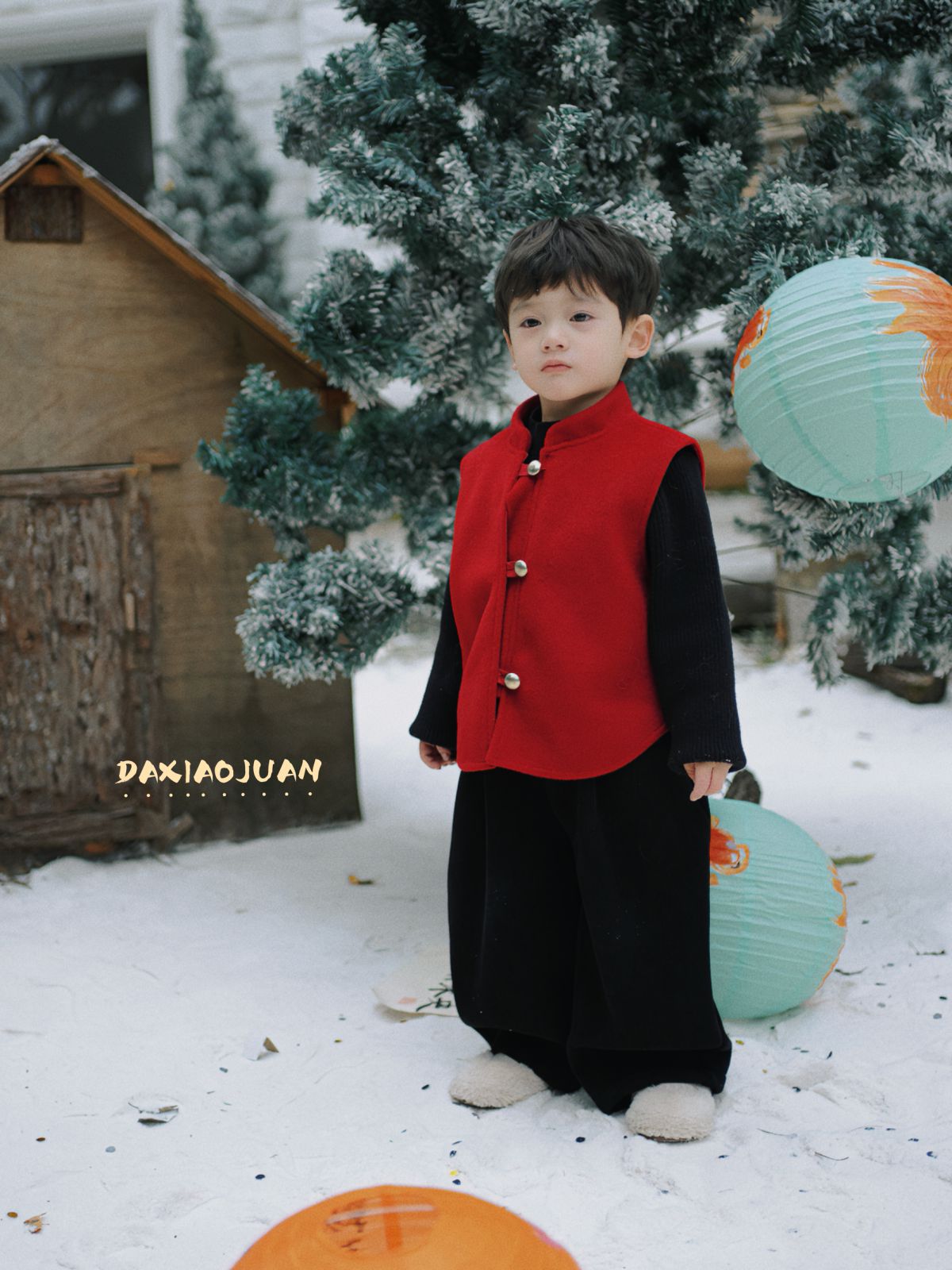 대형 및 소형 롤【차오차오슈춘】겨울용 보온 조끼 어린이용 신중국풍 작은 스탠드 칼라 빨간색 두꺼운 모델