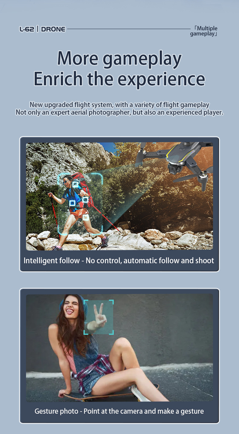 L62 4축 드론 고화질 항공 사진 항공기 GPS 자동 반환 브러시리스 원격 제어 항공기의 국경 간 특별 공급스토어 가기