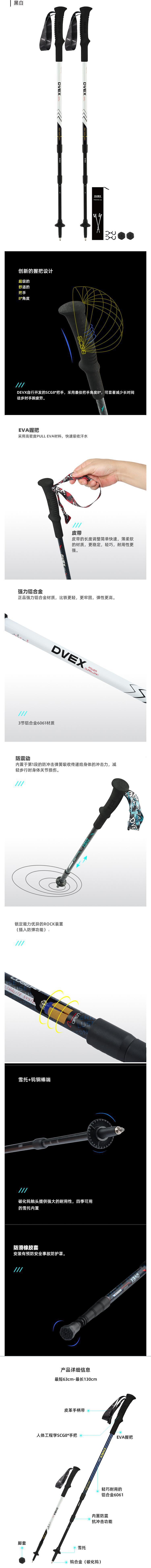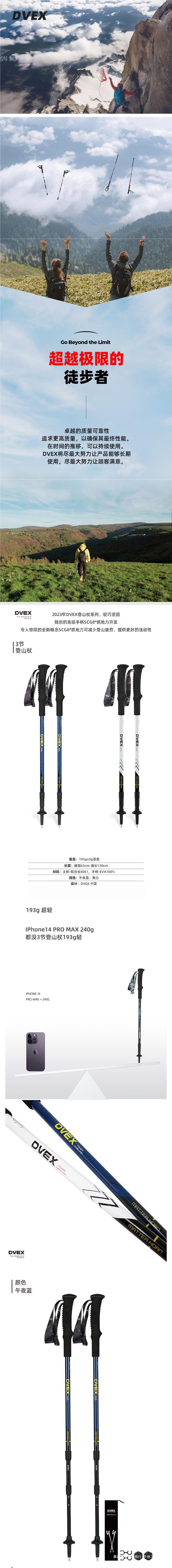 Dvex 울트라 라이트 3 섹션 등산 스틱 지팡이 남성과 여성을위한 야외 다기능 텔레스코픽 하이킹 등산 등산 비 슬립 눈 지원 새로운스토어 가기