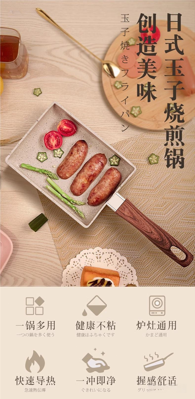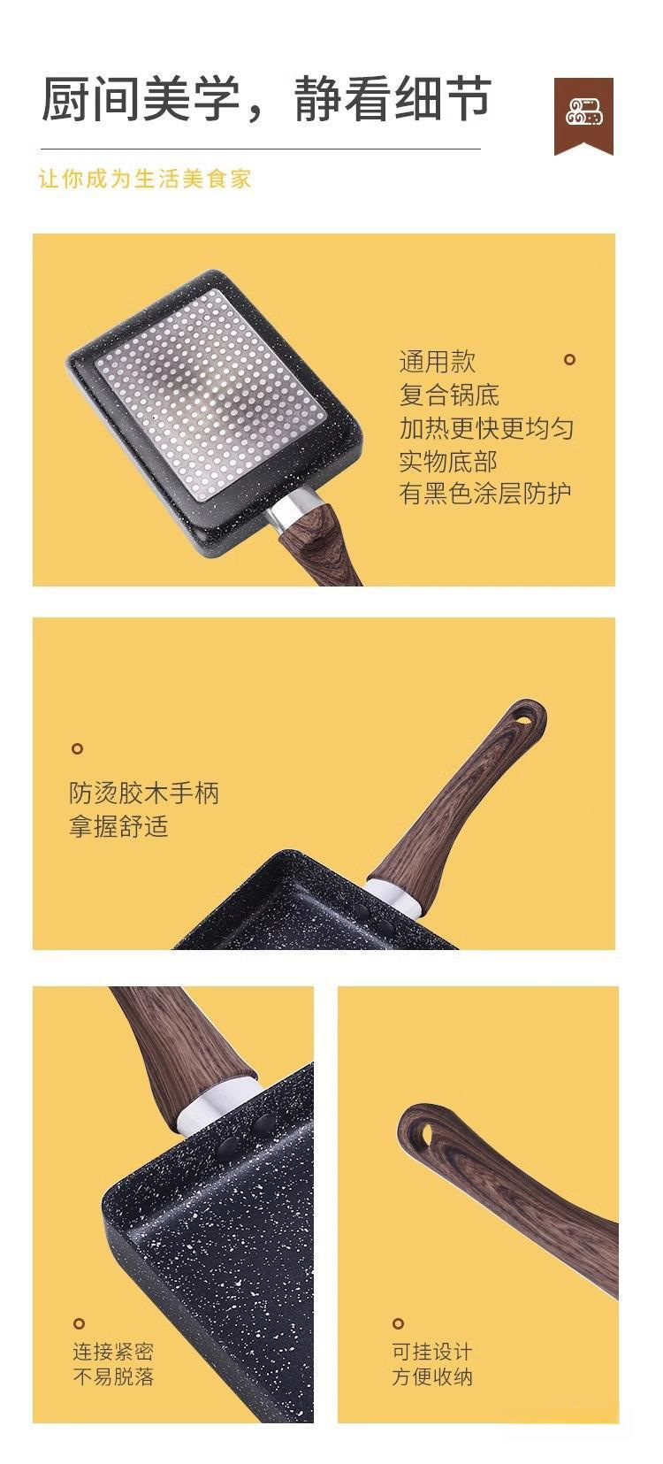 Yuzi Braised Square Non-Stick Pan 두꺼운 계란 찐 Maifan Stone 조식 팬 프라이팬 계란 가정용 프라이팬 상업적 범용 팬