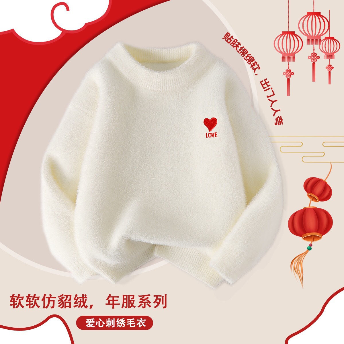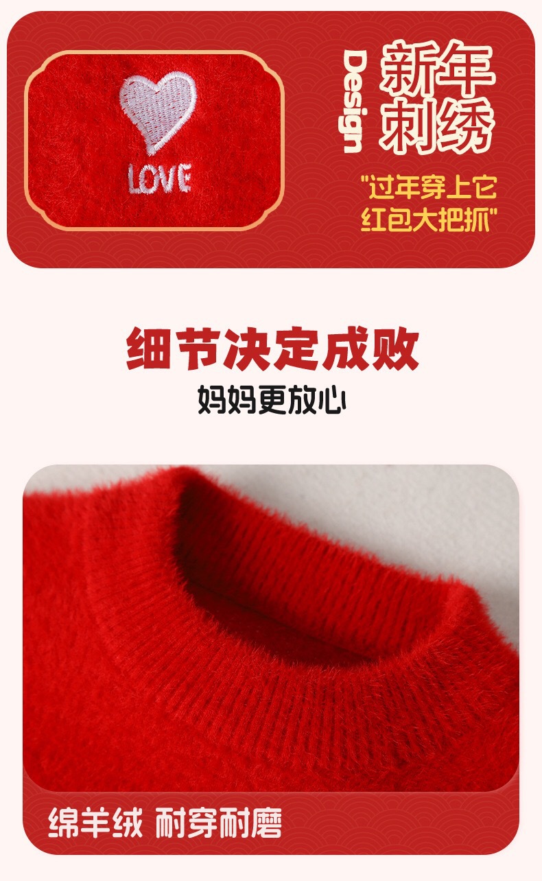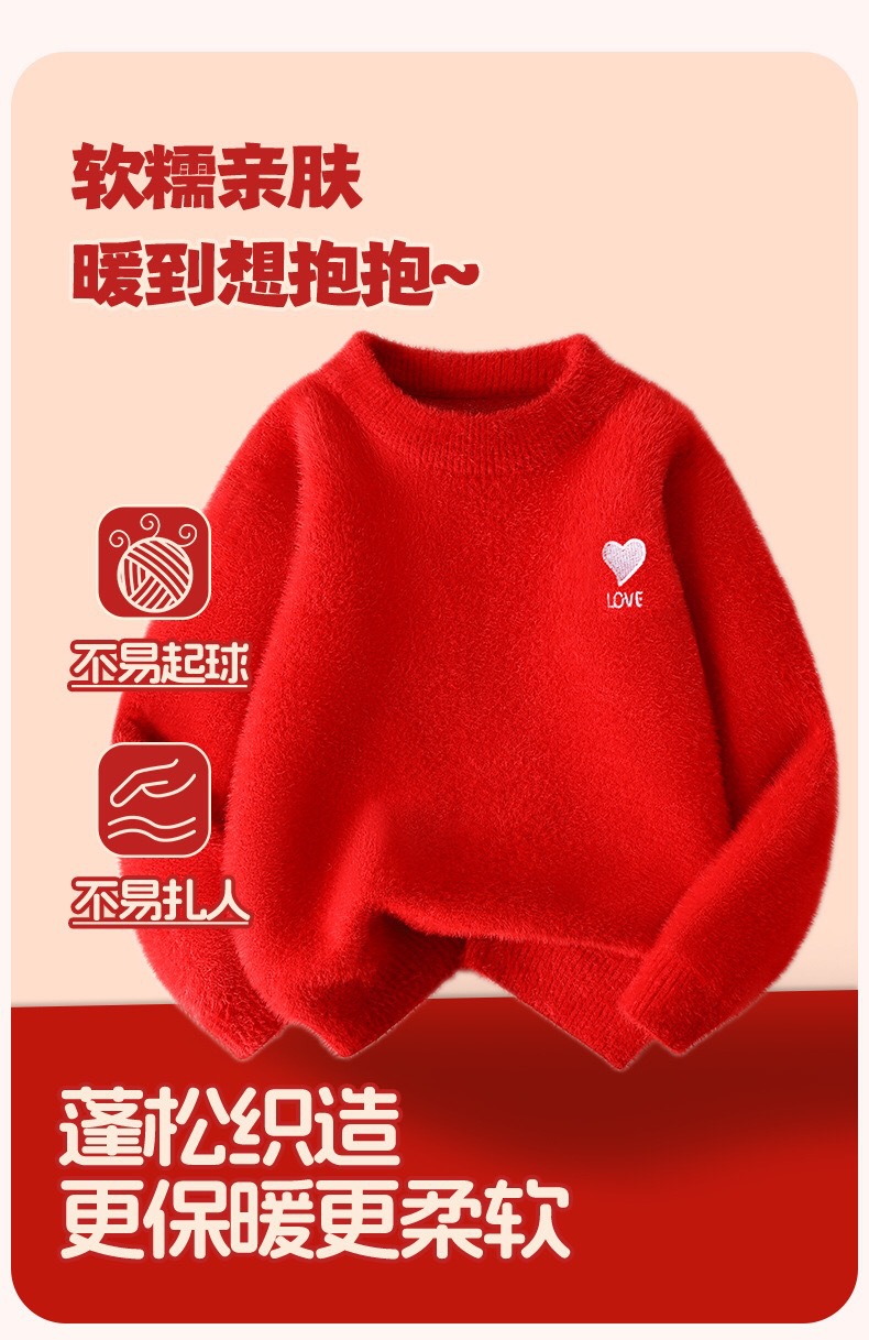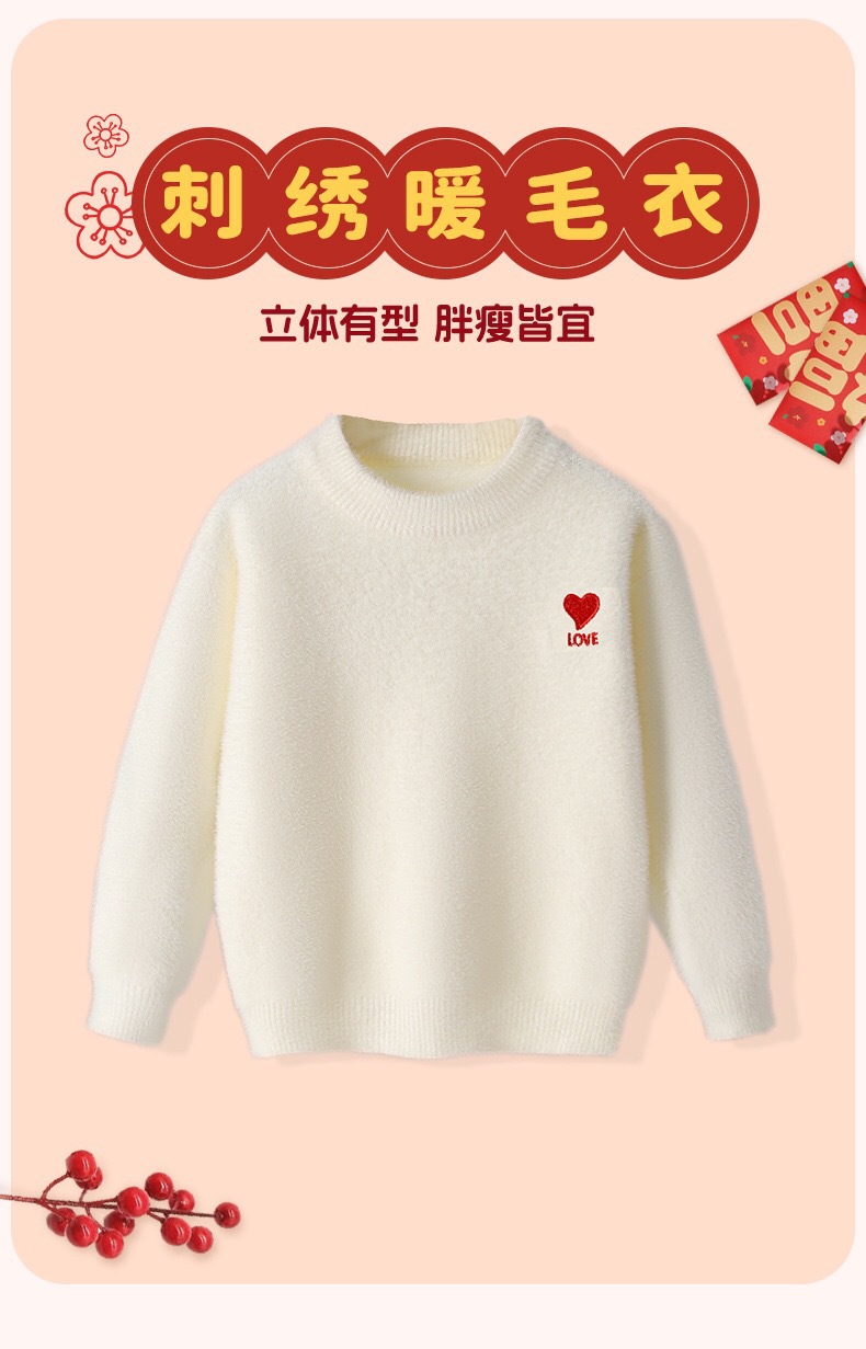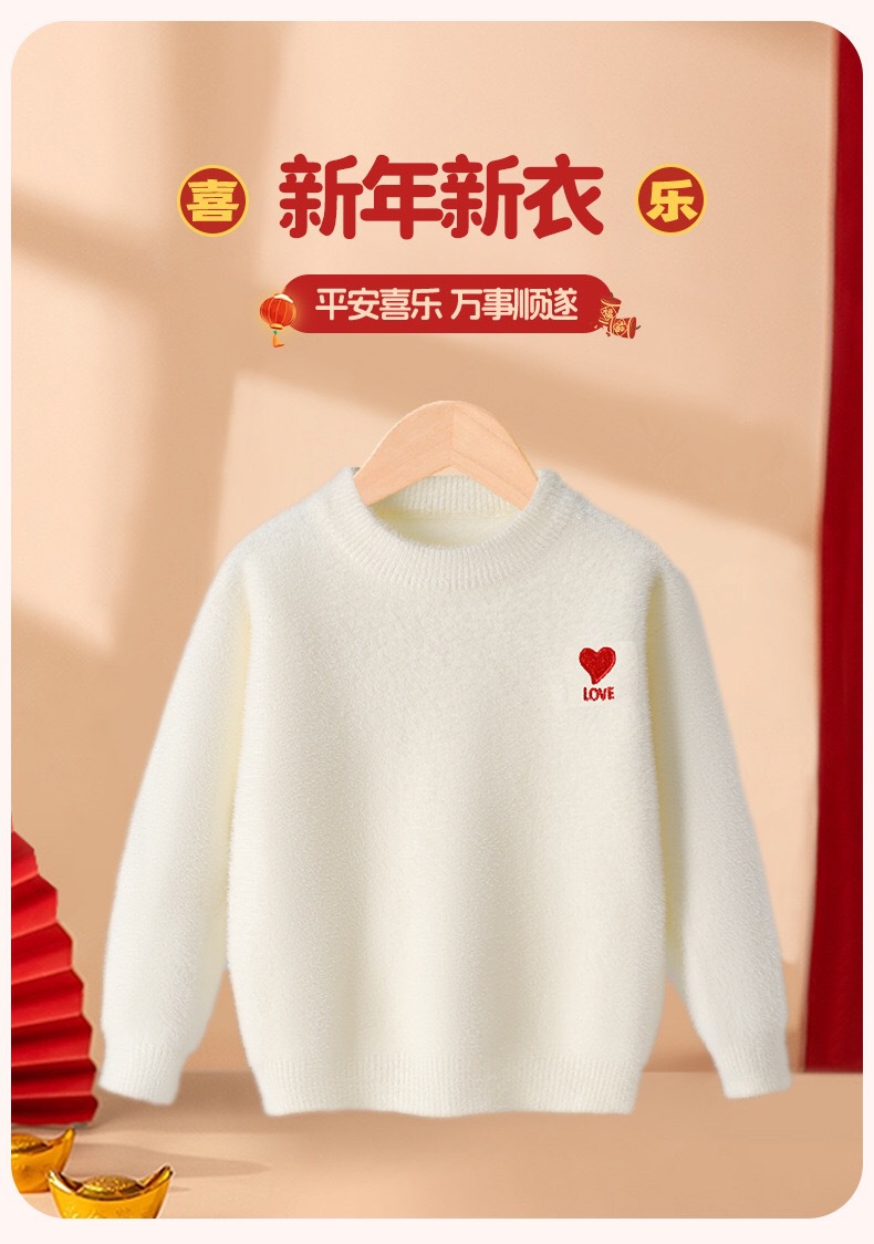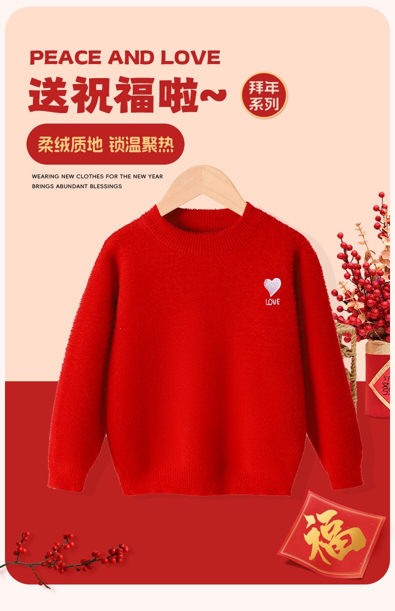 시이 아동용 스웨터 가을 겨울 신상 긴팔 베이스 레이어 심플 중대형 아동용 풀오버 라운드넥 설날 의상/새해맞이 셔츠