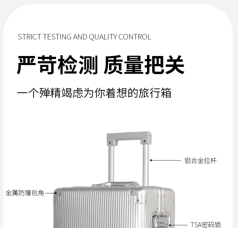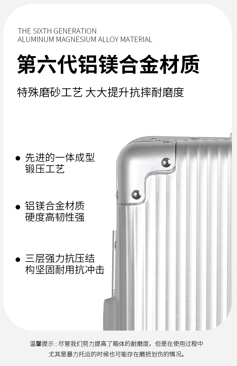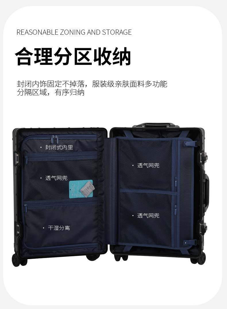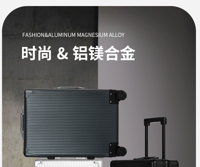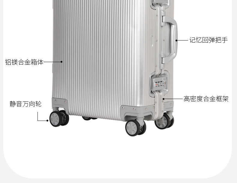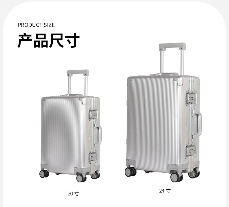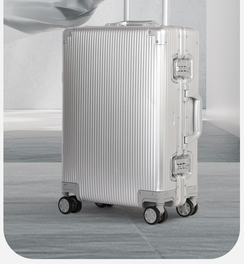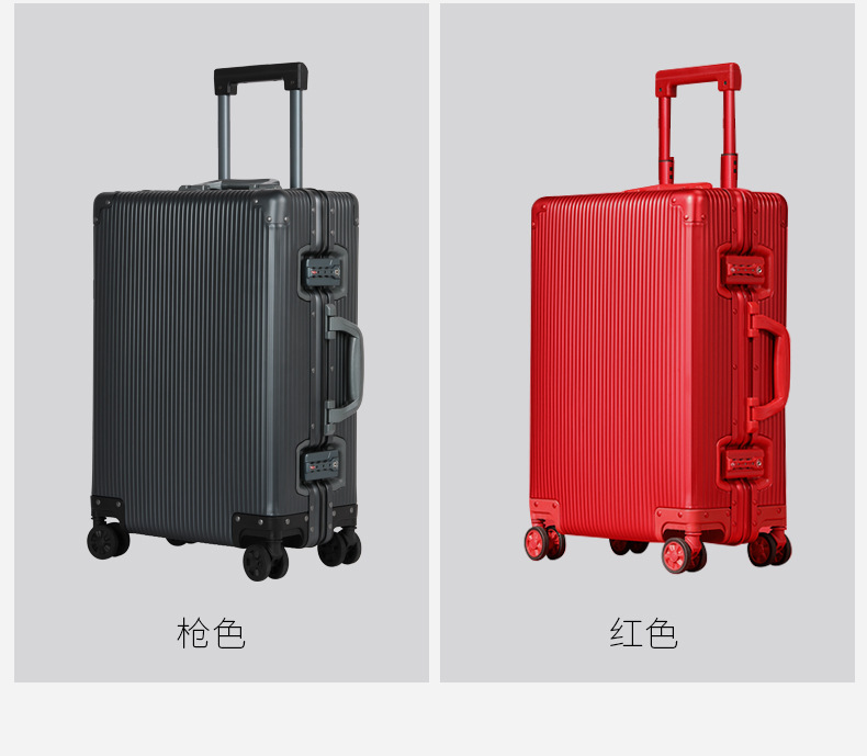 모든 알루미늄 마그네슘 합금 수하물 상자 20 인치 탑승 상자 범용 휠 수하물 케이스 남성과 여성 24 인치 암호 상자 재고 도매