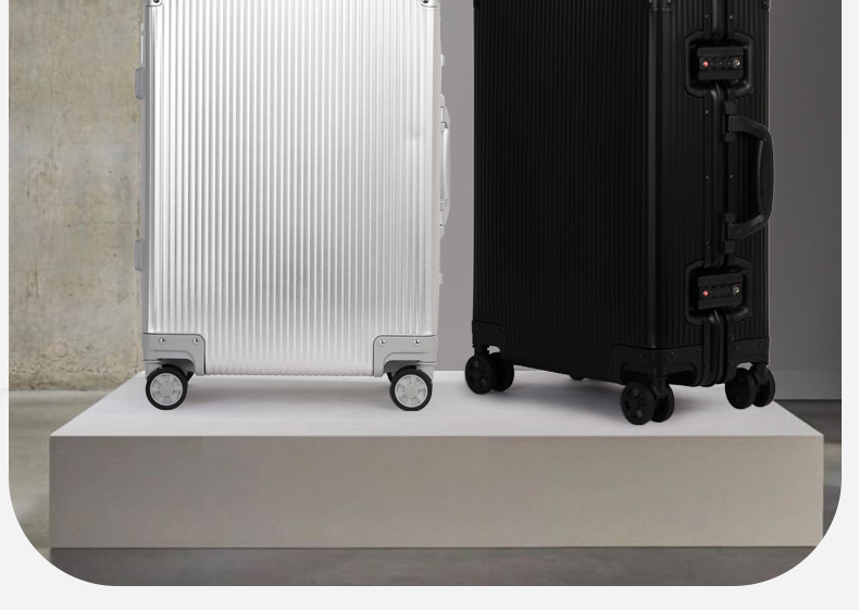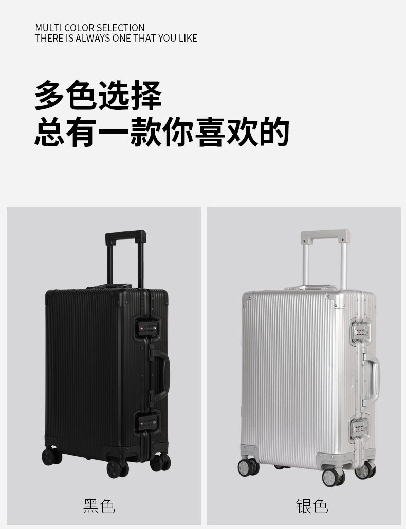 모든 알루미늄 마그네슘 합금 수하물 상자 20 인치 탑승 상자 범용 휠 수하물 케이스 남성과 여성 24 인치 암호 상자 재고 도매스토어 가기