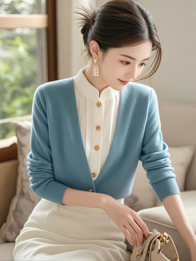 가을과 겨울 새로운 게으른 샤넬 하이 엔드 가짜 투피스 스웨터 여성의 독특한 슈퍼 잘 생긴 우아한 니트 탑스토어 가기