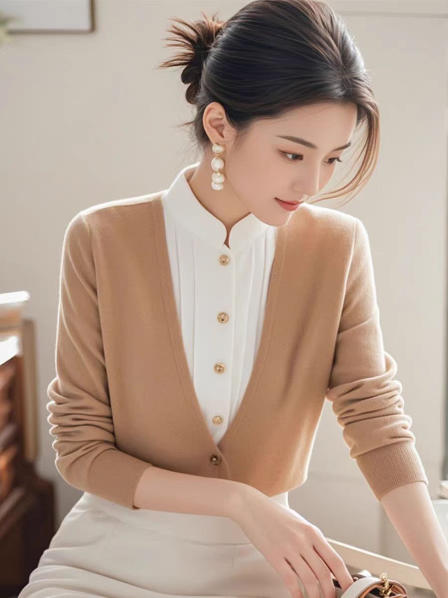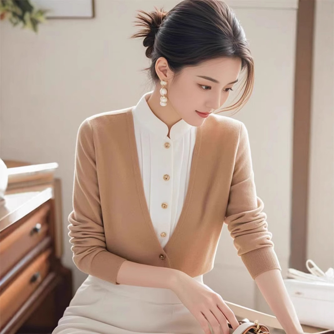 가을과 겨울 새로운 게으른 샤넬 하이 엔드 가짜 투피스 스웨터 여성의 독특한 슈퍼 잘 생긴 우아한 니트 탑