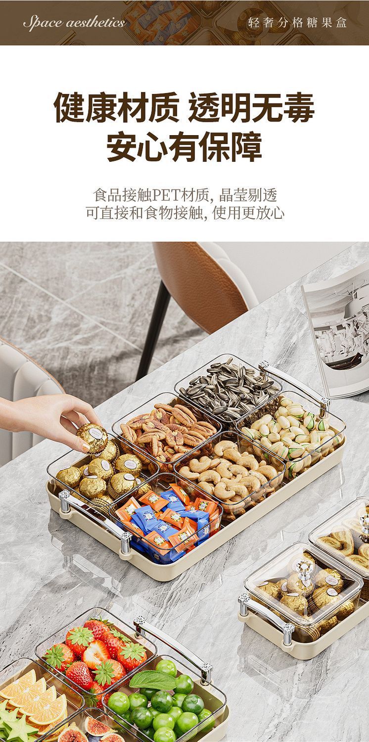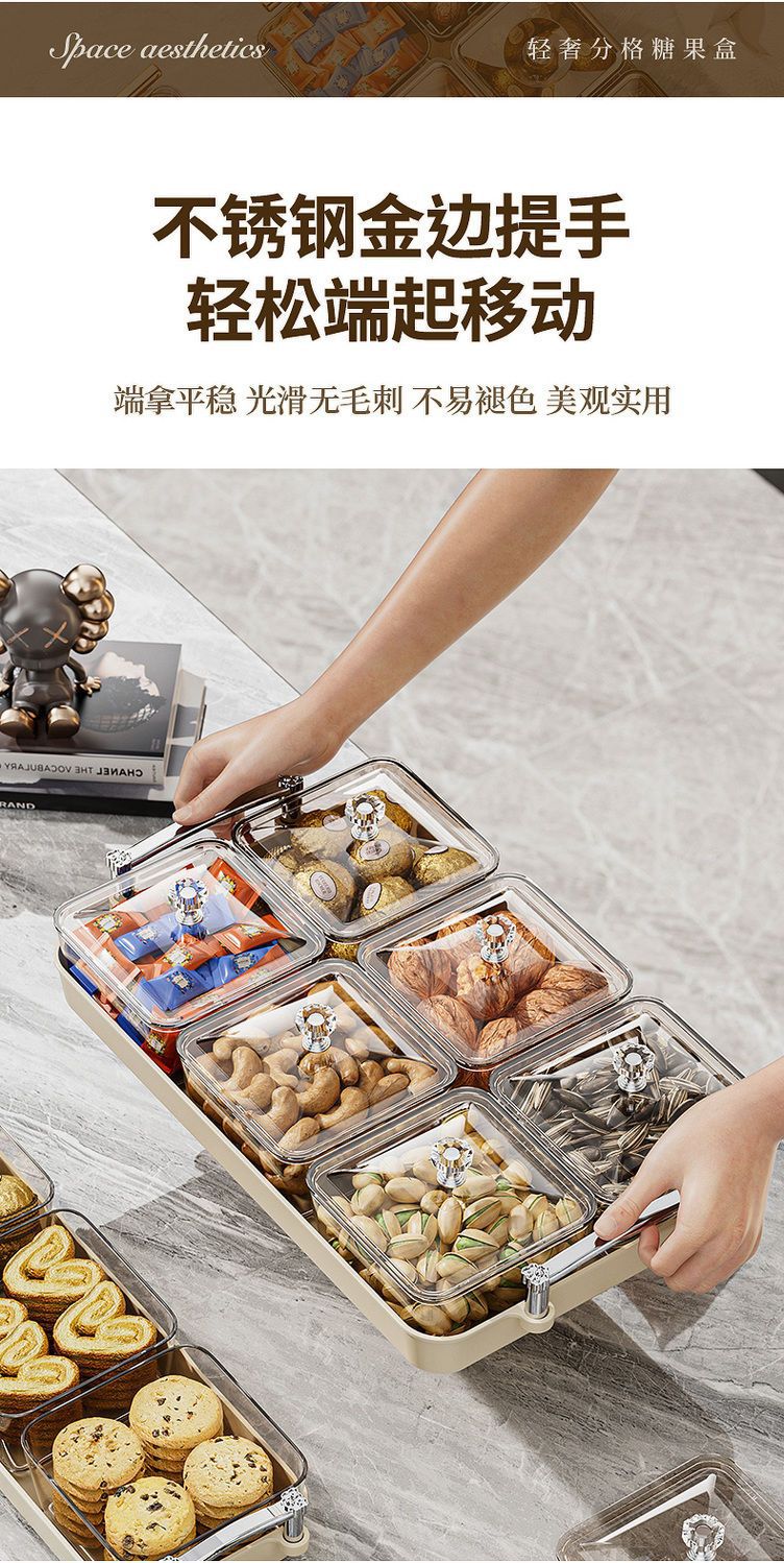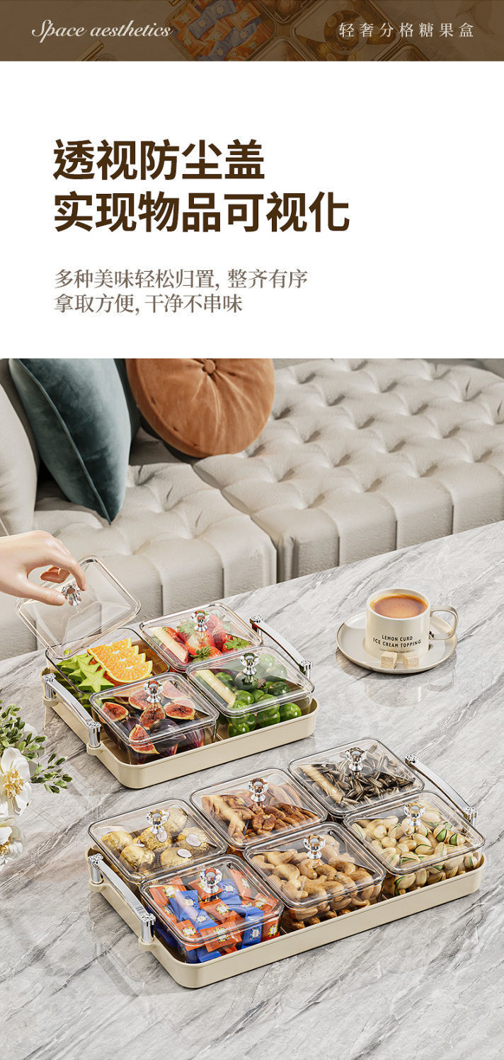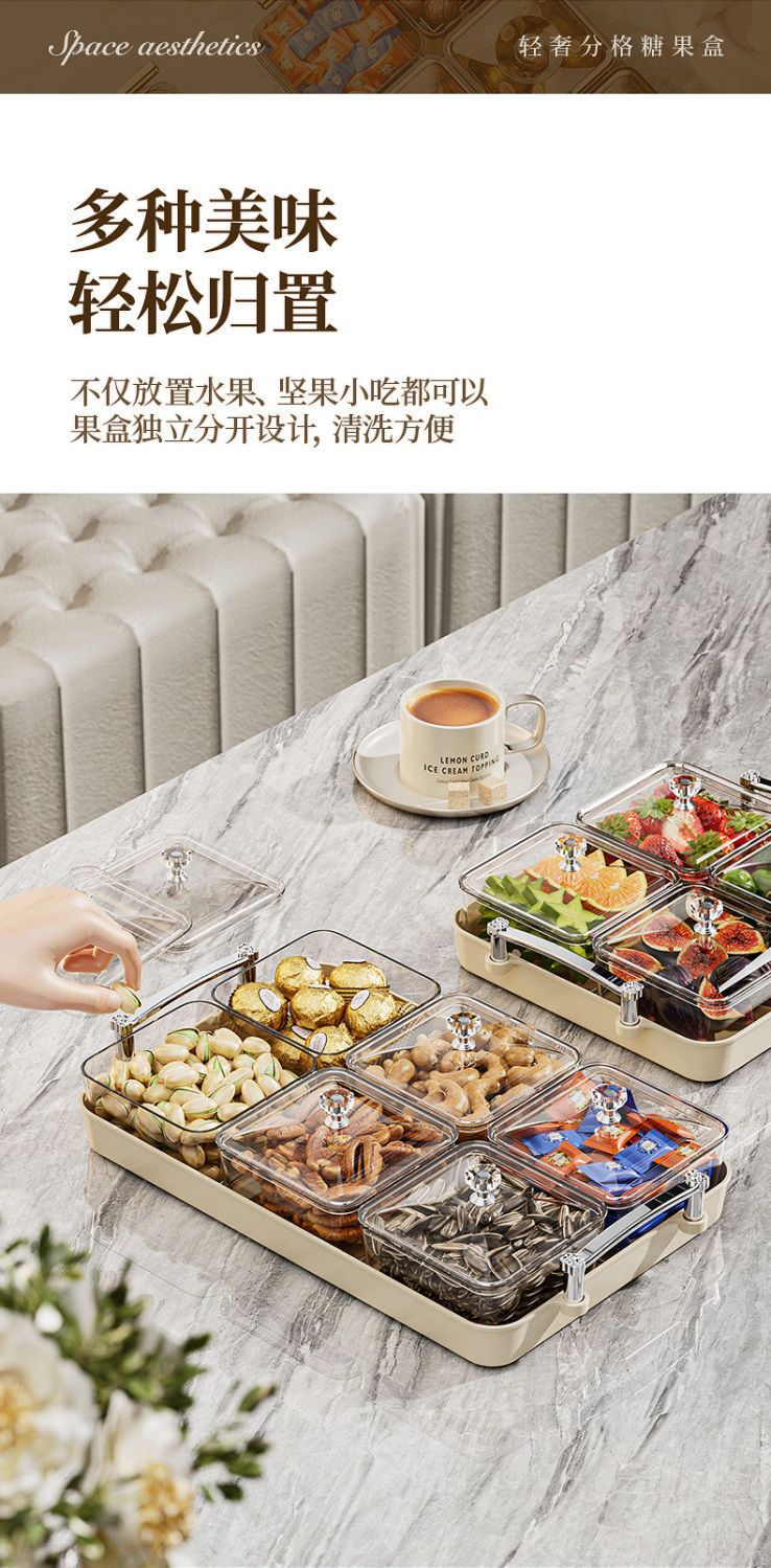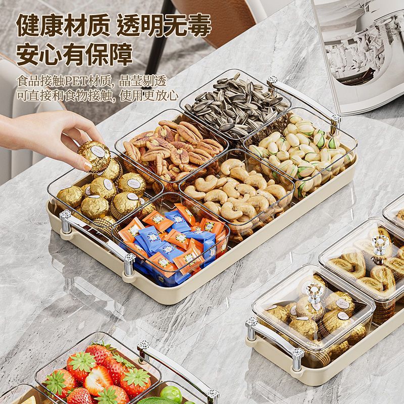 가벼운 고급 봉인 너트 스낵 플레이트 새해 말린 과일 플레이트 저장 상자 가정용 거실 커피 테이블 고급 과일 플레이트스토어 가기