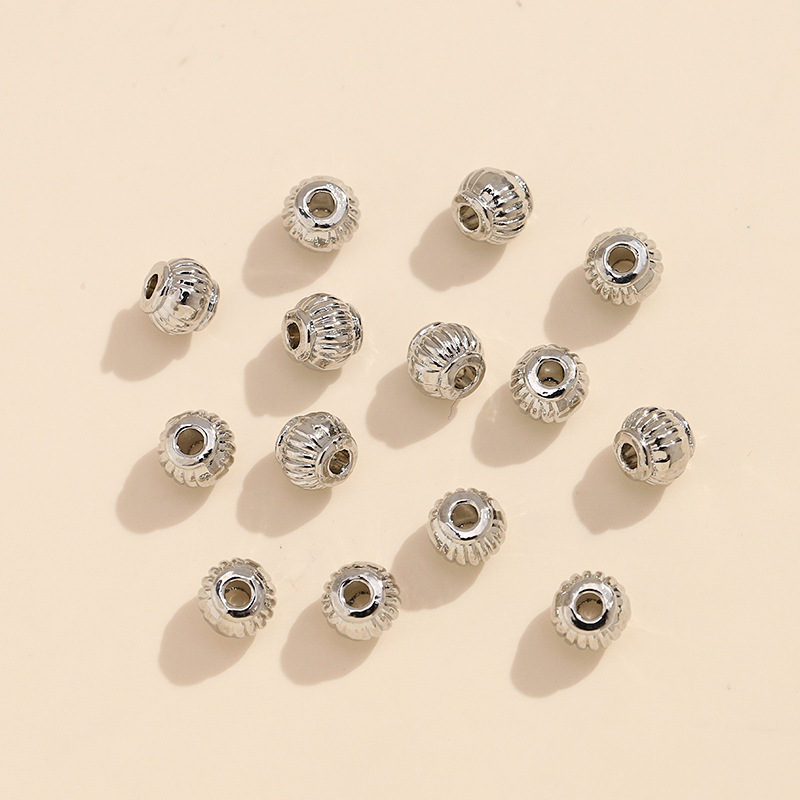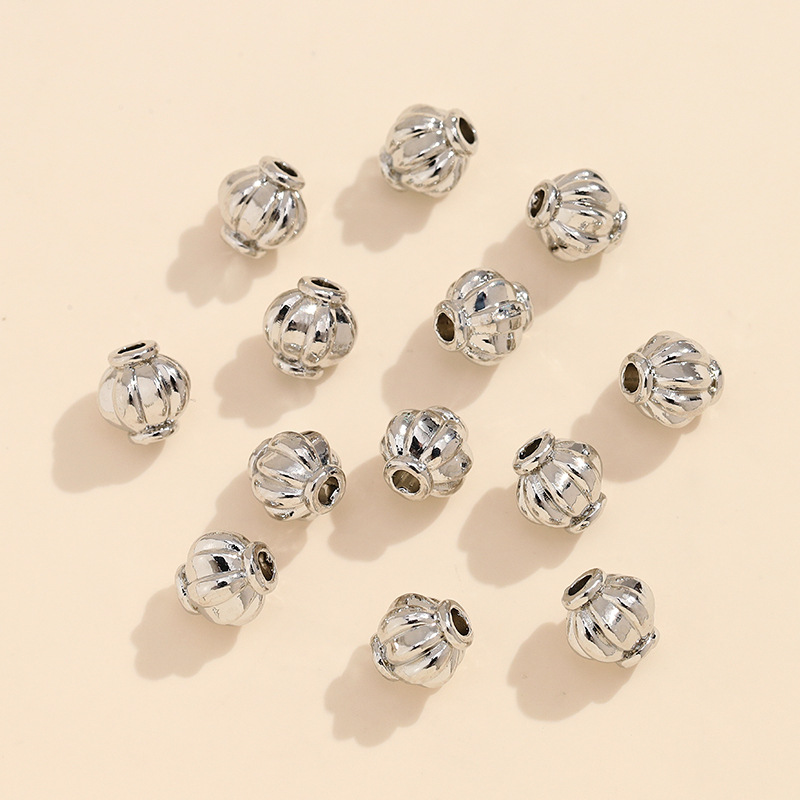 • 색상 보존 두꺼운 은색 호박 패턴 랜턴 비즈, 원형 직경 6mm, 구멍 직경 2mm