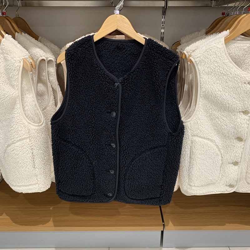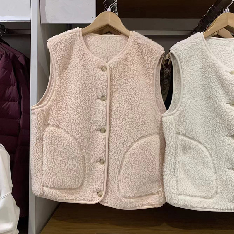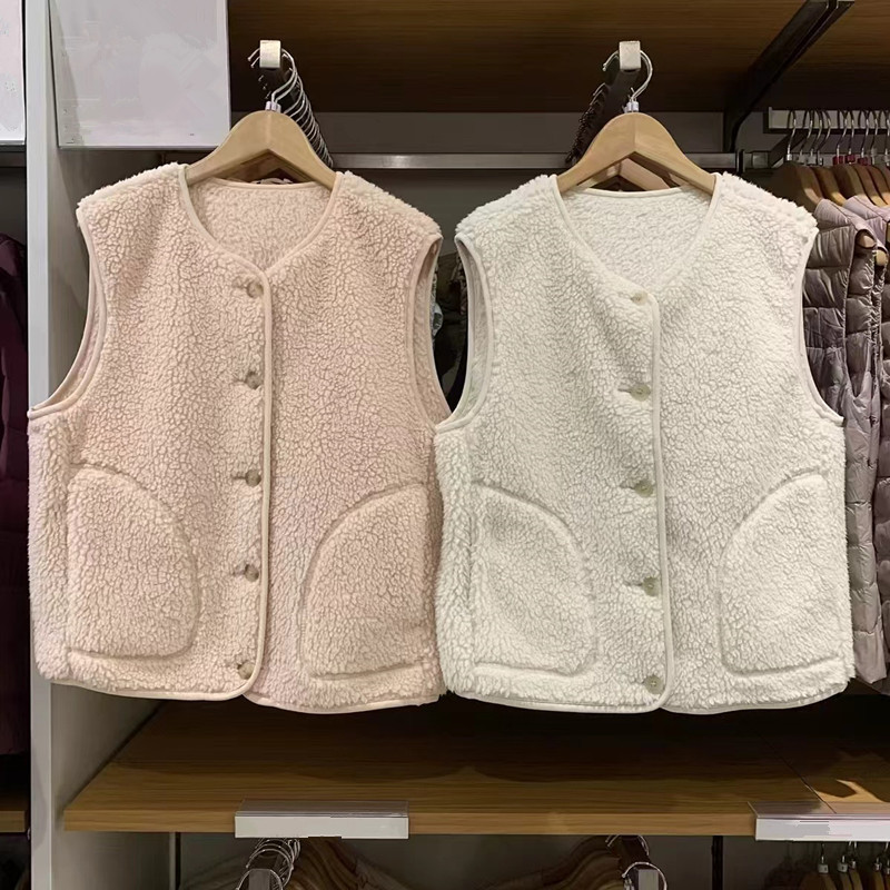 일본 여성 의류 2024 가을과 겨울 모조 양고기 양털 양털 조끼 조끼 스탠드 칼라 따뜻한 조끼 재킷 477057