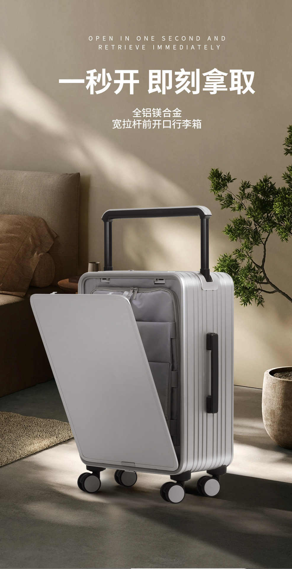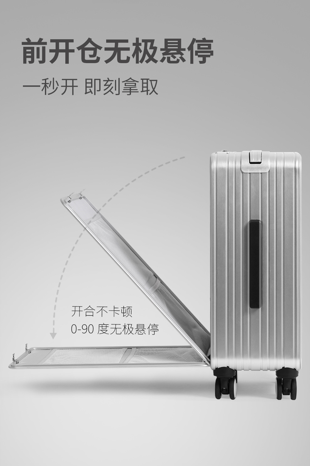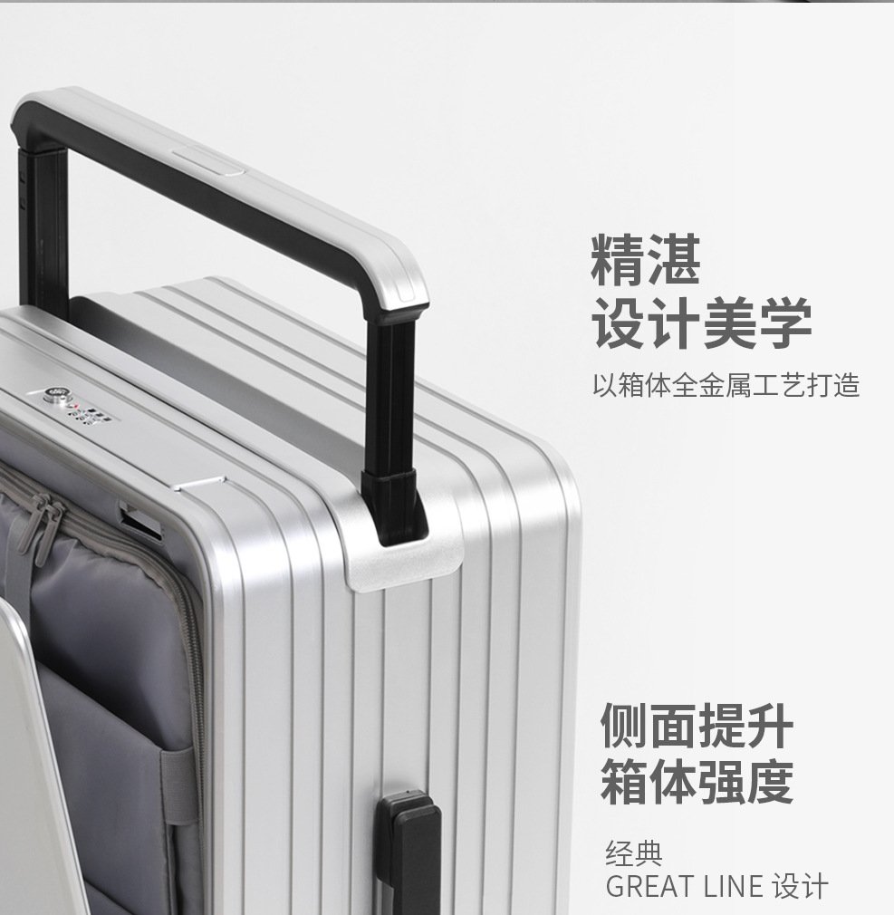 알루미늄-마그네슘 합금 하이 엔드 비즈니스 탑승 상자 20 인치 수하물 음소거 유니버설 휠 가방 다기능 전면 포장 해제스토어 가기