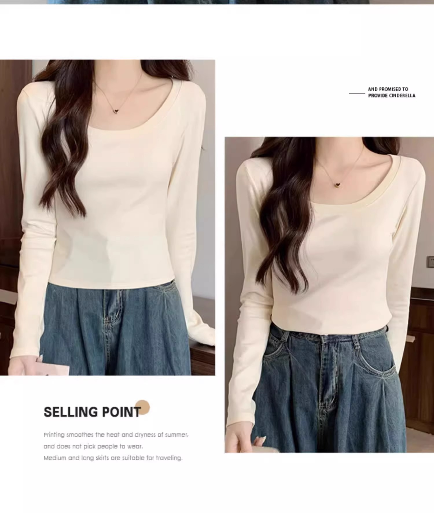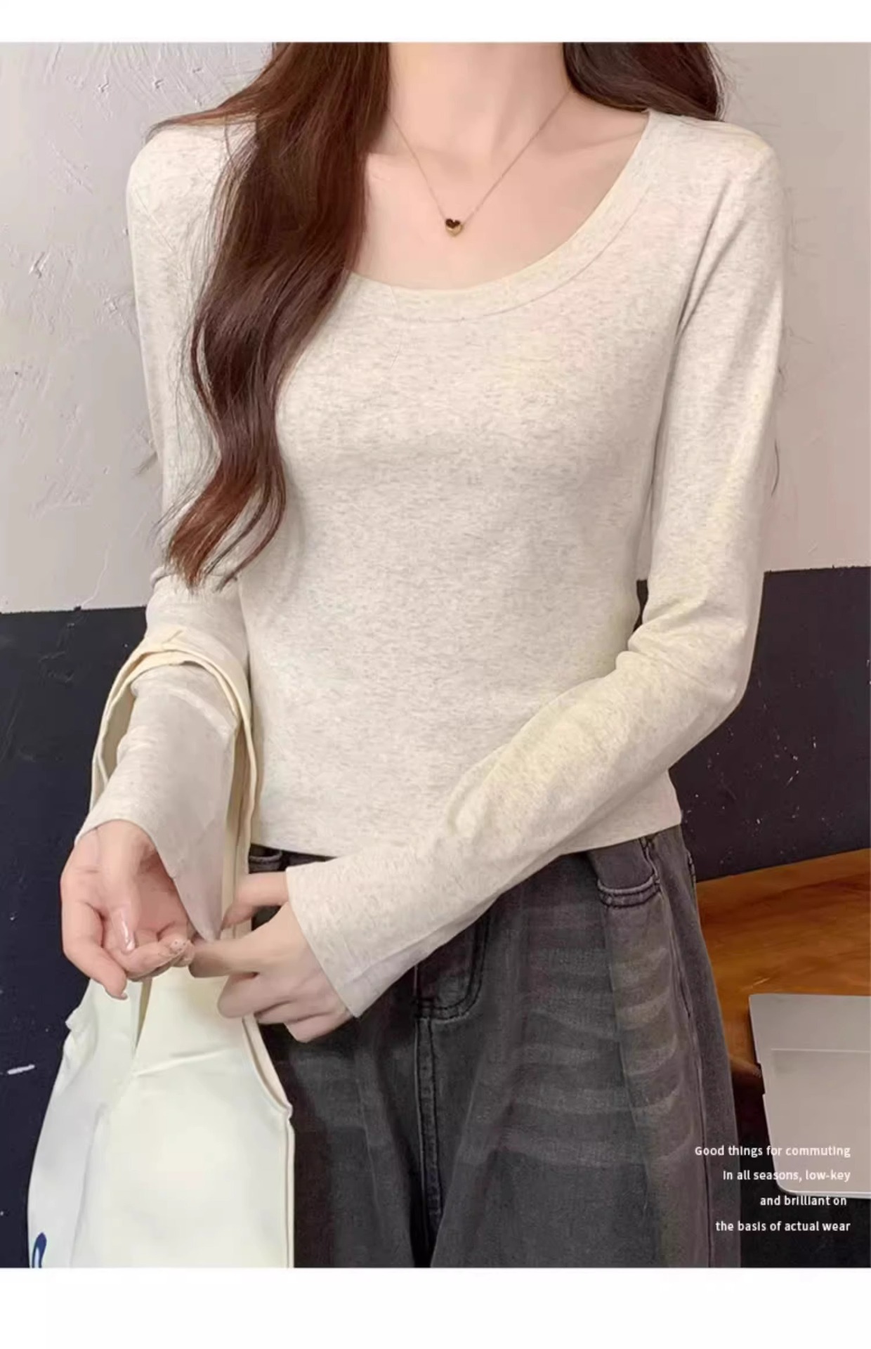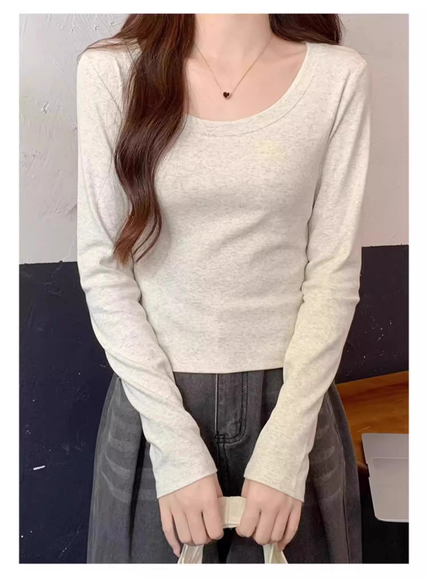 스파이스 걸스 슬림 핏 Collarbone U-Nad Velvet 샌딩 긴팔 티셔츠 여성용 가을 및 겨울 새로운 작은 내부 슬림 탑
