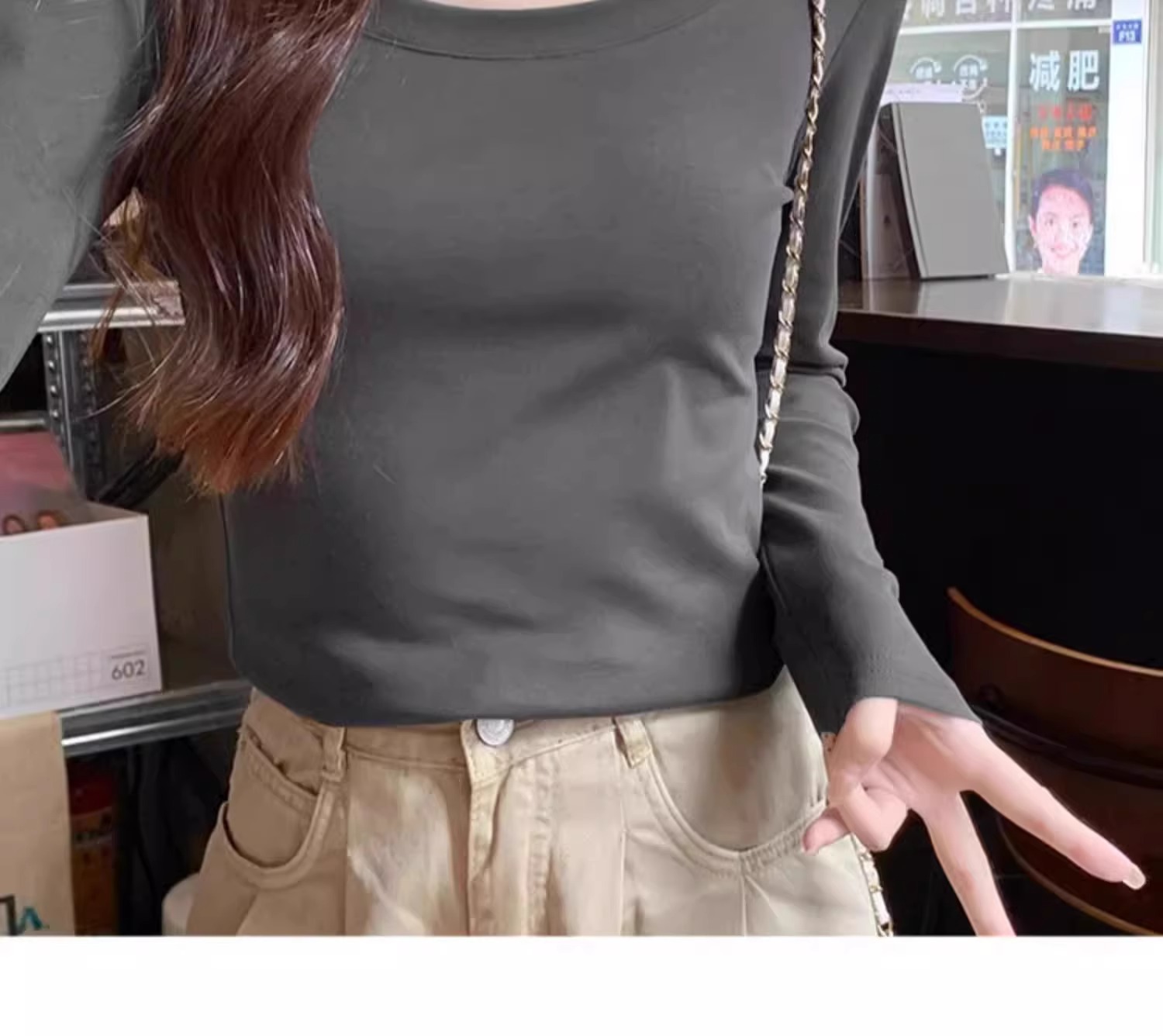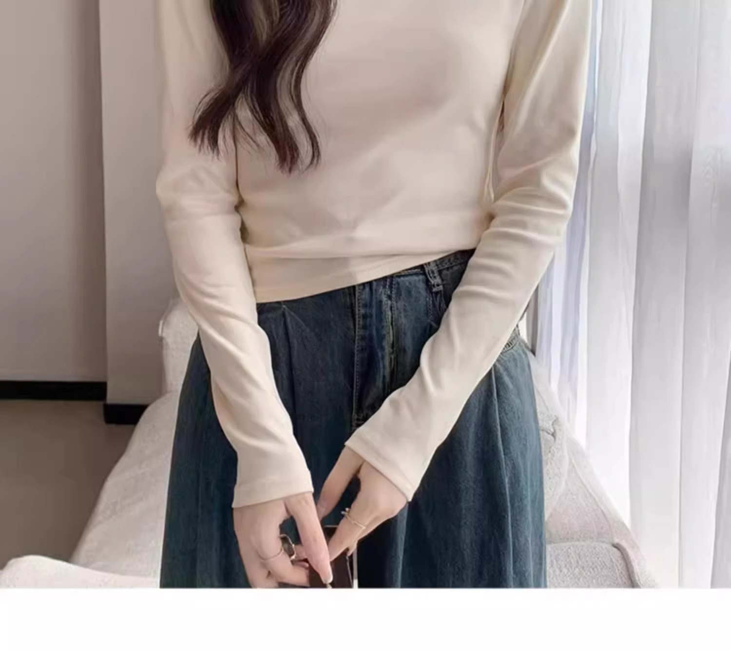 스파이스 걸스 슬림 핏 Collarbone U-Nad Velvet 샌딩 긴팔 티셔츠 여성용 가을 및 겨울 새로운 작은 내부 슬림 탑스토어 가기