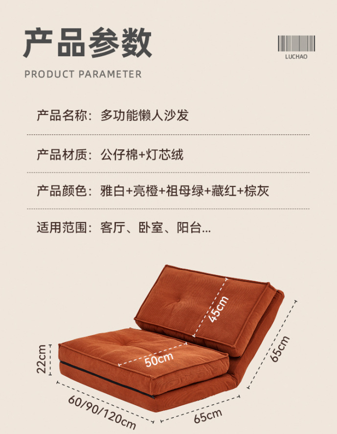 게으른 소파 침대 거실 이중 목적 싱글 소파 작은 아파트 홈 크림 스타일 리클라이닝 및 수면 접이식 소파 침대