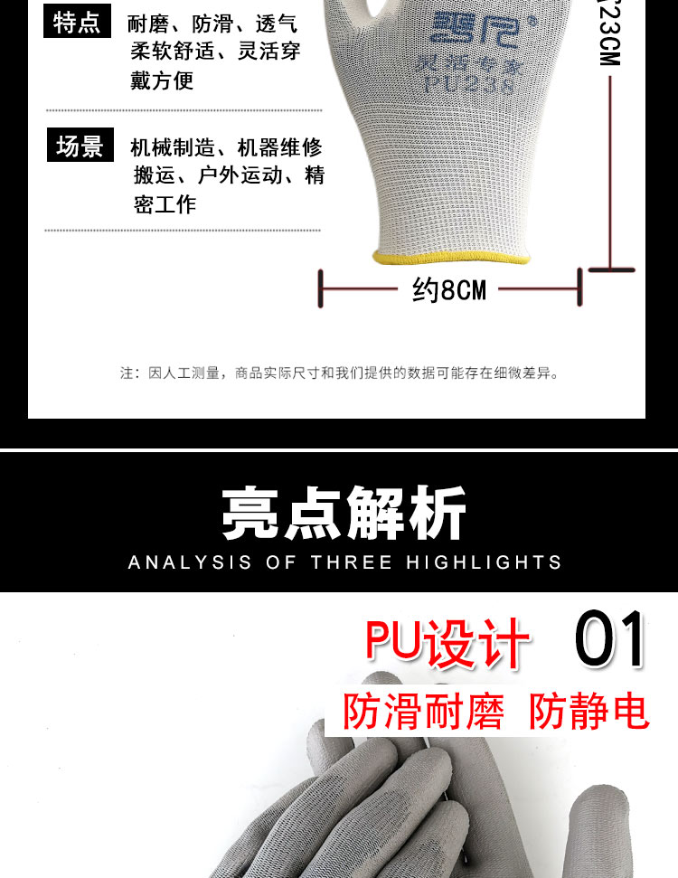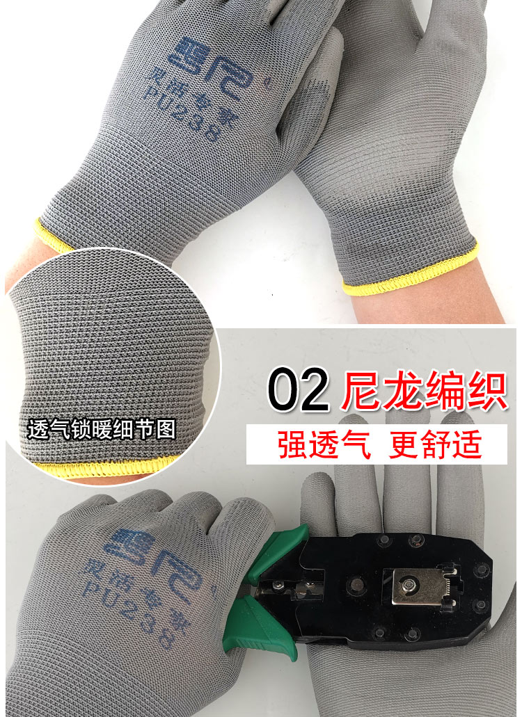 얇은 일반 Pu238 나일론 접착제 딥 핑거 전자 먼지없는 정전기 방지 작업 야외 노동 보호 장갑스토어 가기
