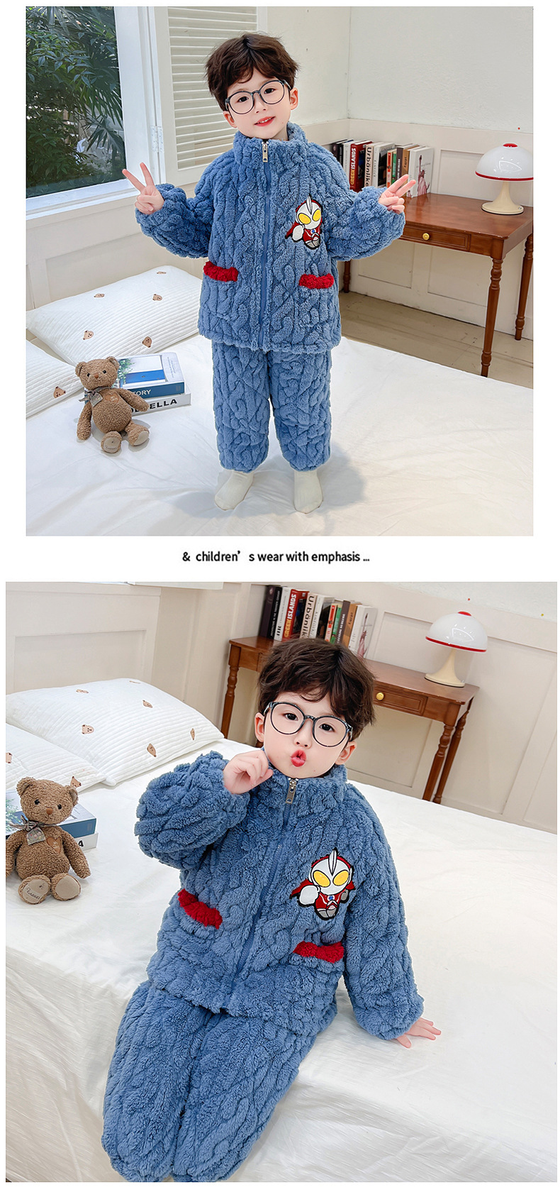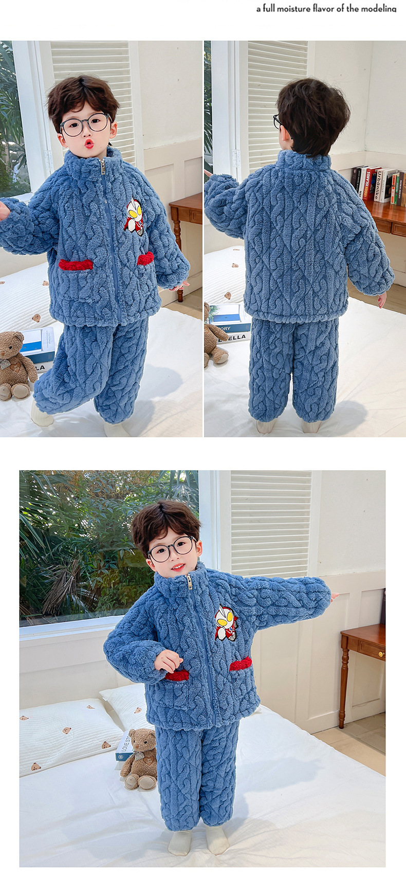 어린이 잠옷 겨울 기모 2024 새로운 3 층 면 소년 산호 양털 가을과 겨울 홈 의류