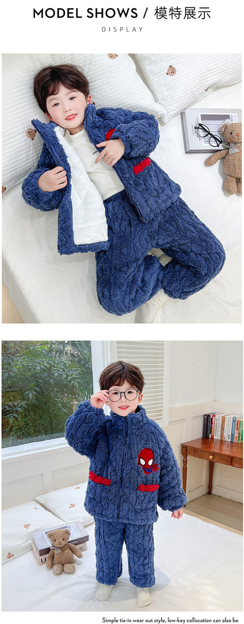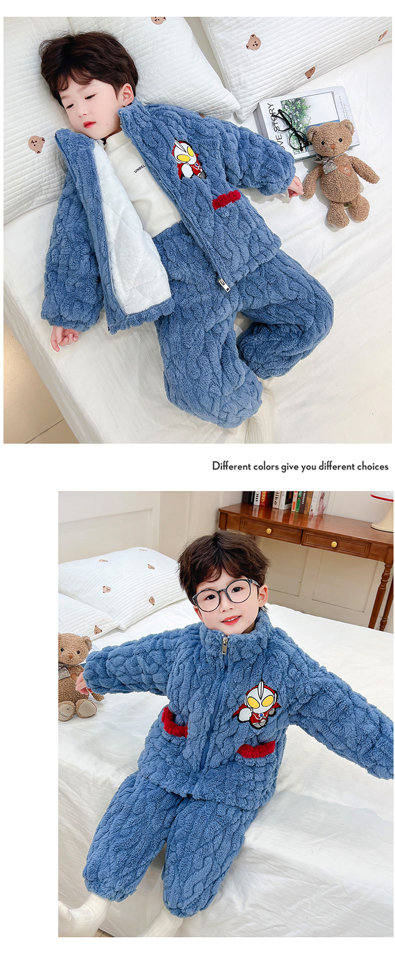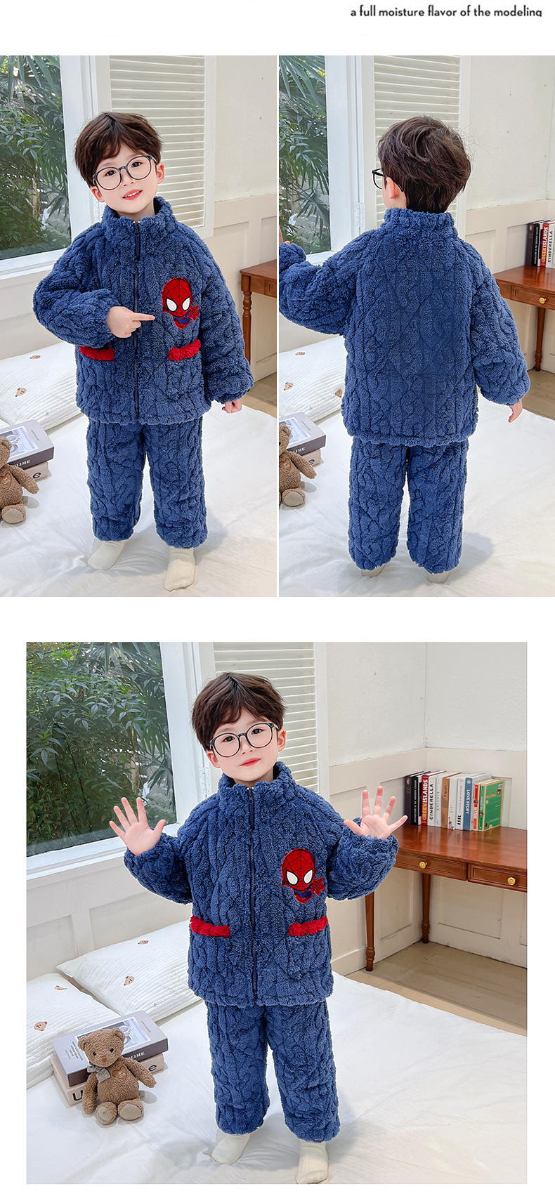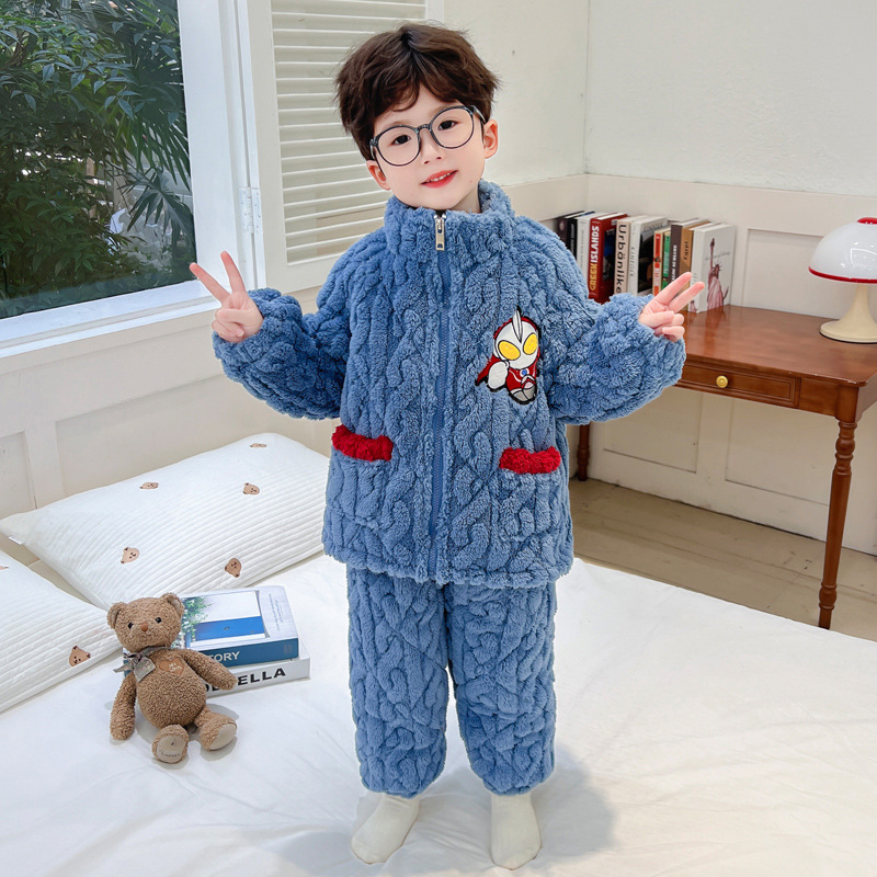 어린이 잠옷 겨울 기모 2024 새로운 3 층 면 소년 산호 양털 가을과 겨울 홈 의류스토어 가기