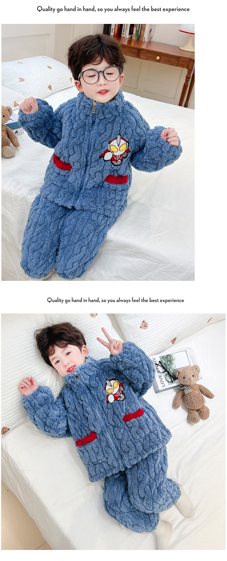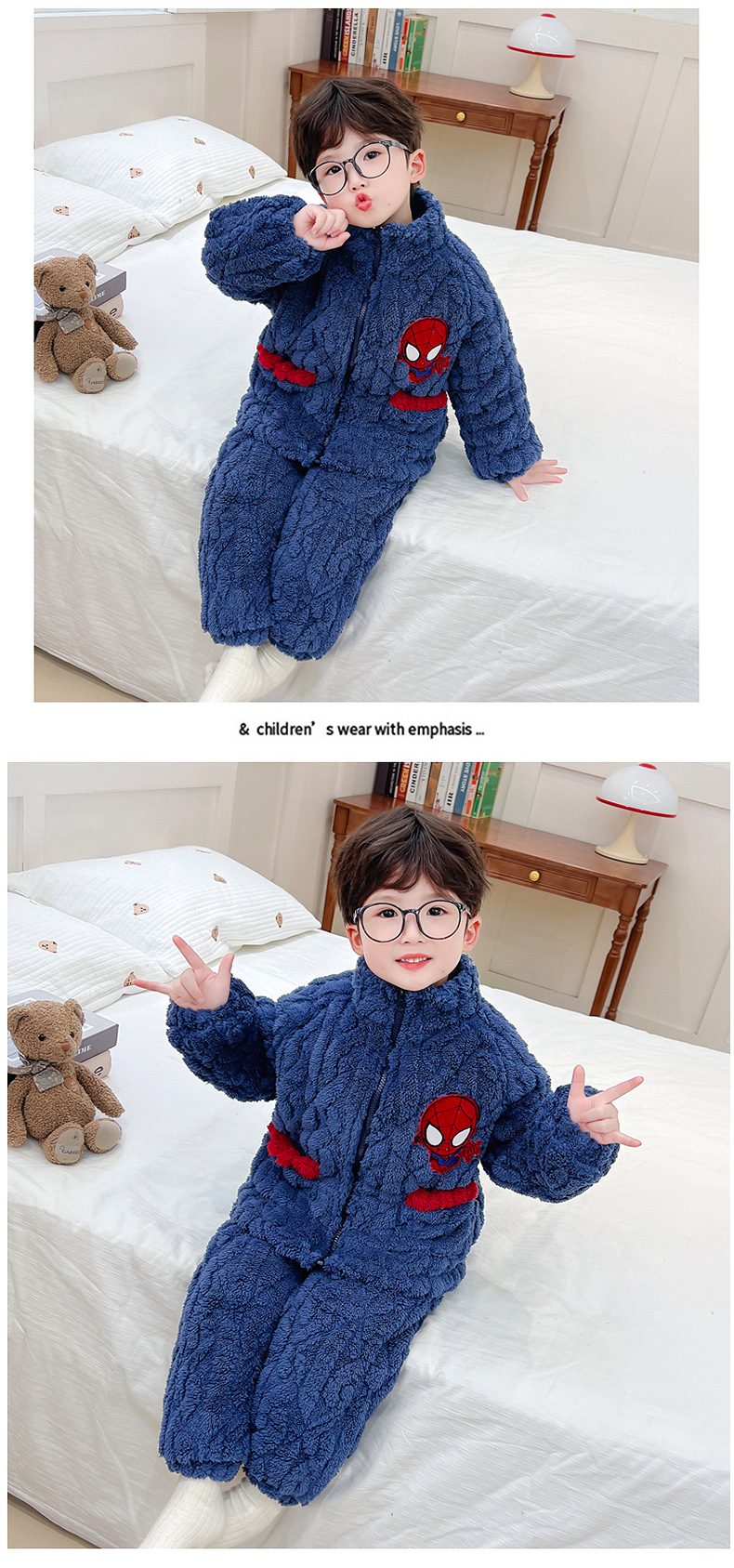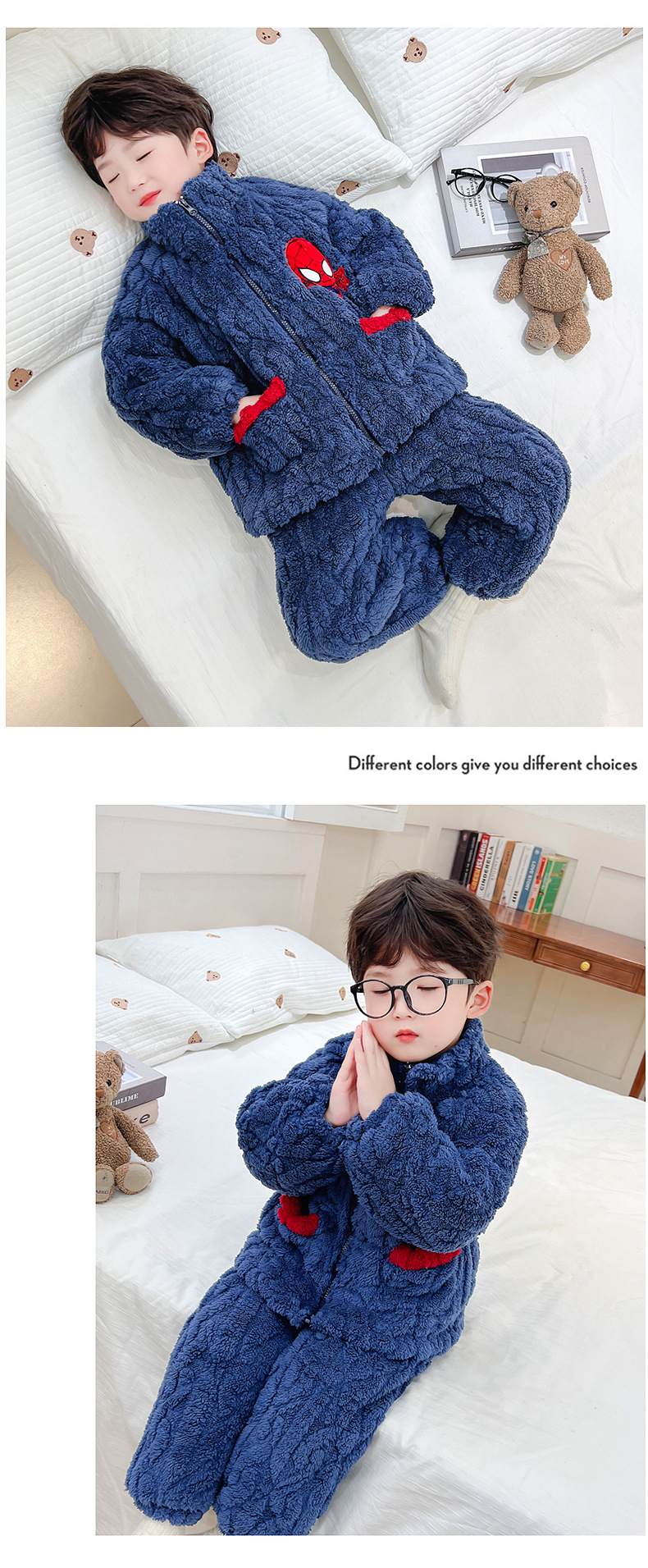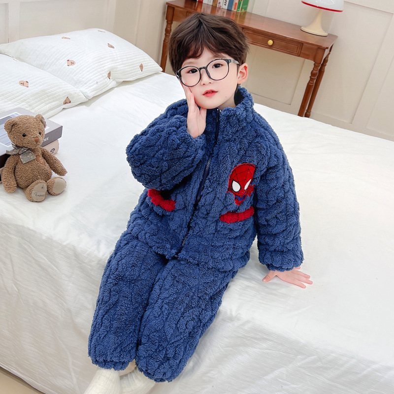 어린이 잠옷 겨울 기모 2024 새로운 3 층 면 소년 산호 양털 가을과 겨울 홈 의류스토어 가기