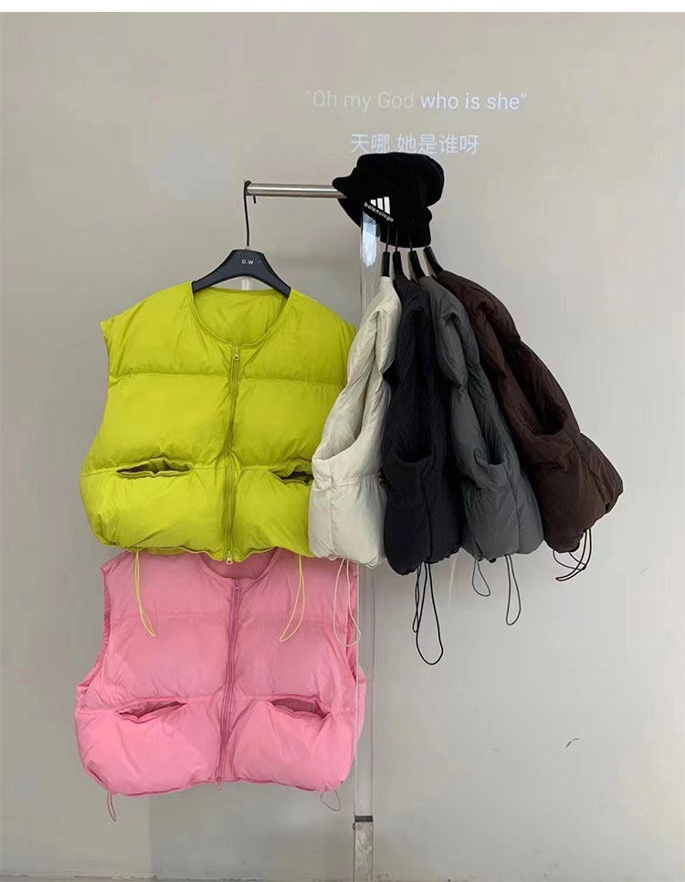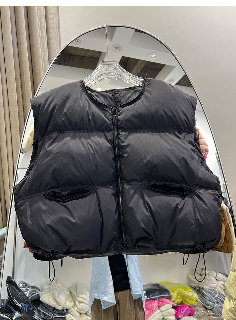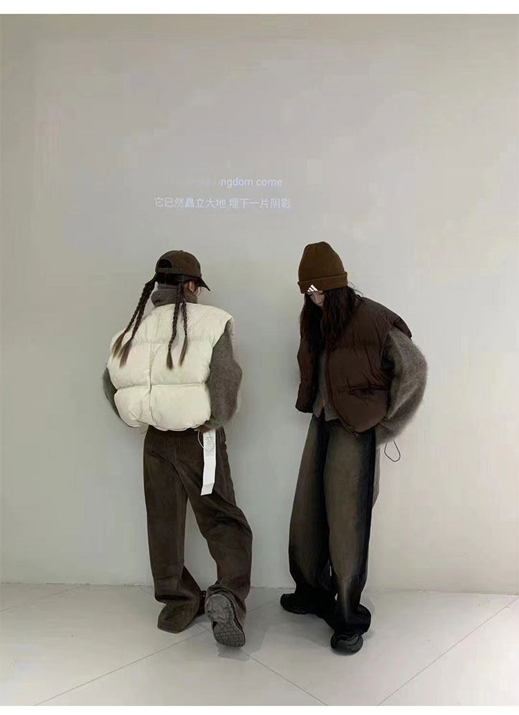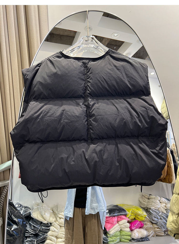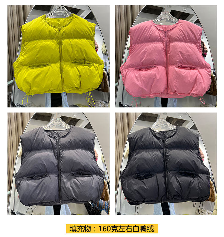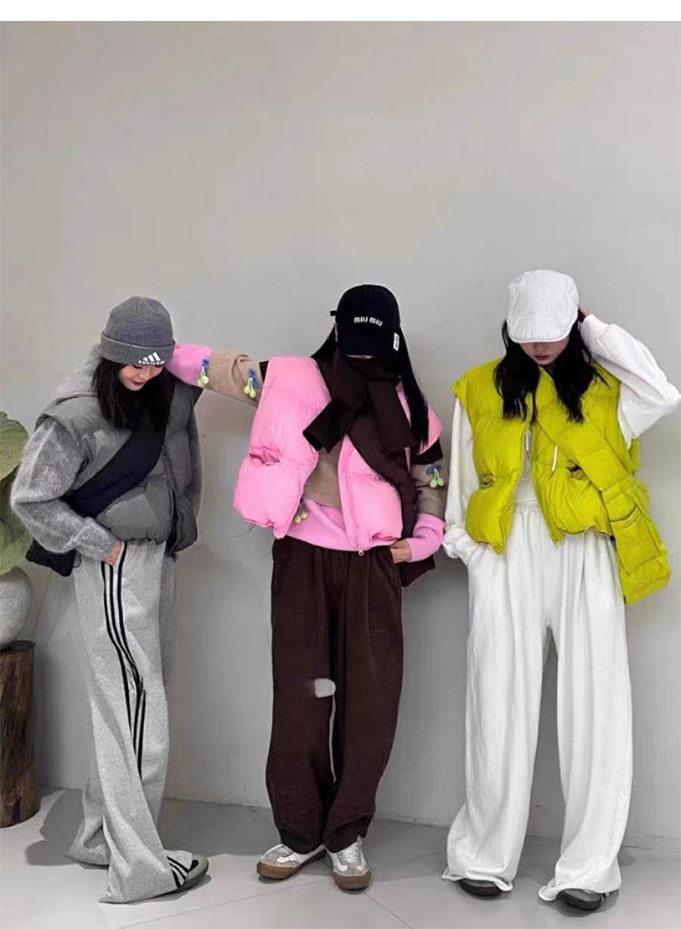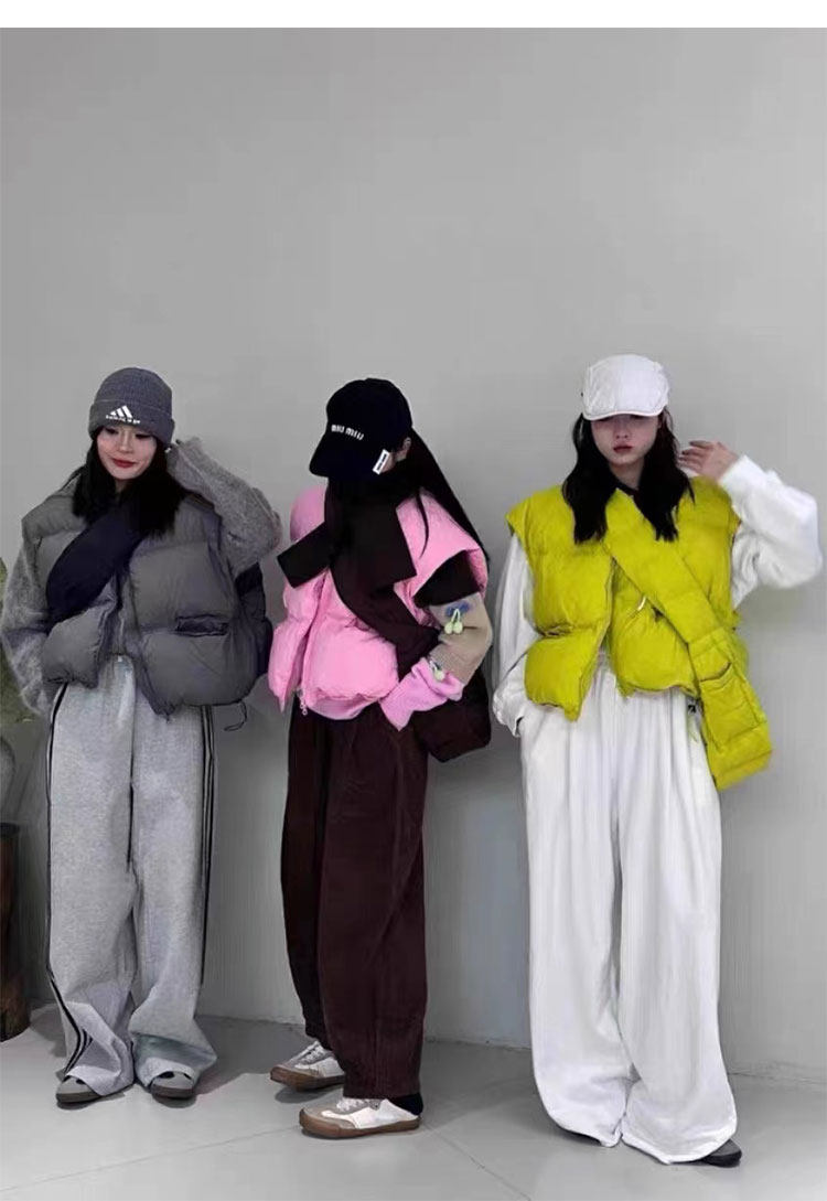 2024 한국 스타일 가을과 겨울 새로운 호박 다운 조끼 여성 캐주얼 느슨한 짧은 빵 세트 민소매 조끼스토어 가기