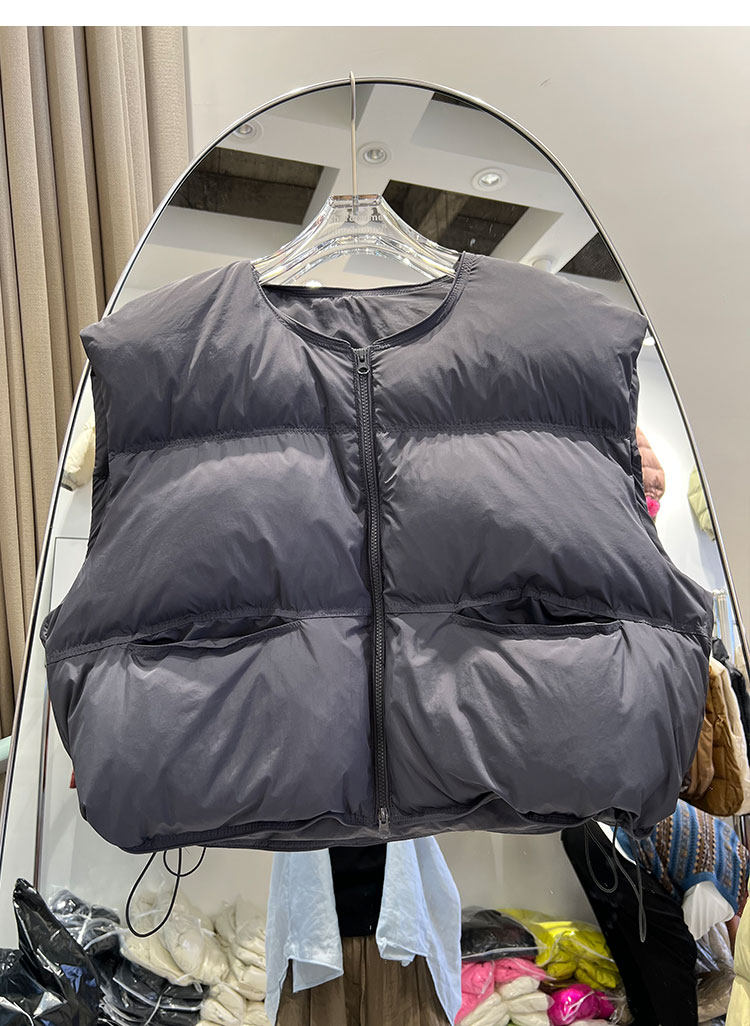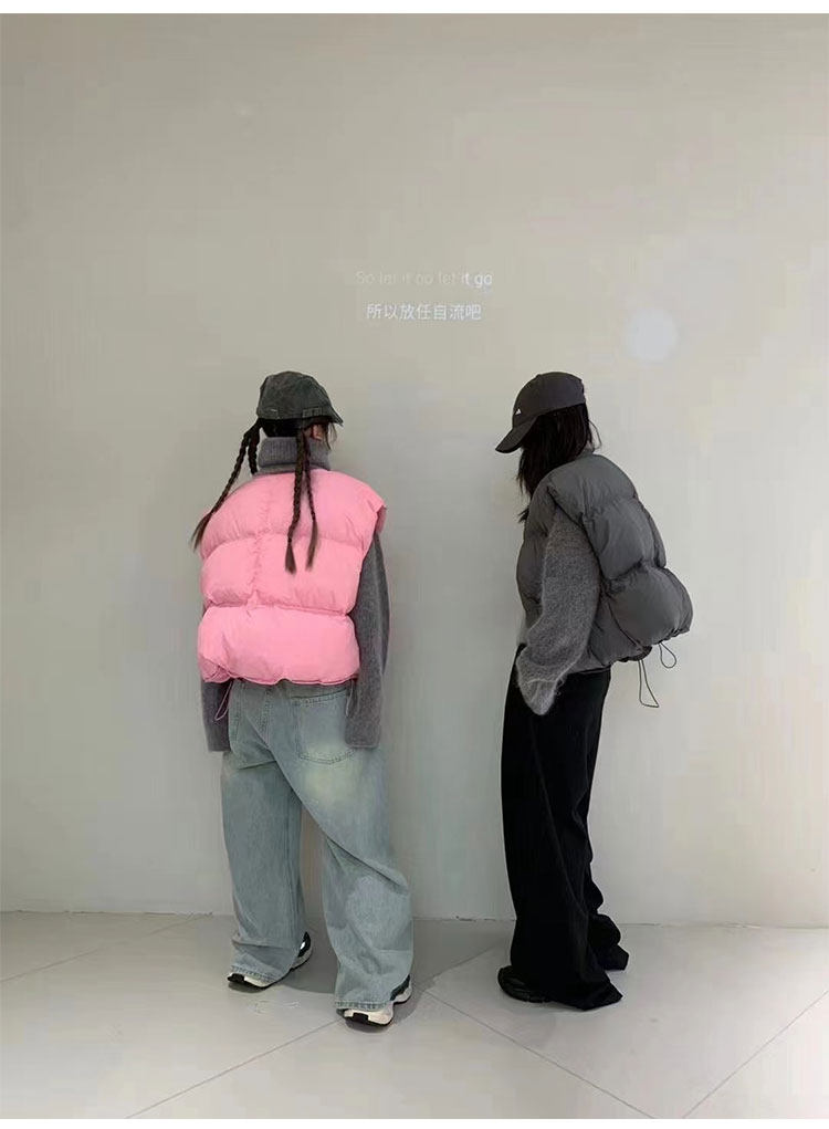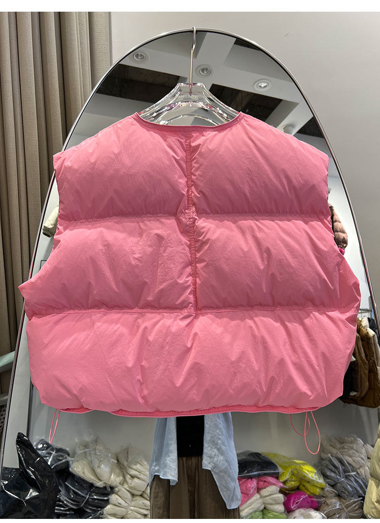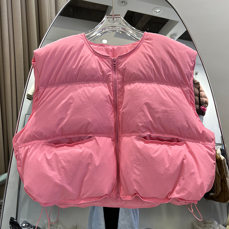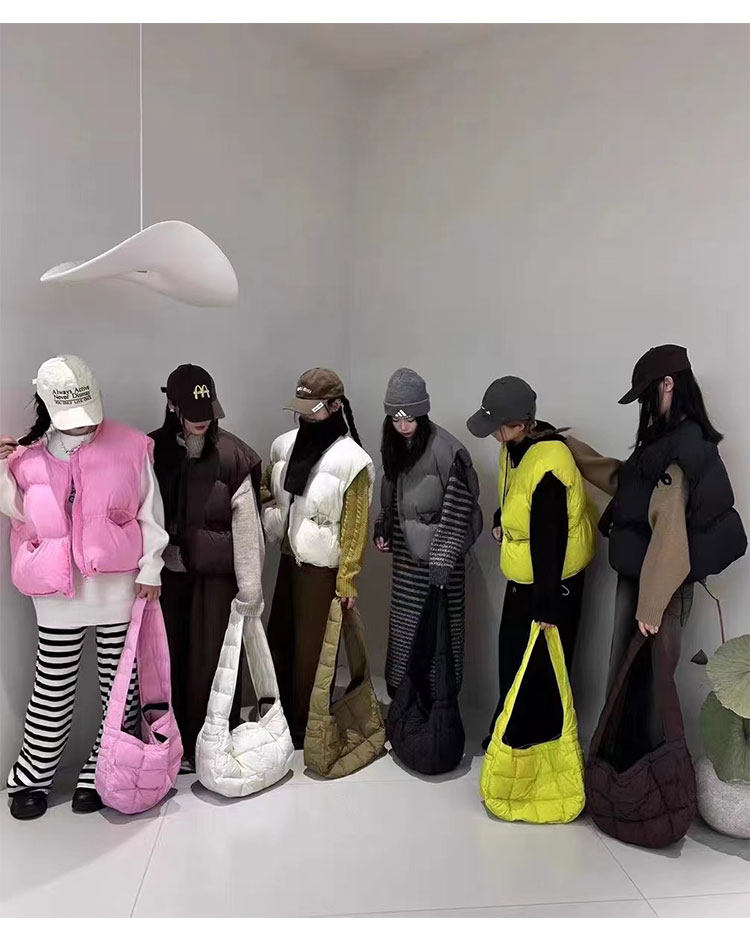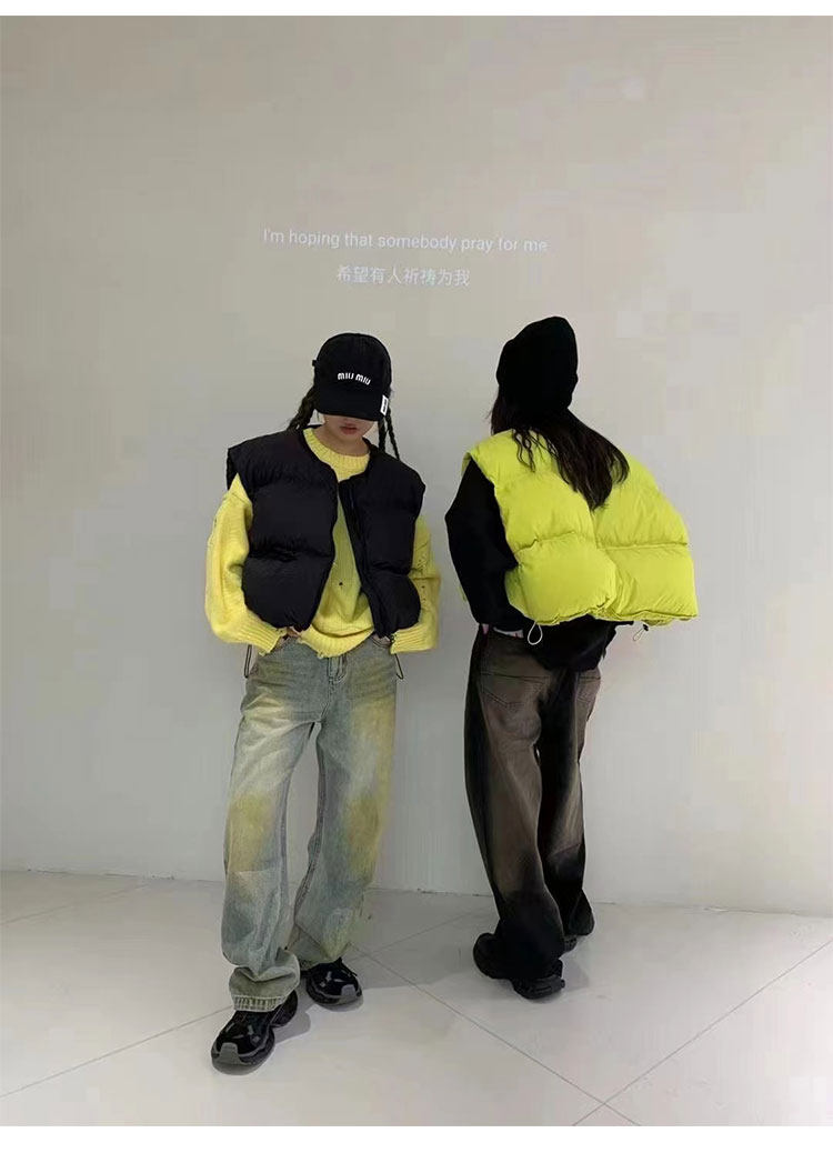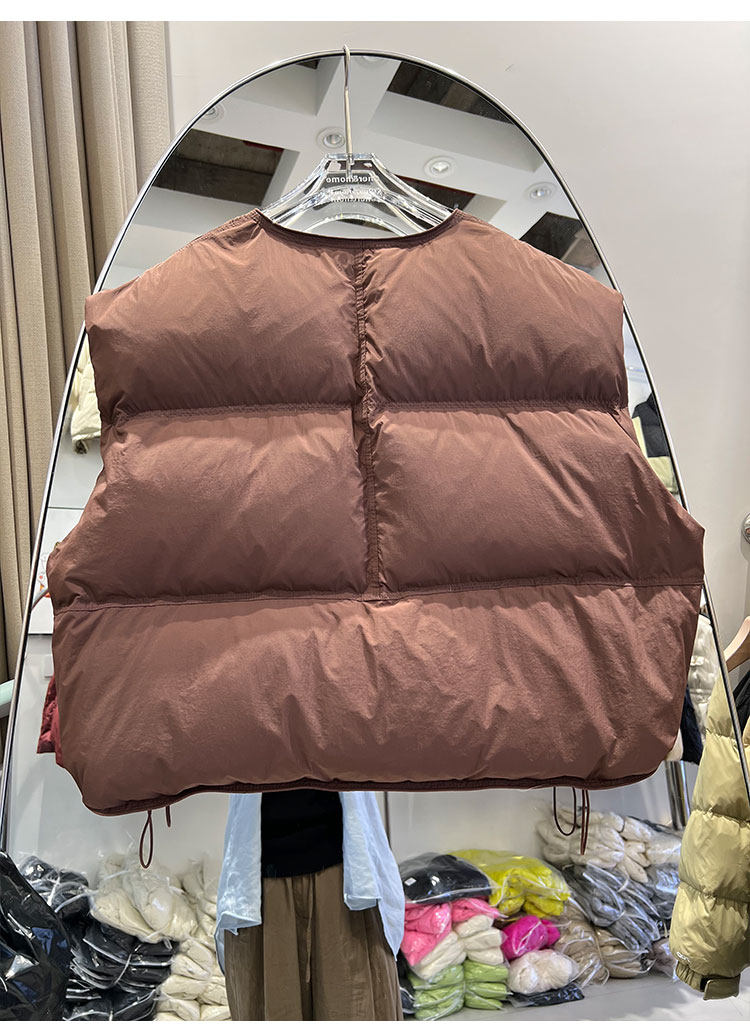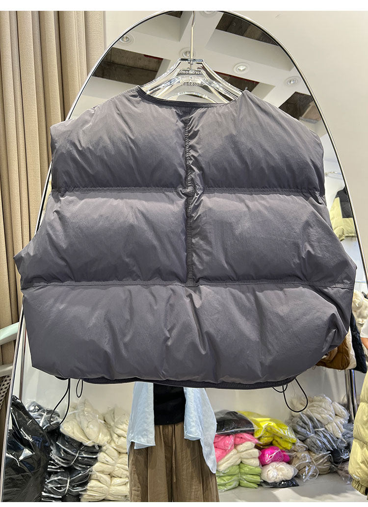 2024 한국 스타일 가을과 겨울 새로운 호박 다운 조끼 여성 캐주얼 느슨한 짧은 빵 세트 민소매 조끼스토어 가기
