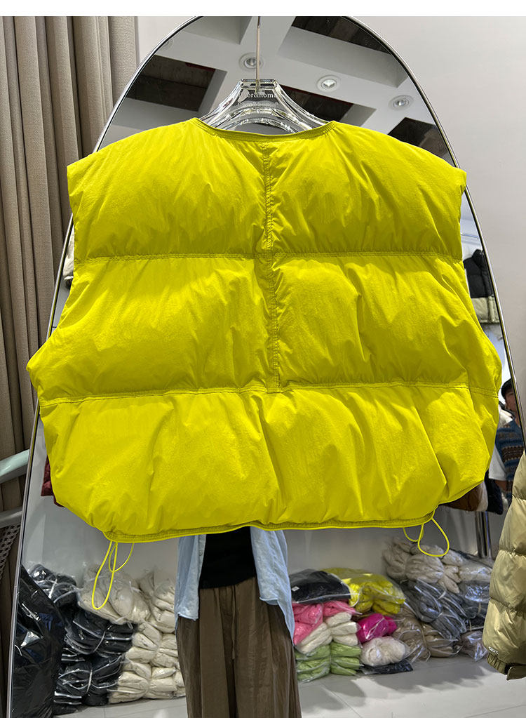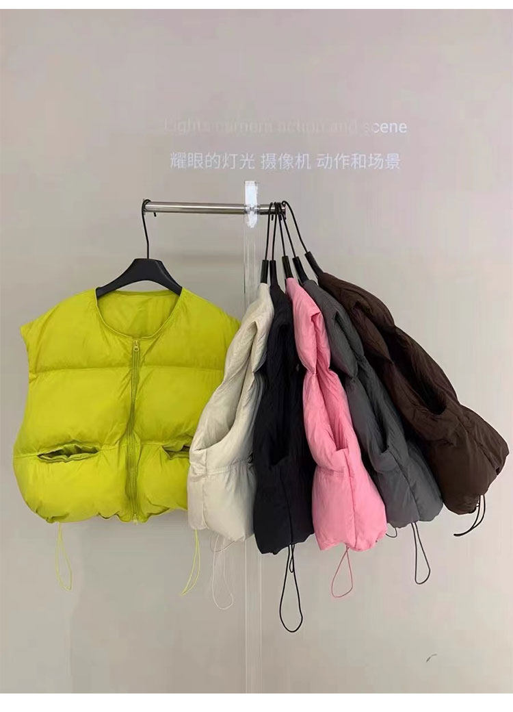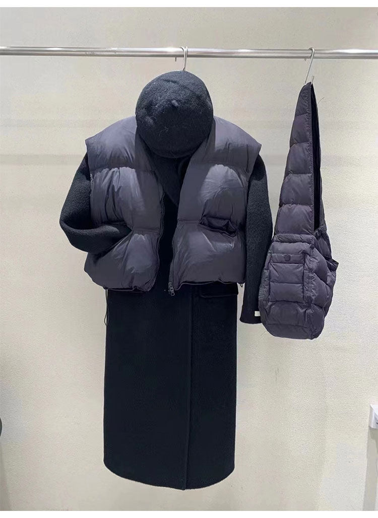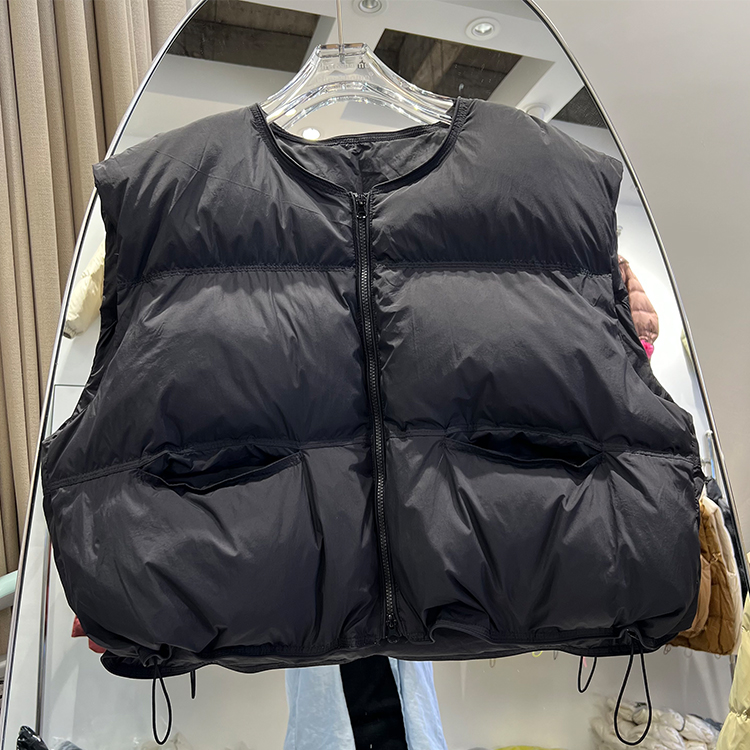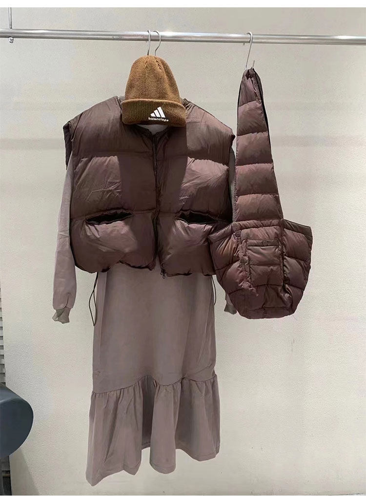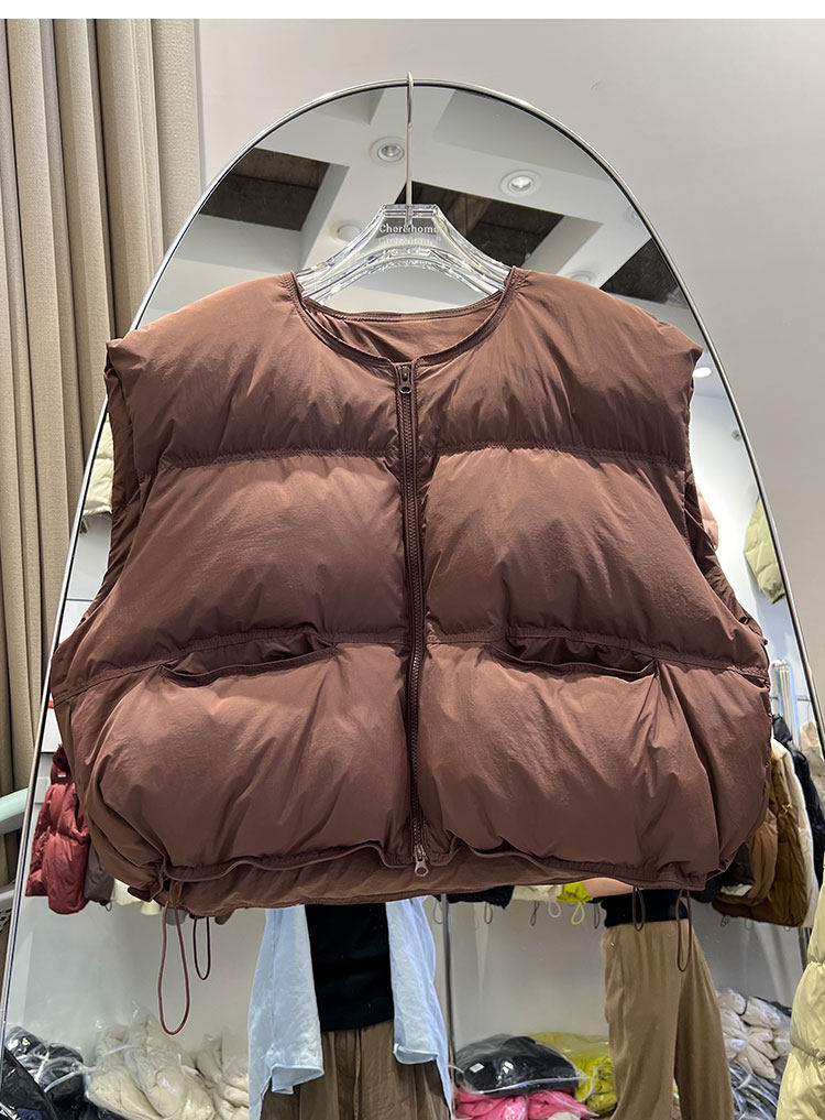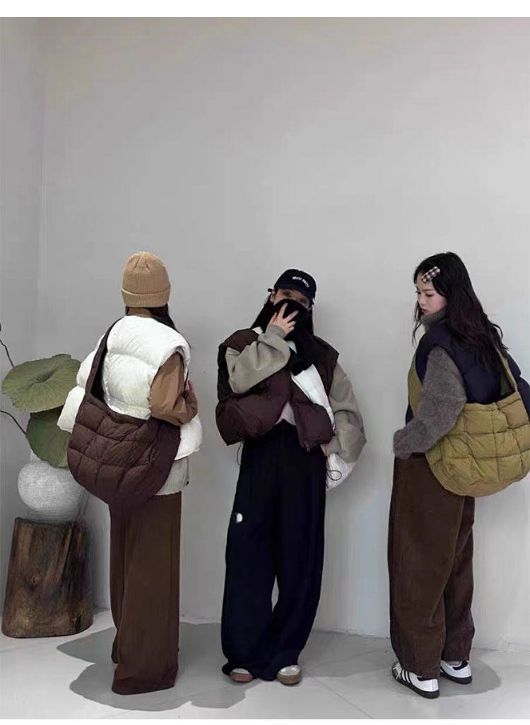 2024 한국 스타일 가을과 겨울 새로운 호박 다운 조끼 여성 캐주얼 느슨한 짧은 빵 세트 민소매 조끼스토어 가기