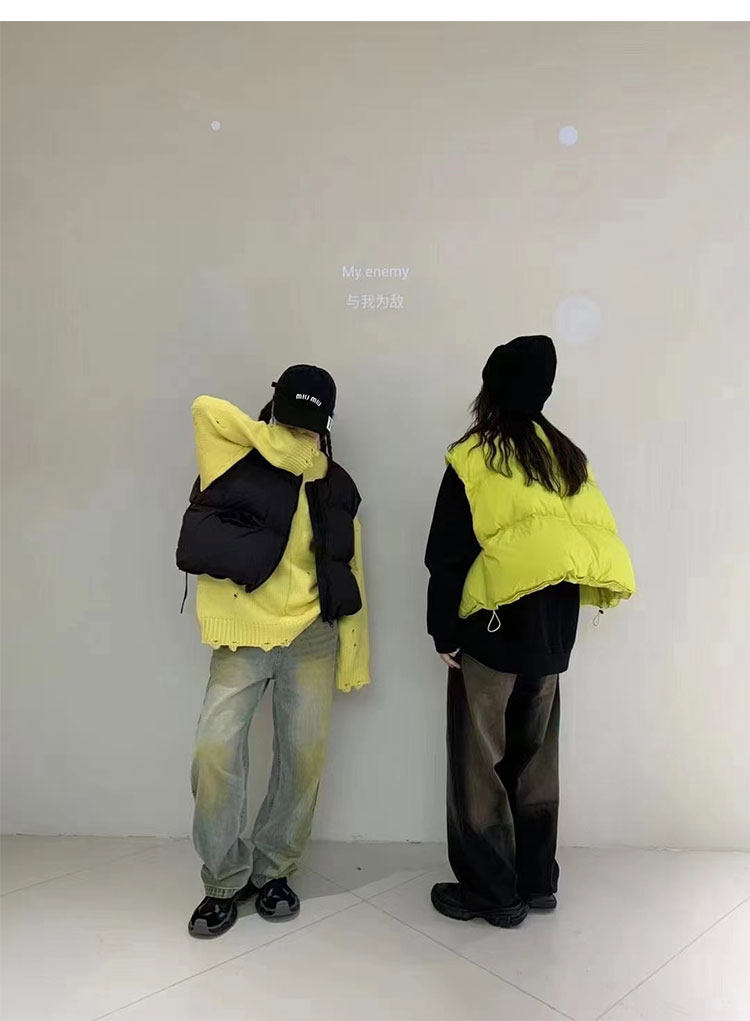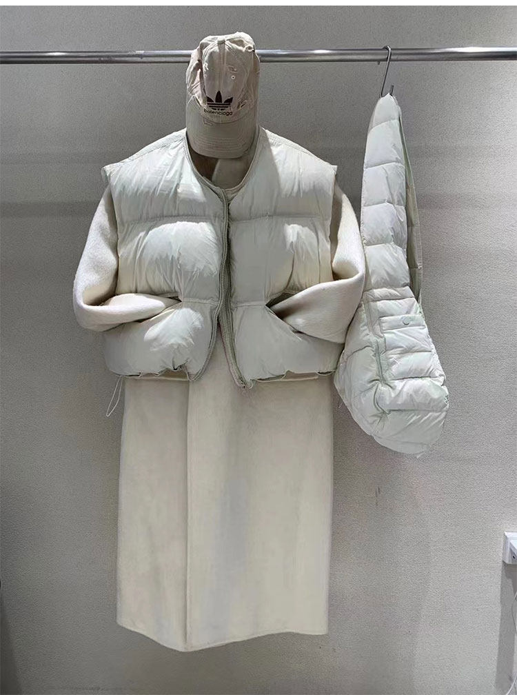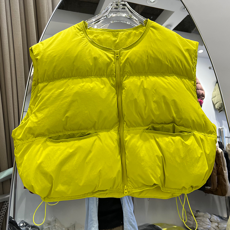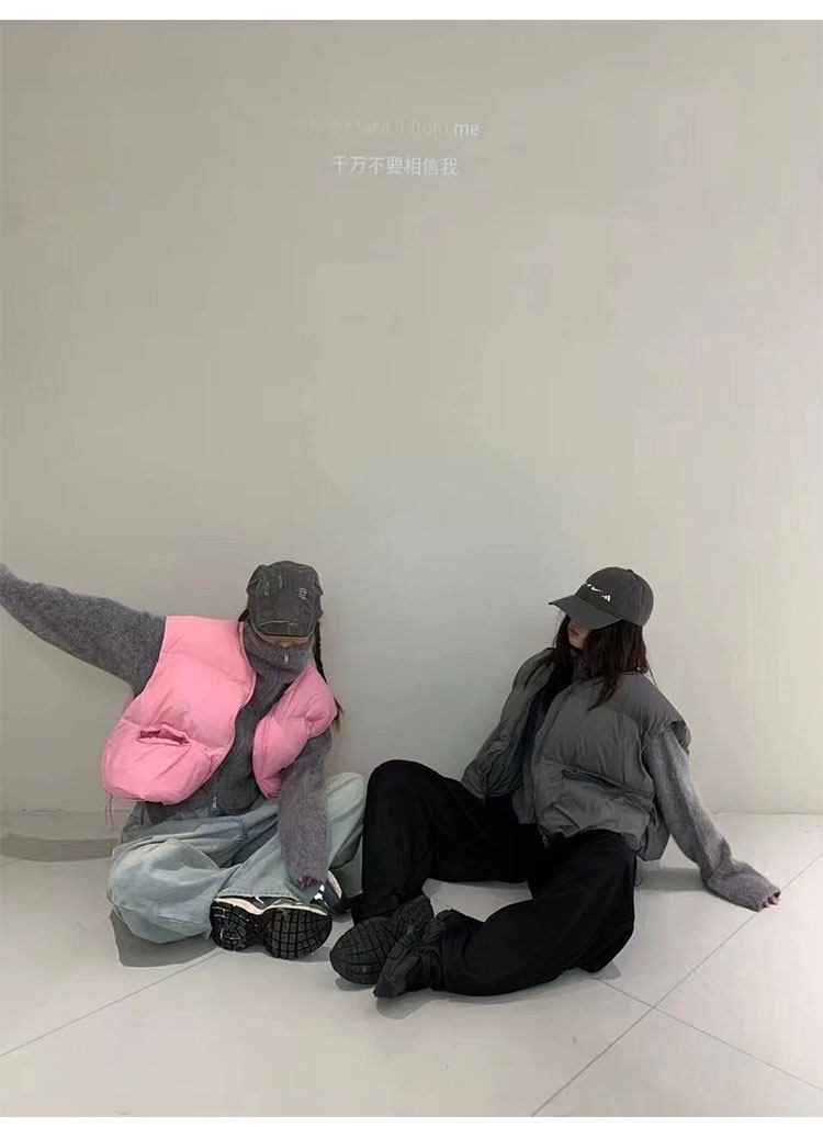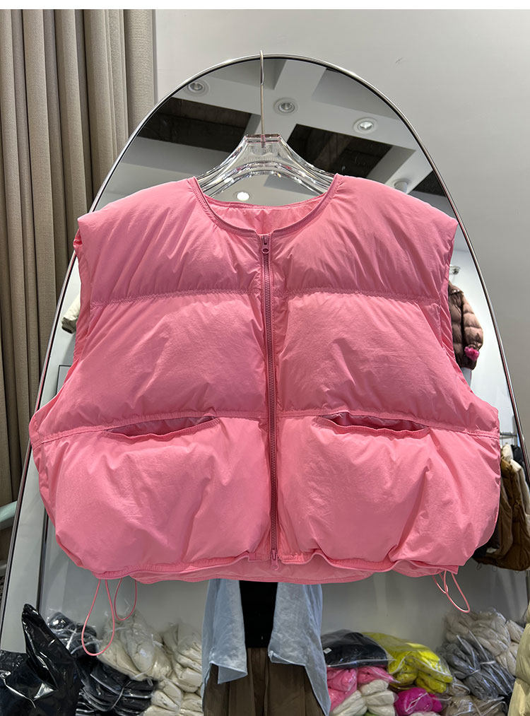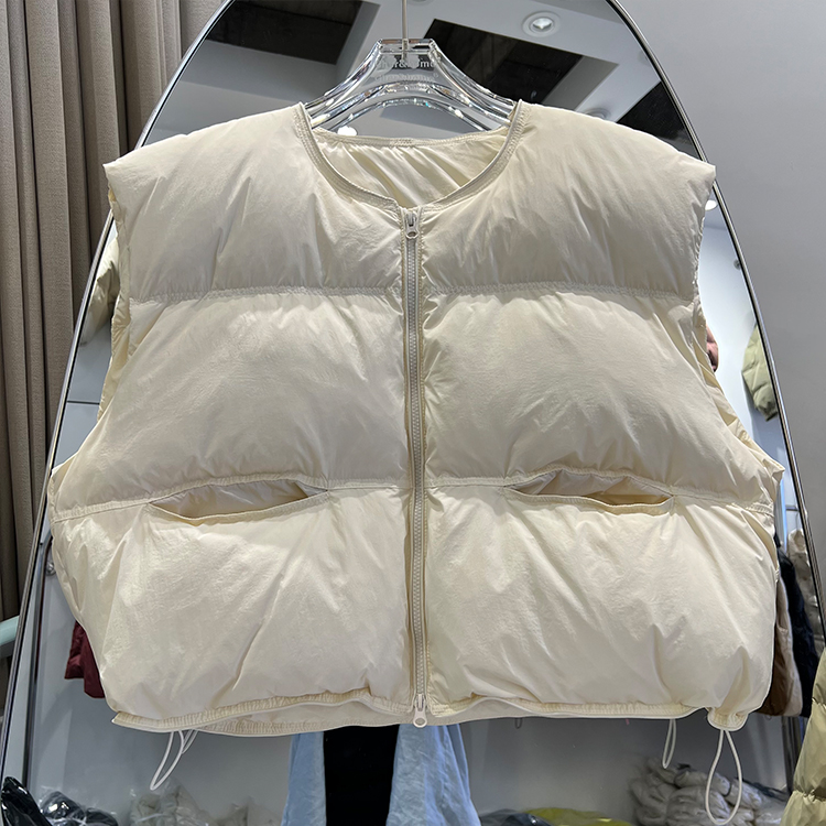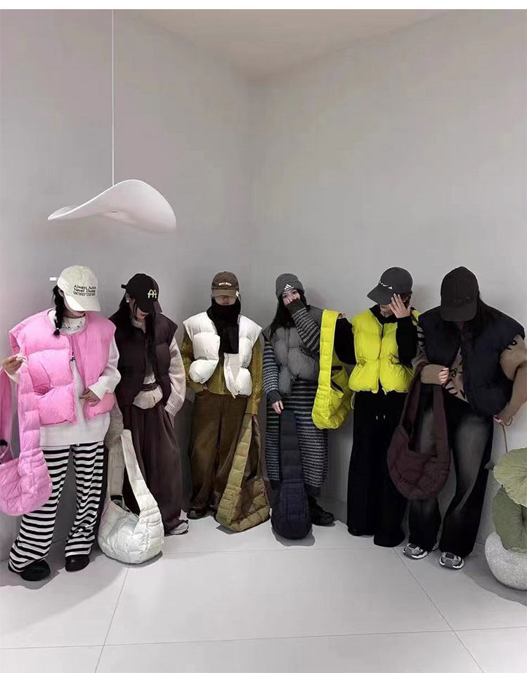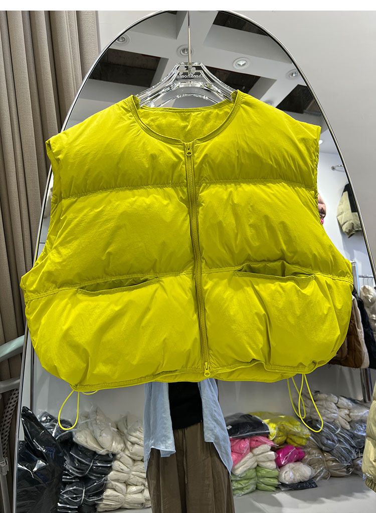 2024 한국 스타일 가을과 겨울 새로운 호박 다운 조끼 여성 캐주얼 느슨한 짧은 빵 세트 민소매 조끼스토어 가기