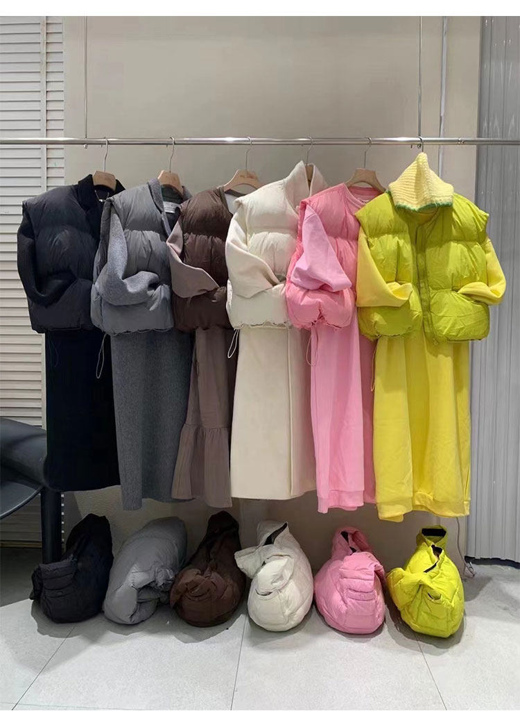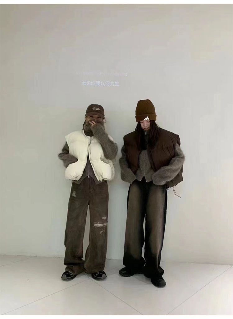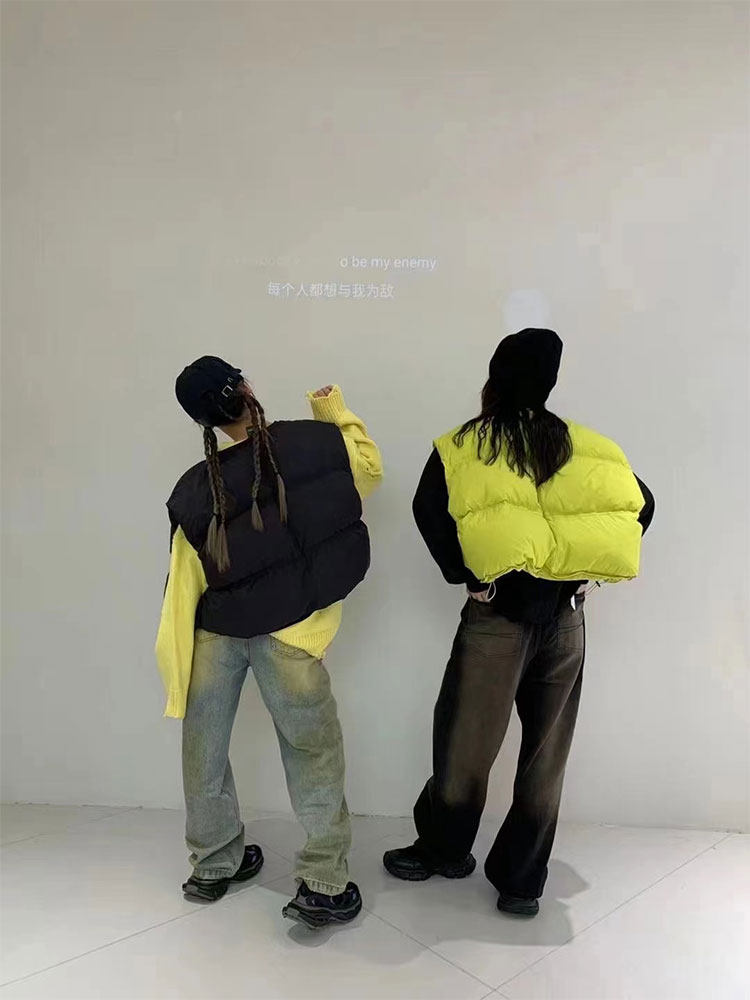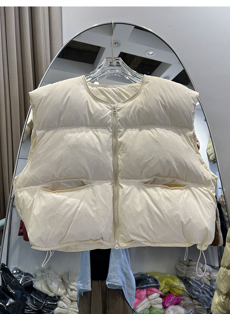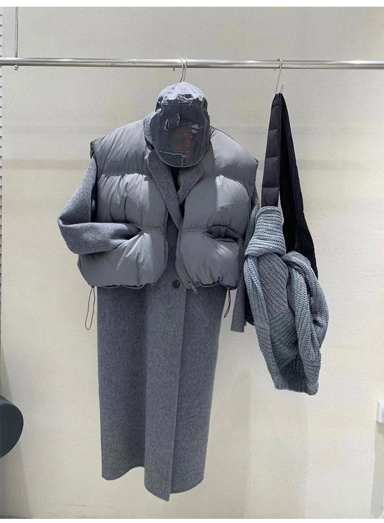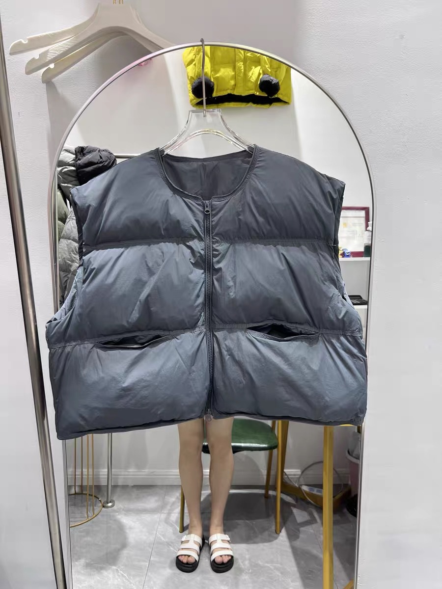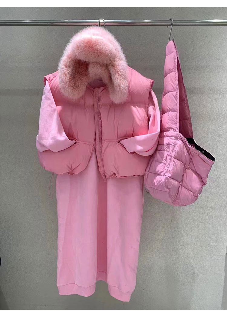 2024 한국 스타일 가을과 겨울 새로운 호박 다운 조끼 여성 캐주얼 느슨한 짧은 빵 세트 민소매 조끼스토어 가기