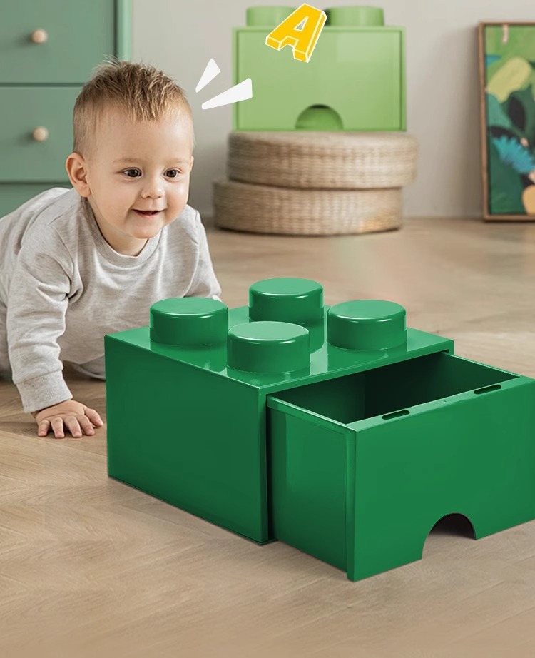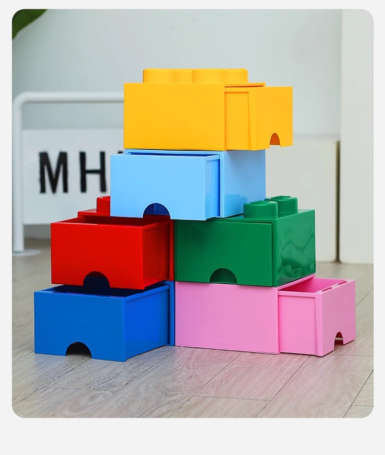 단색 4 입자 건물 블록 먼지 방지 서랍 형 저장 디스플레이 상자 쌓을 수 있는 저장 기장 장난감