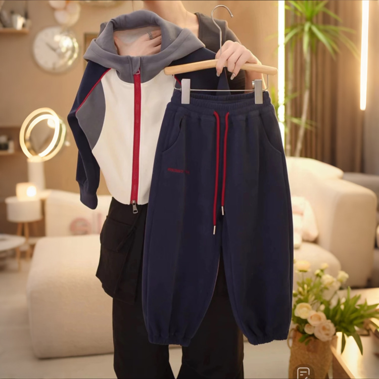 2024 유행 투피스 후드 스웨트 재킷 어린이 봄과 가을 소녀 빅 보이 신소녀 가을 옷 세트 가을스토어 가기
