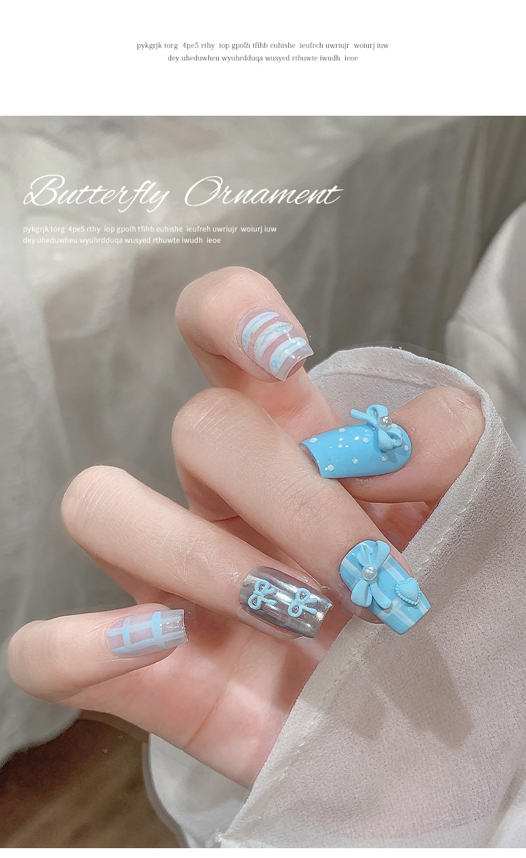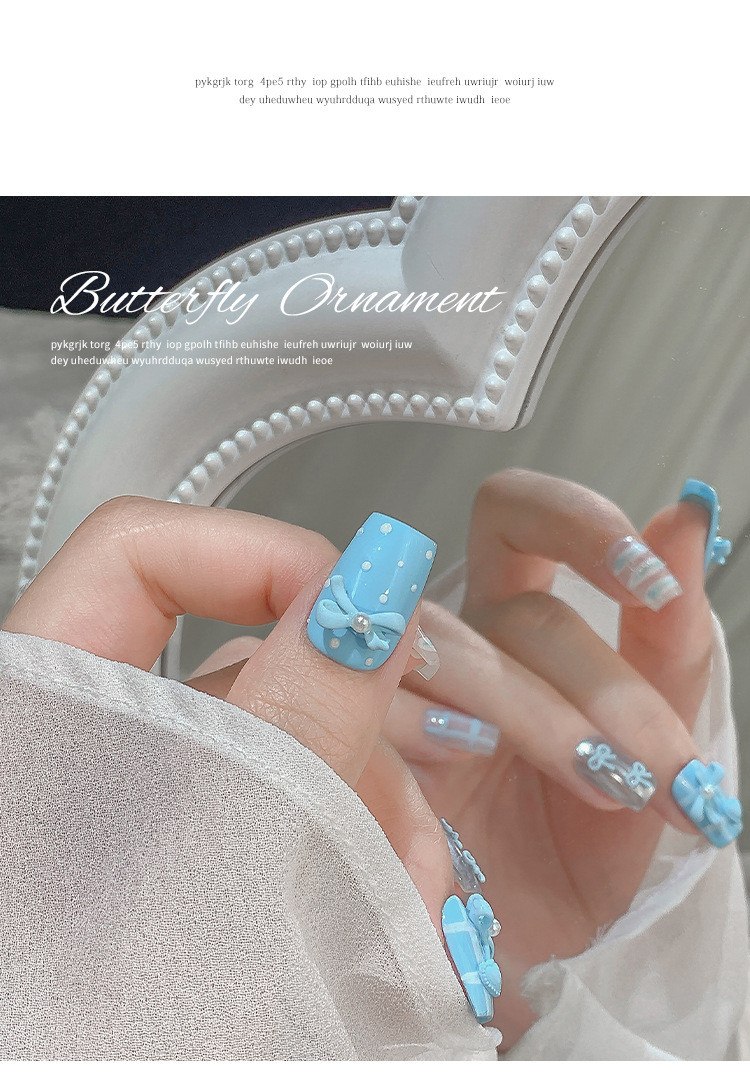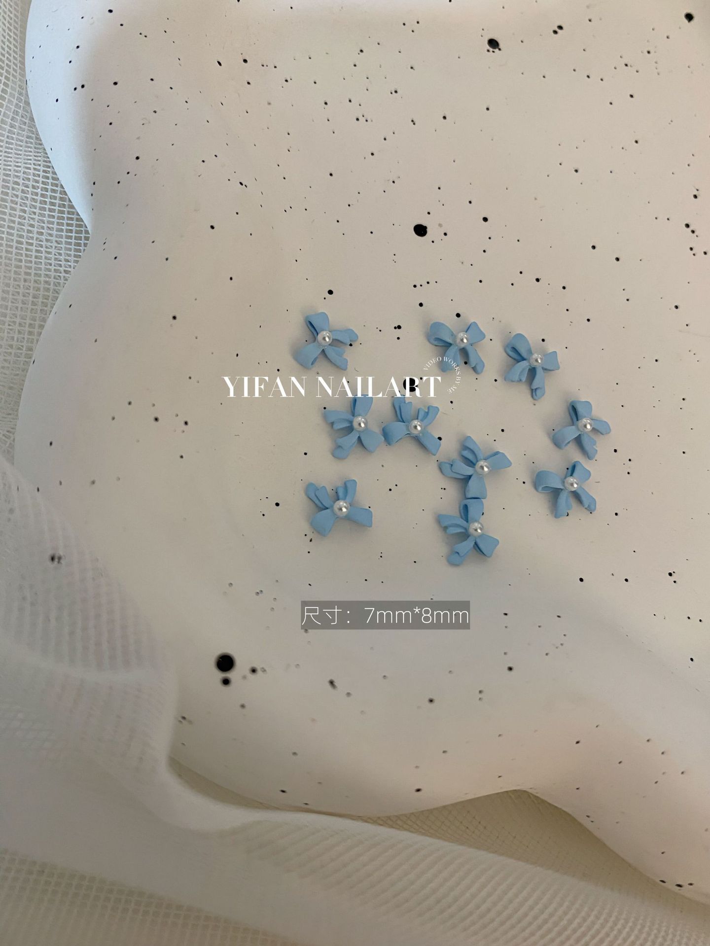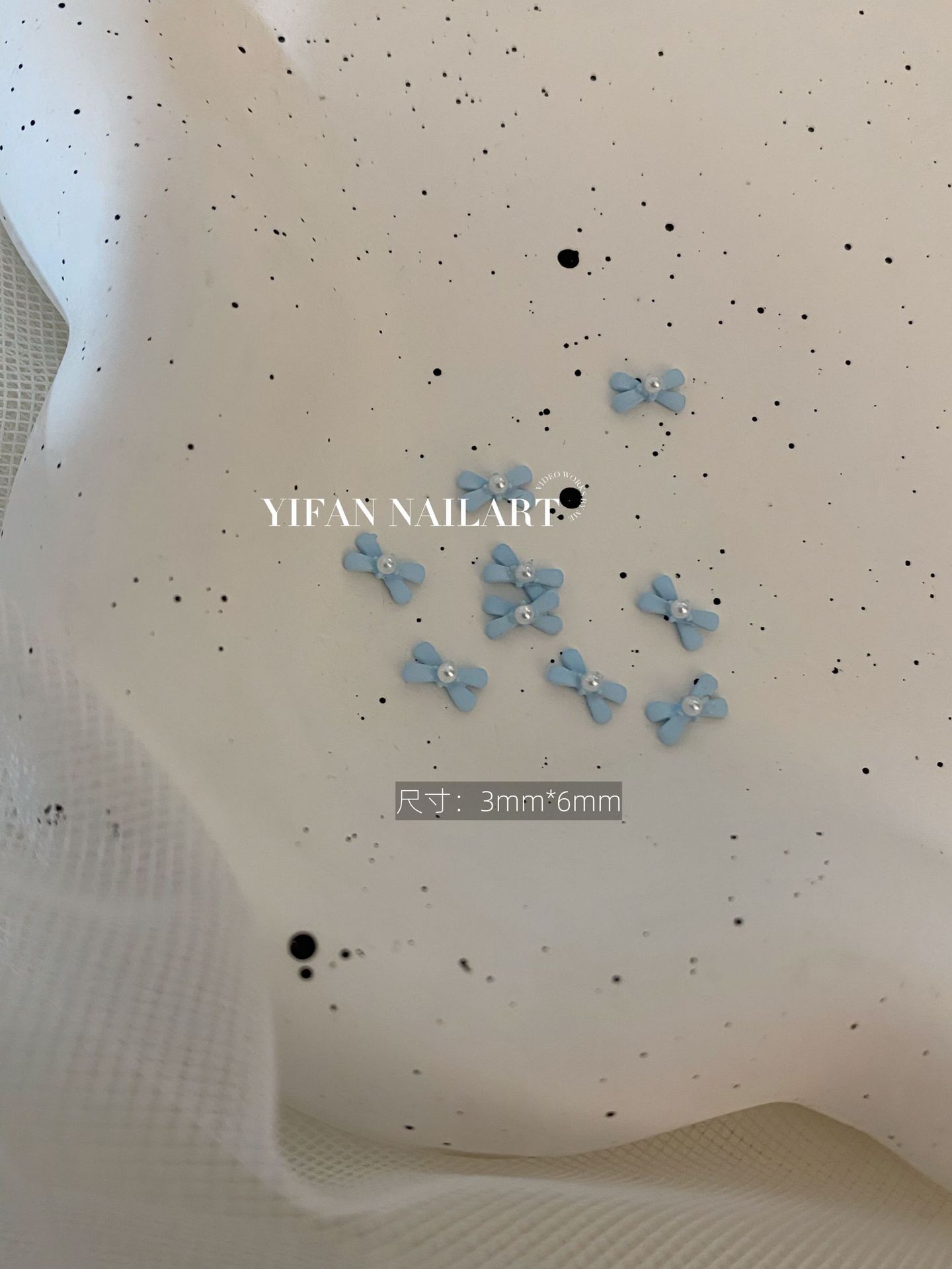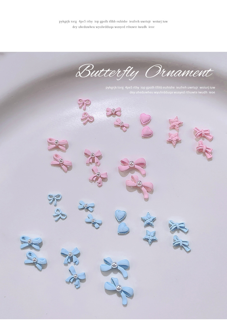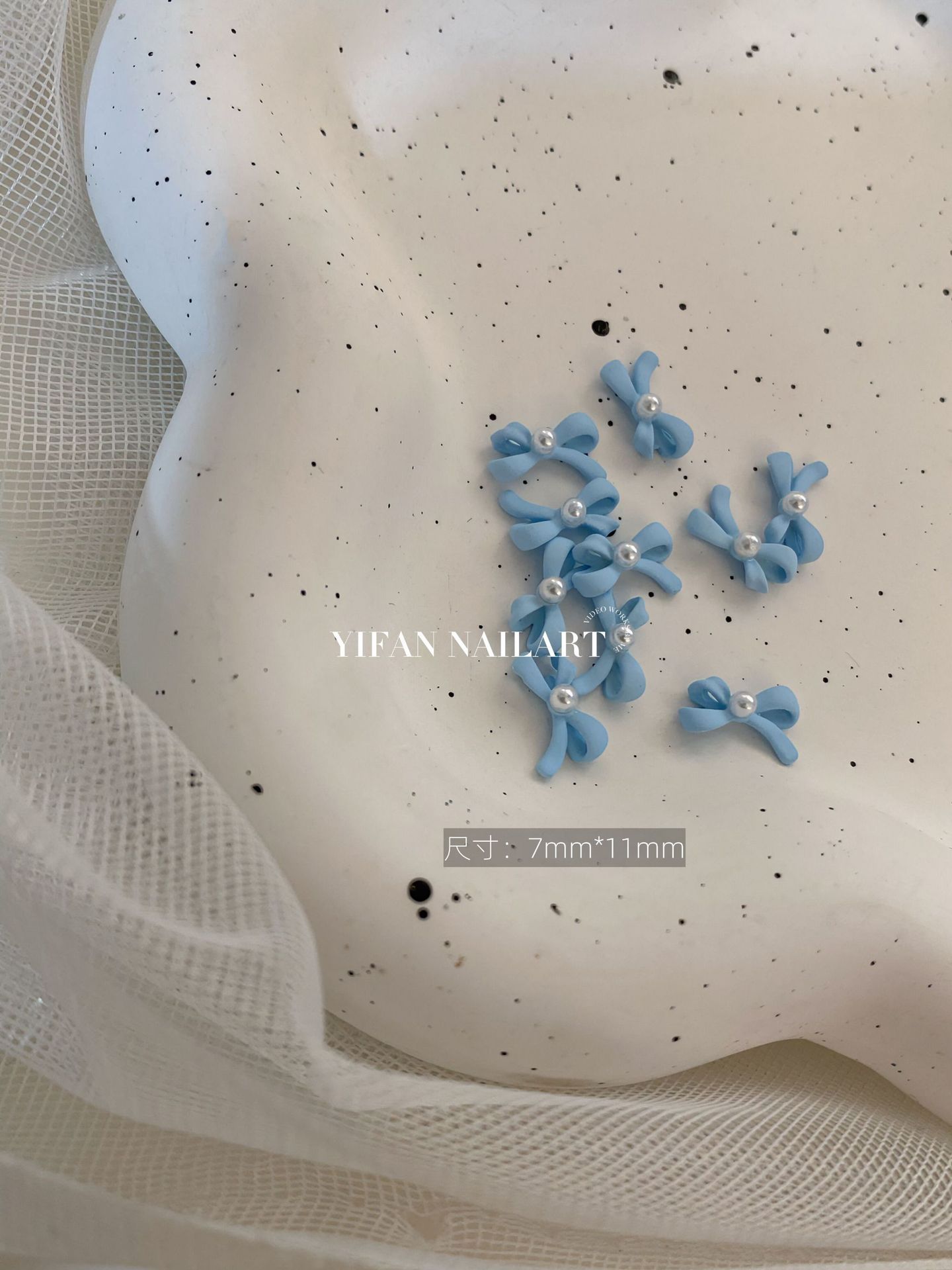 인터넷 축하 신선한 크림 블루 파우더 귀여운 보우 네일 아트 액세서리 금속 프로스트 텍스트 착용 네일 액세서리스토어 가기