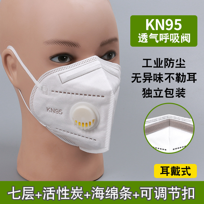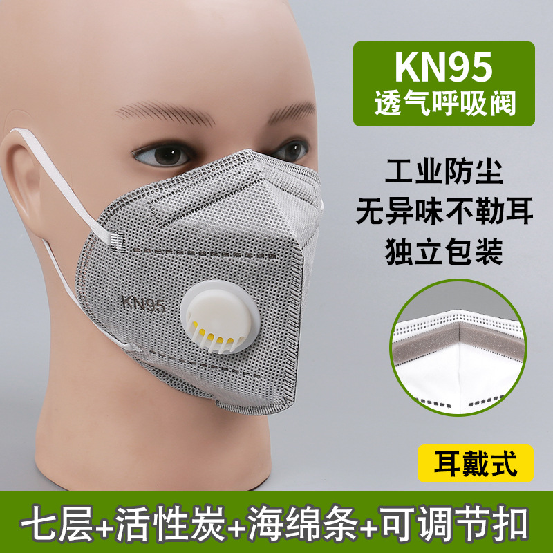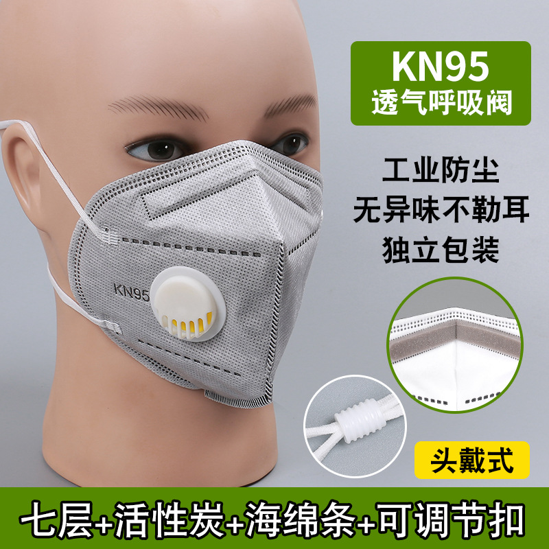 • KN95 7층 회색 [활성탄 + 호흡 밸브 + 스폰지 스트립 + 조절 가능한 버클] 머리 장착형 + 독립 설치