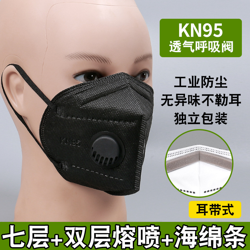 • KN95 7단 블랙 [호흡 밸브 + 스펀지 스트립 포함] 독립형 + 이어 스트랩형