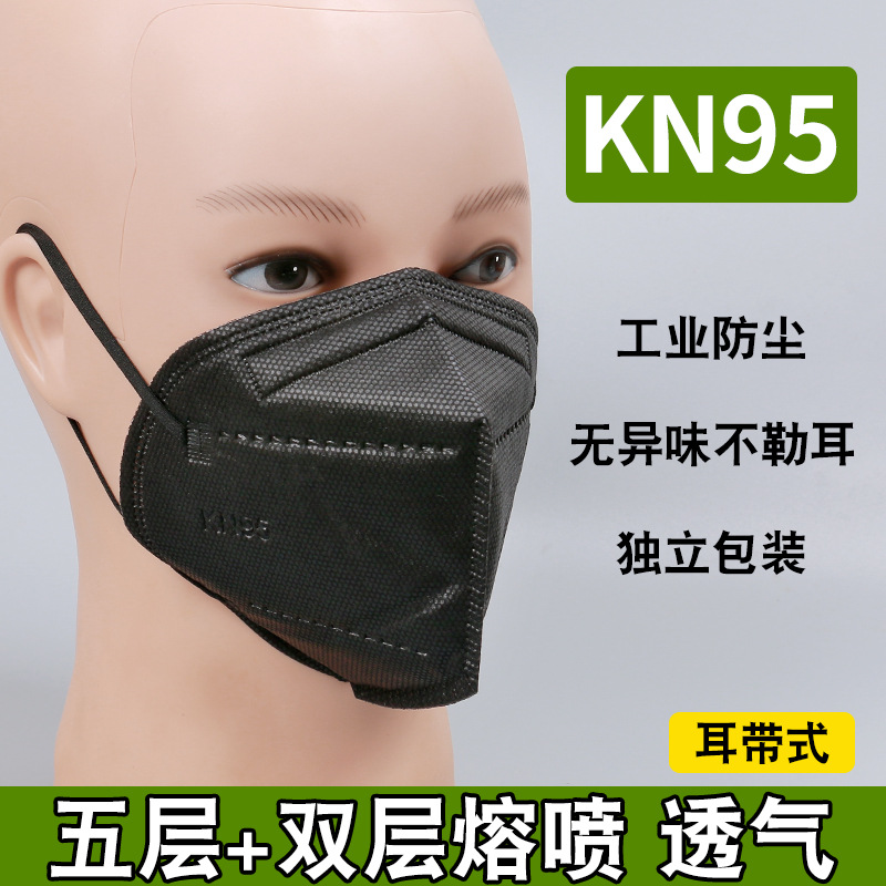 Kn95 먼지 마스크 블랙 보호 일회용 3D 스테레오 산업 마스크 별도의 포장 무료 배송 재고 도매
