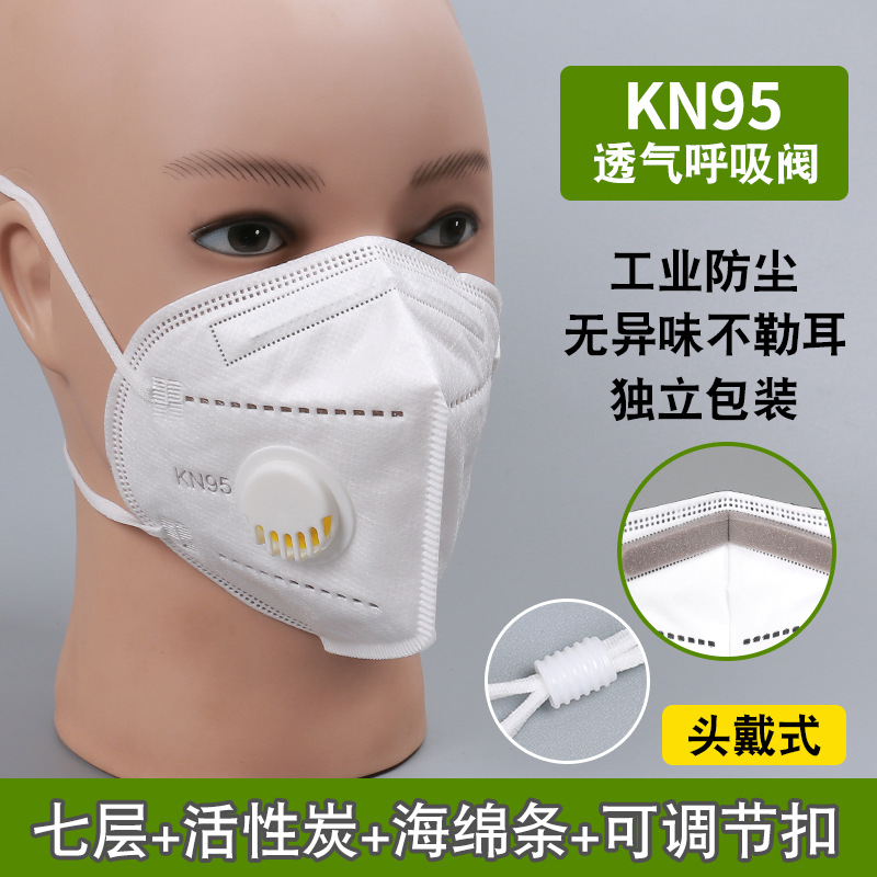 • KN95 7층 흰색 [호흡 밸브 + 스폰지 스트립 + 조절 가능한 버클 포함] 머리 장착형 + 독립 설치
