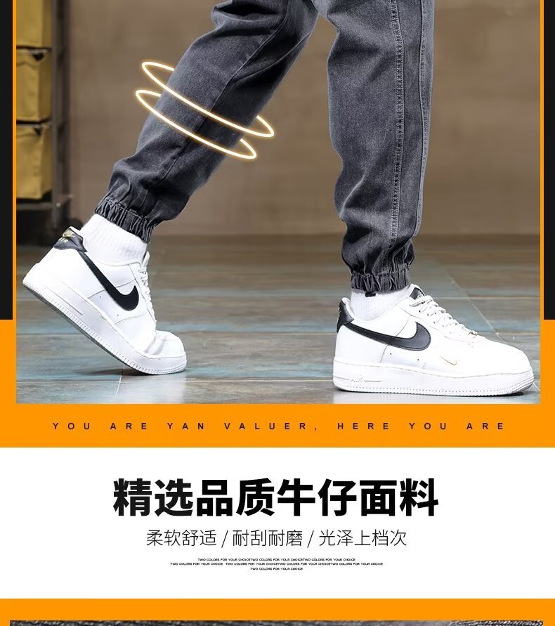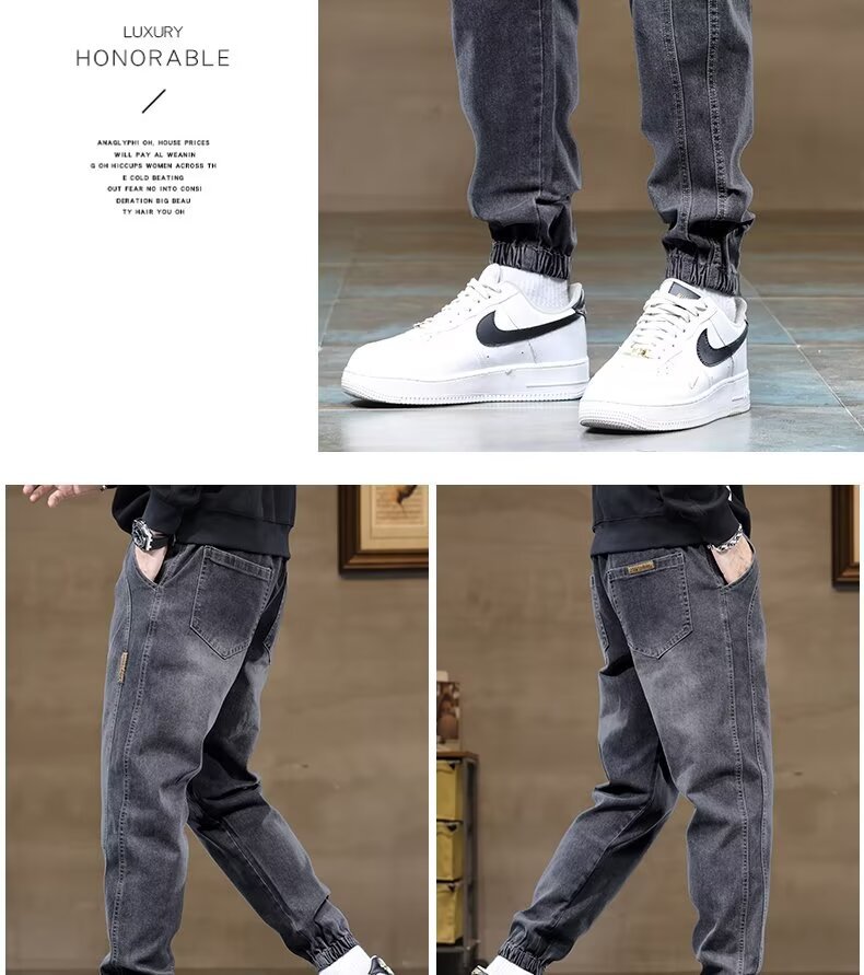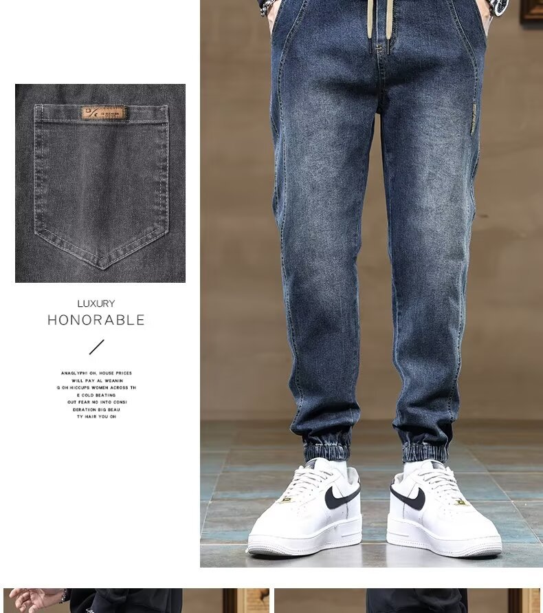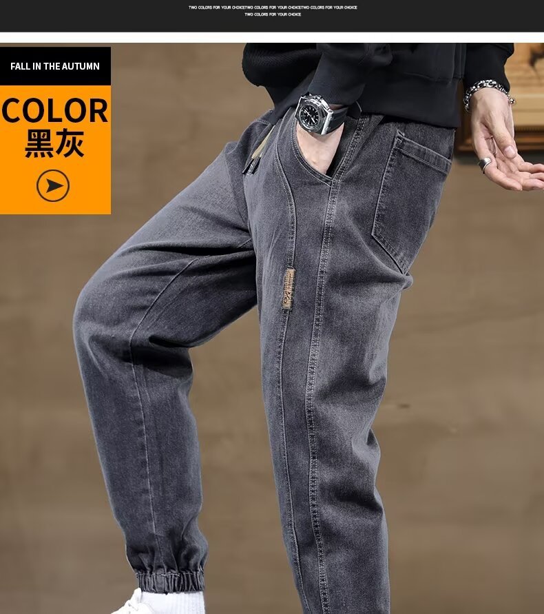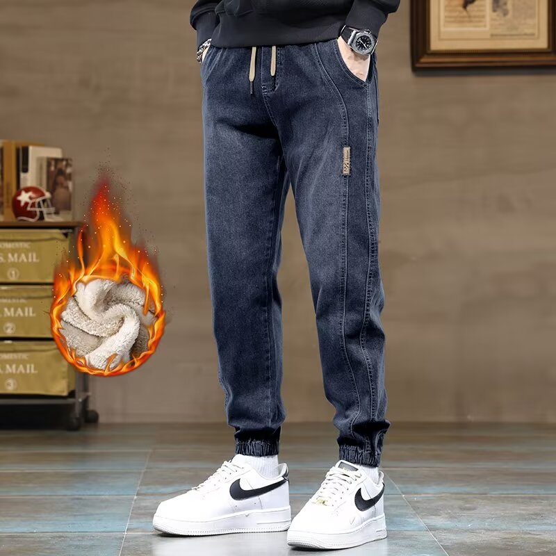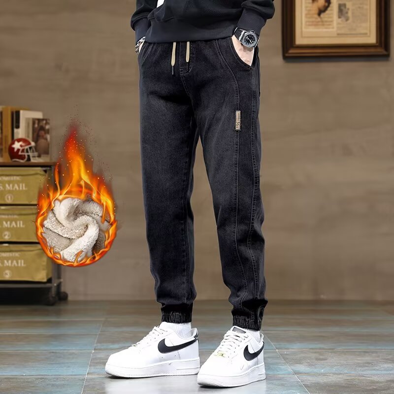 트렌디 한 룬 천 기모 남성용 청바지 가을 겨울 새로운 트렌디 브랜드 올 매치 팬츠 유행 바느질 허리 할란