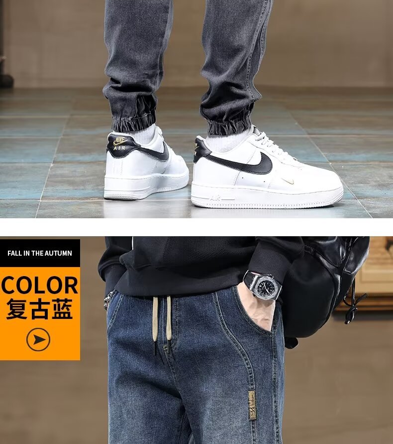 트렌디 한 룬 천 기모 남성용 청바지 가을 겨울 새로운 트렌디 브랜드 올 매치 팬츠 유행 바느질 허리 할란스토어 가기