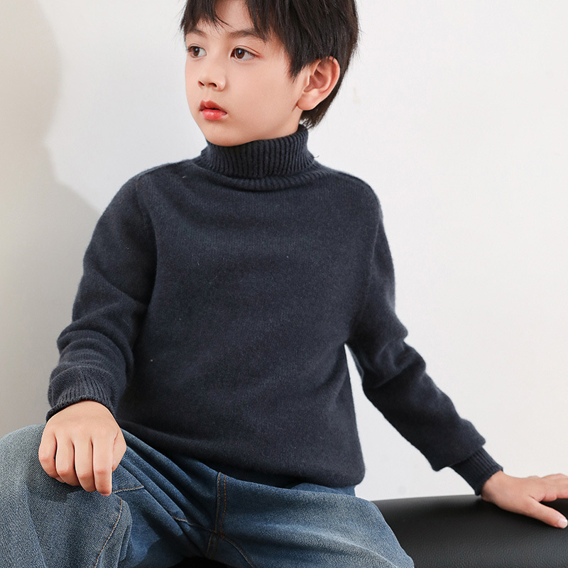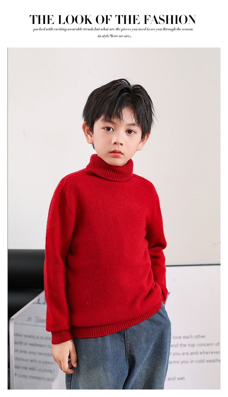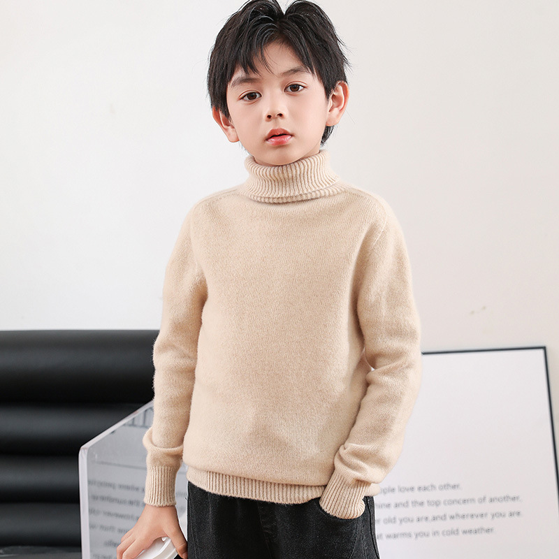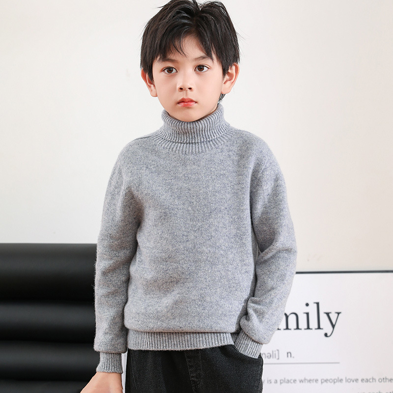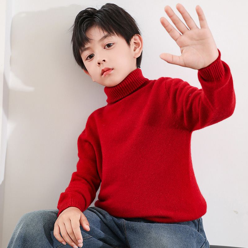 어린이 모직 스웨터 가을과 겨울 두꺼운 높은 옷깃 단색 간단한 따뜻한 풀오버 니트 스웨터 새베이스 셔츠