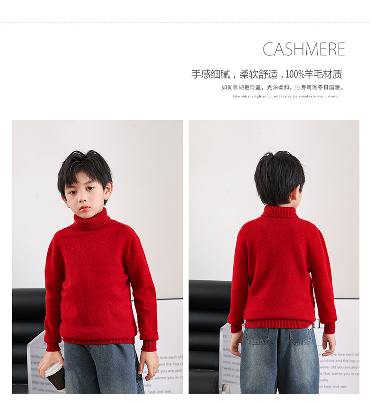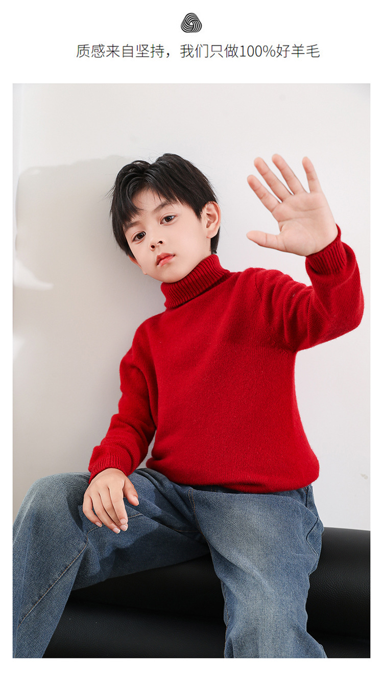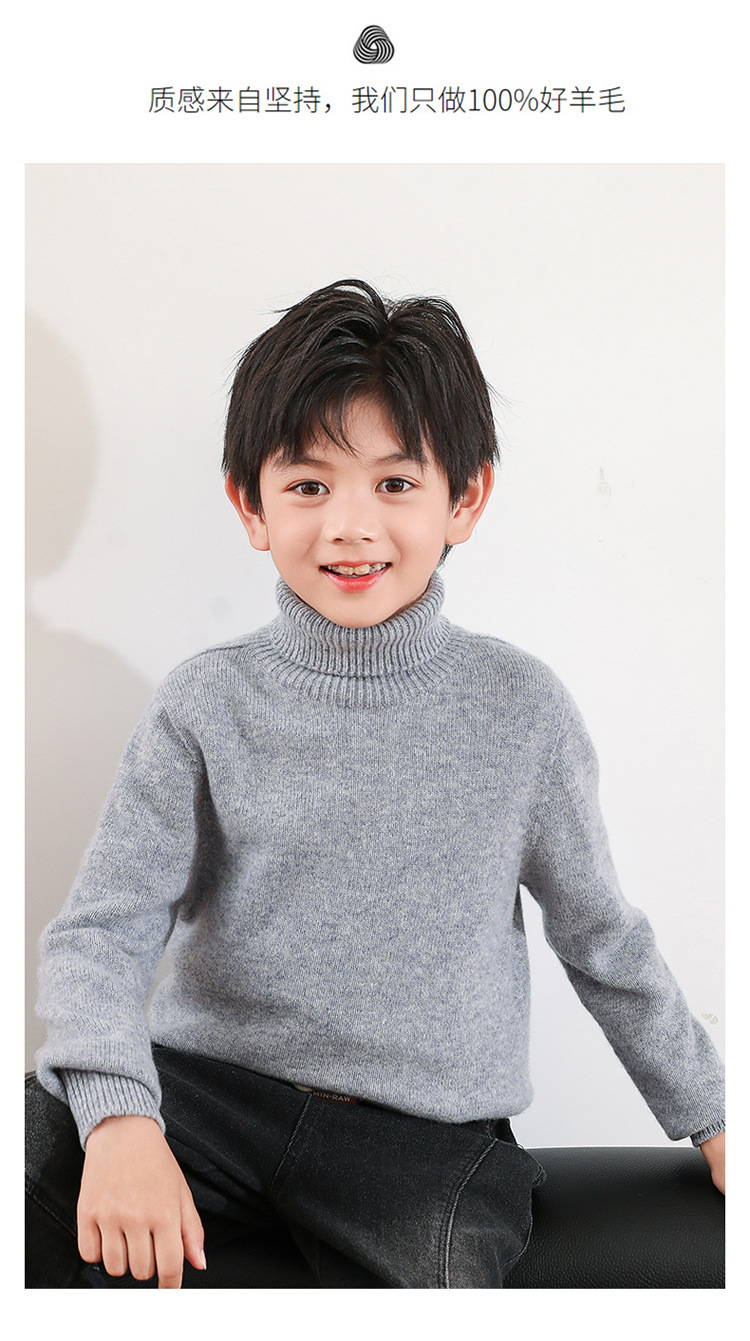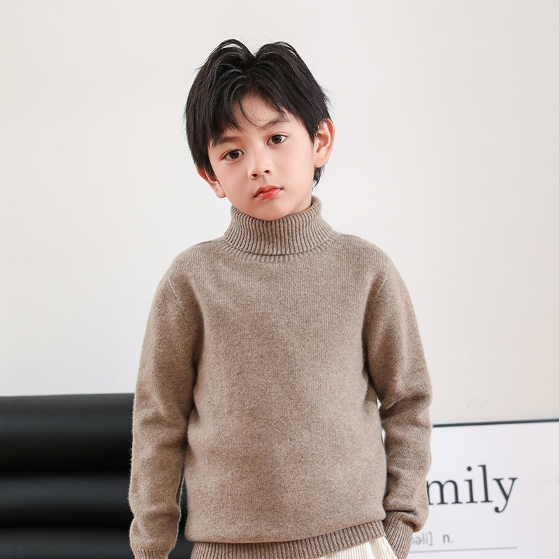 어린이 모직 스웨터 가을과 겨울 두꺼운 높은 옷깃 단색 간단한 따뜻한 풀오버 니트 스웨터 새베이스 셔츠