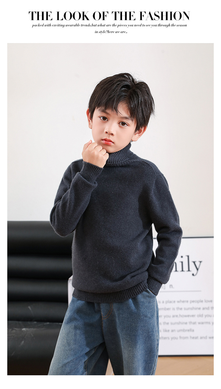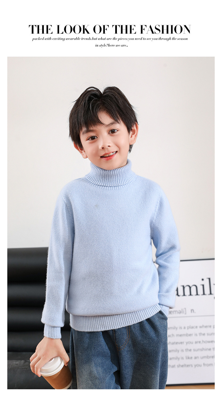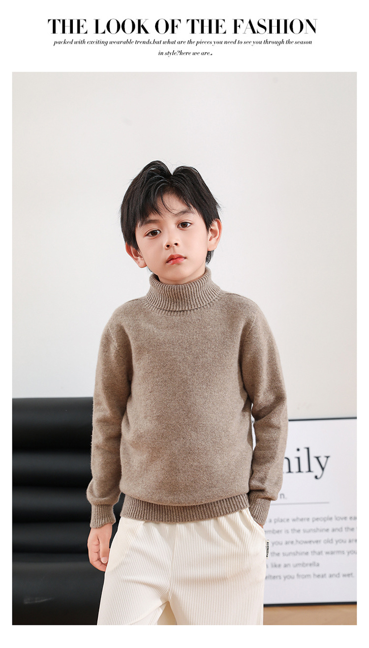 어린이 모직 스웨터 가을과 겨울 두꺼운 높은 옷깃 단색 간단한 따뜻한 풀오버 니트 스웨터 새베이스 셔츠스토어 가기