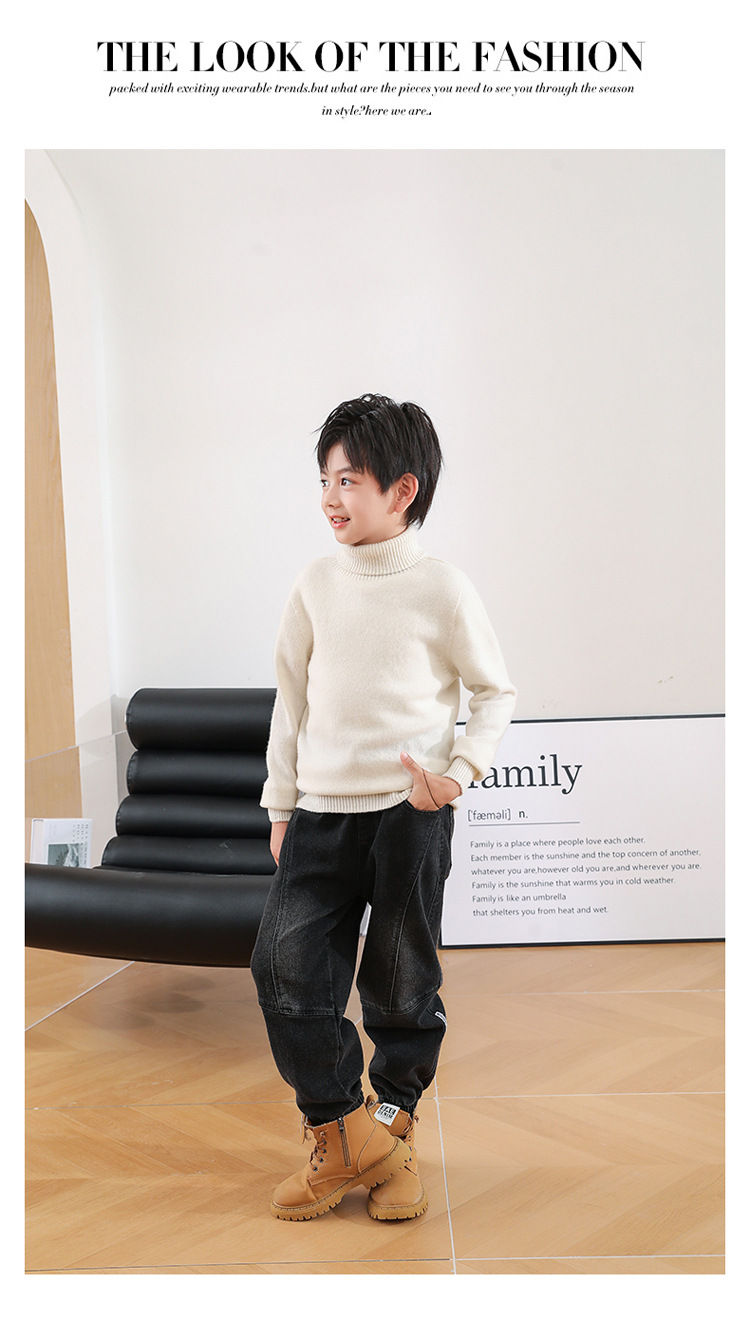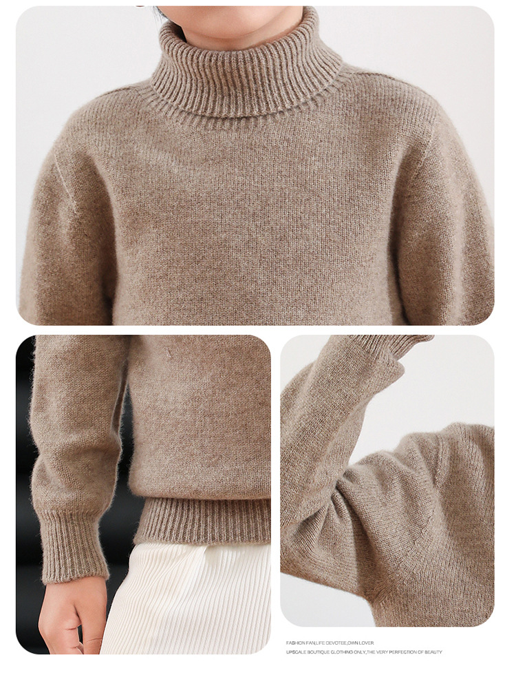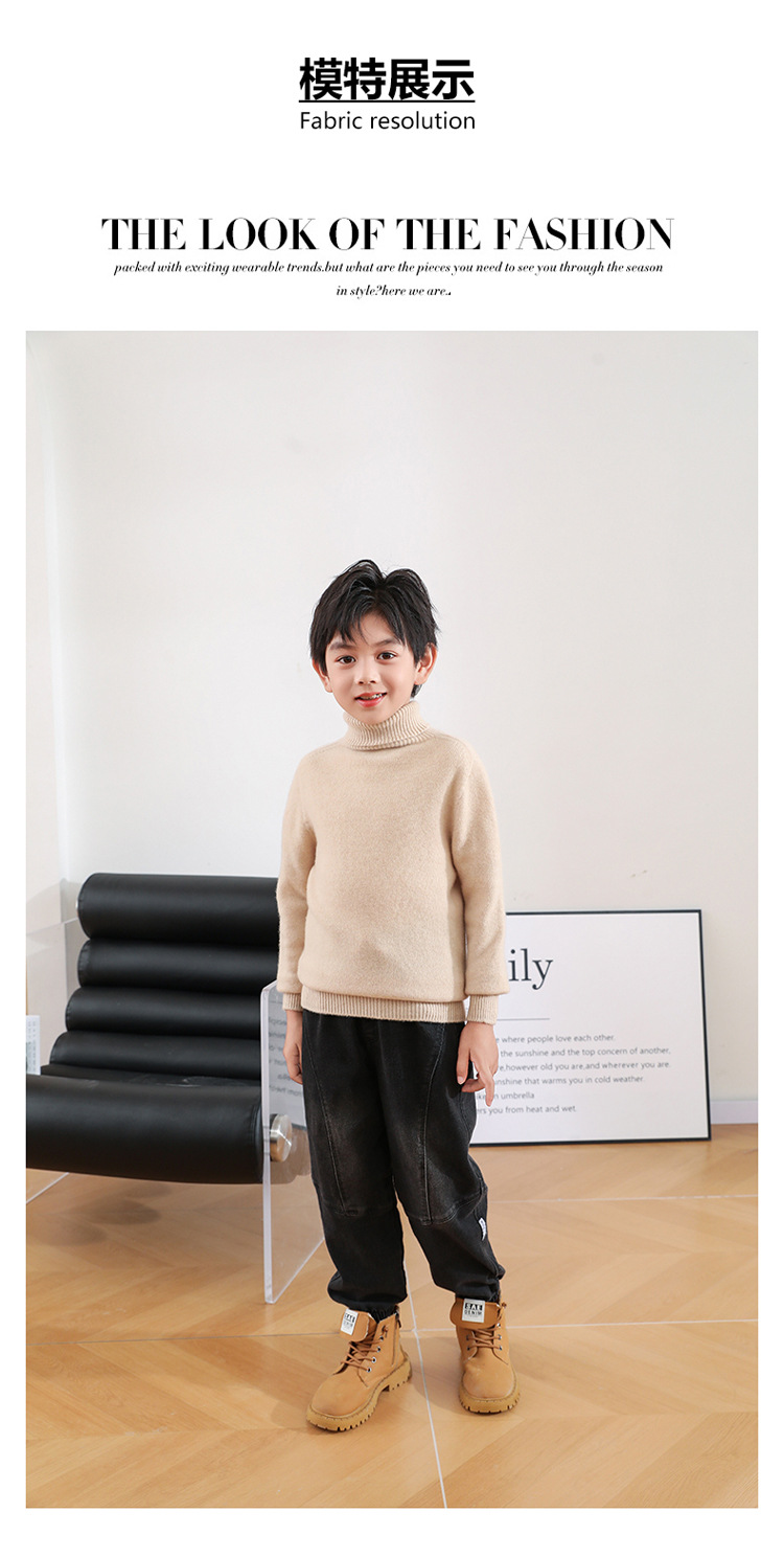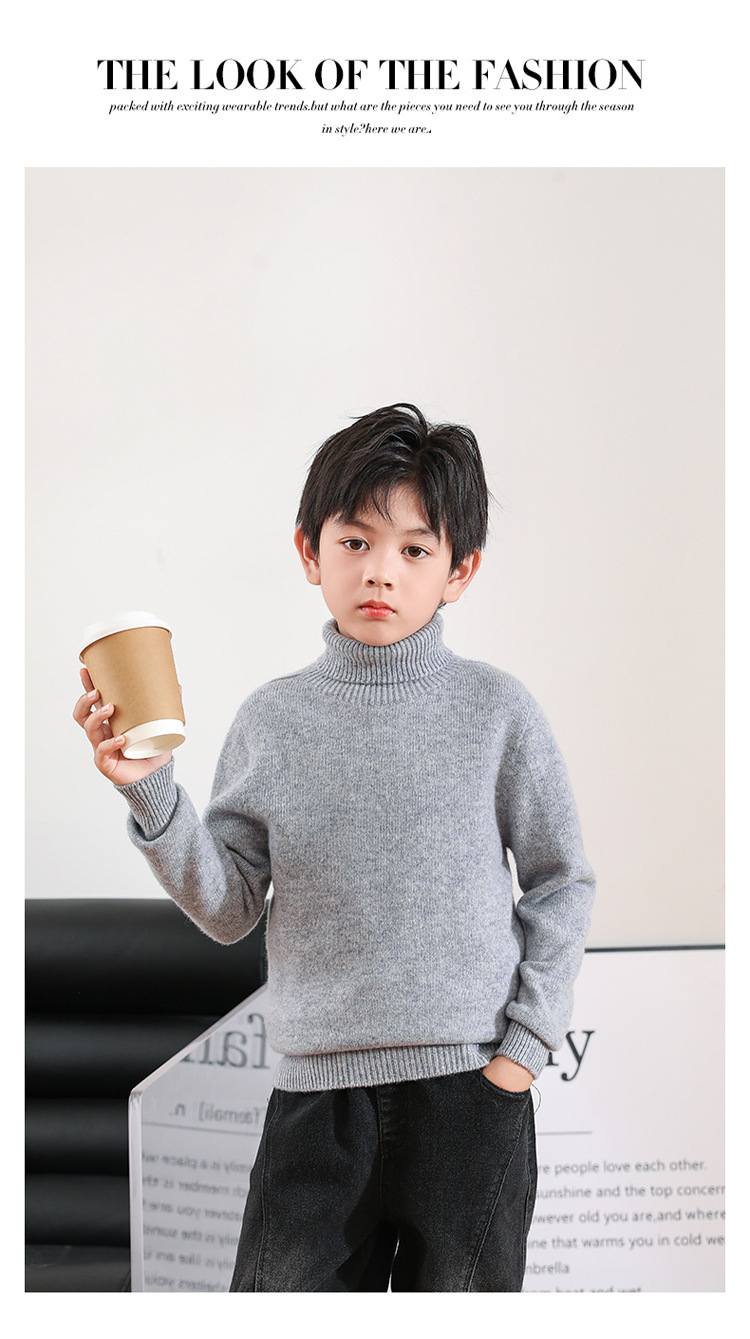 어린이 모직 스웨터 가을과 겨울 두꺼운 높은 옷깃 단색 간단한 따뜻한 풀오버 니트 스웨터 새베이스 셔츠스토어 가기